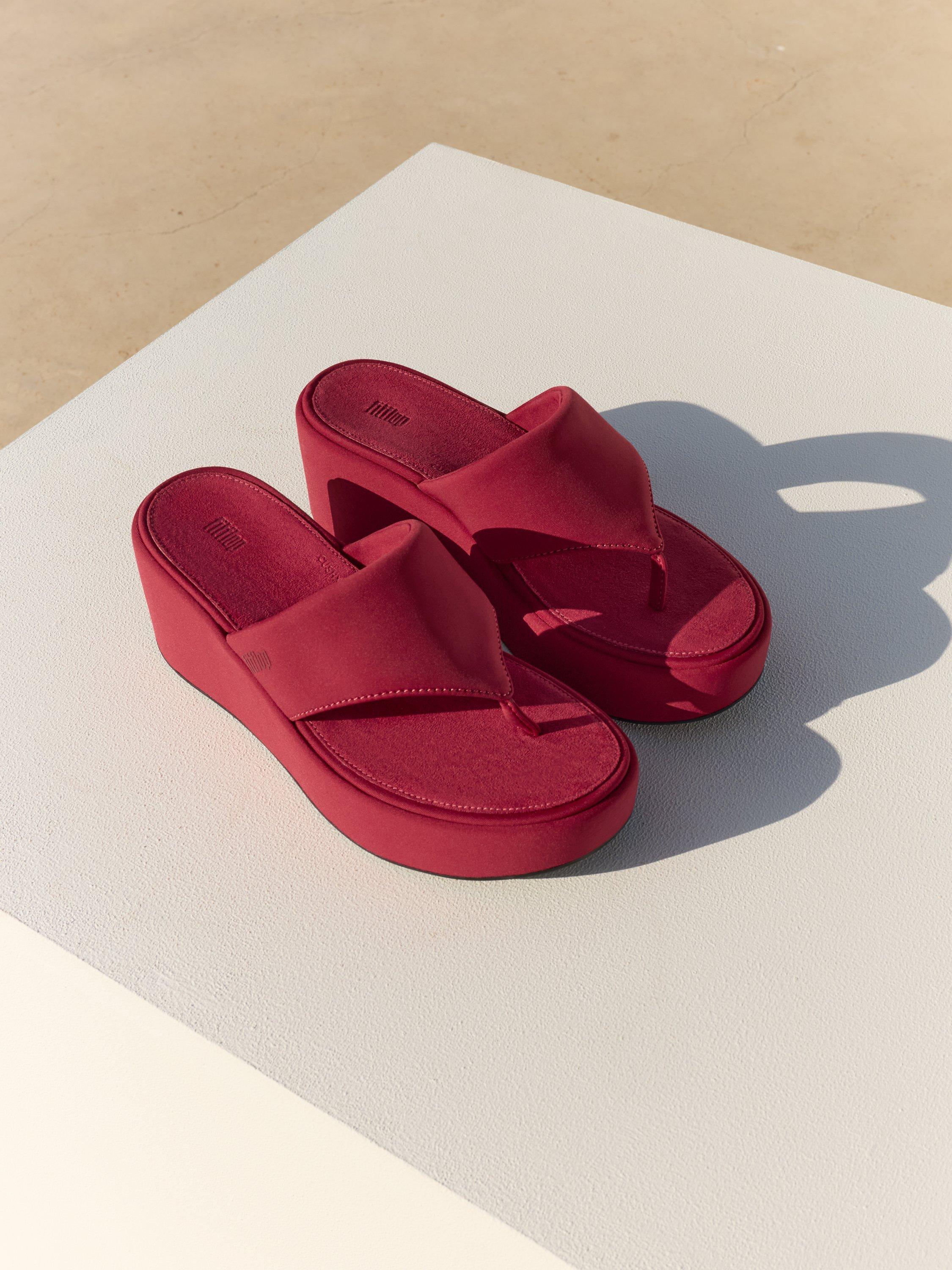 The wedge: reimagined. FitFlop has redefined the classic wedge silhouette with its PlatFForms sandals. Crafted with a single, sleek strap that’s secured with a classic toe-post front, this clean, sculpted pair is made from buttery-soft suede.