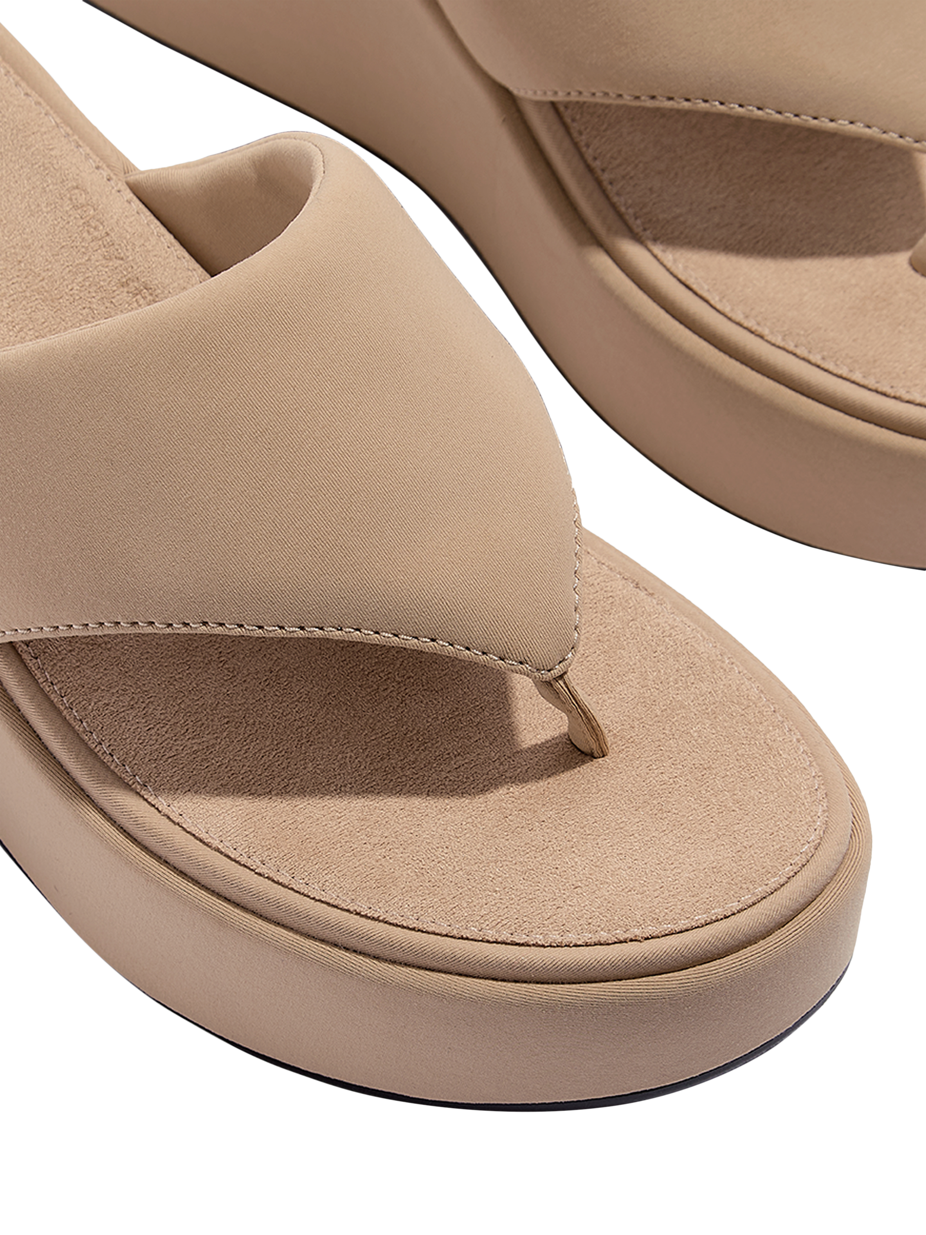 This trend-forward toe-post sandal is irresistible – think clean lines, a classic high-wedge sole and a fun 90s vibe. Lightly padded. Wear-with-anything. Crafted in soft neoprene-style fabric, including wrapped around the sole. A 3D-print logo adds subtle branding. On our CushX™ midsole, biomechanist-designed for a sneaker feel in heeled styles (you can walk all day in these).