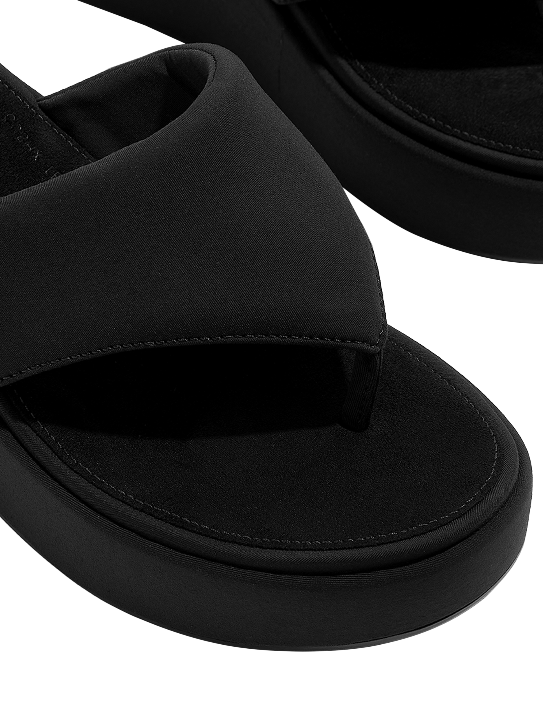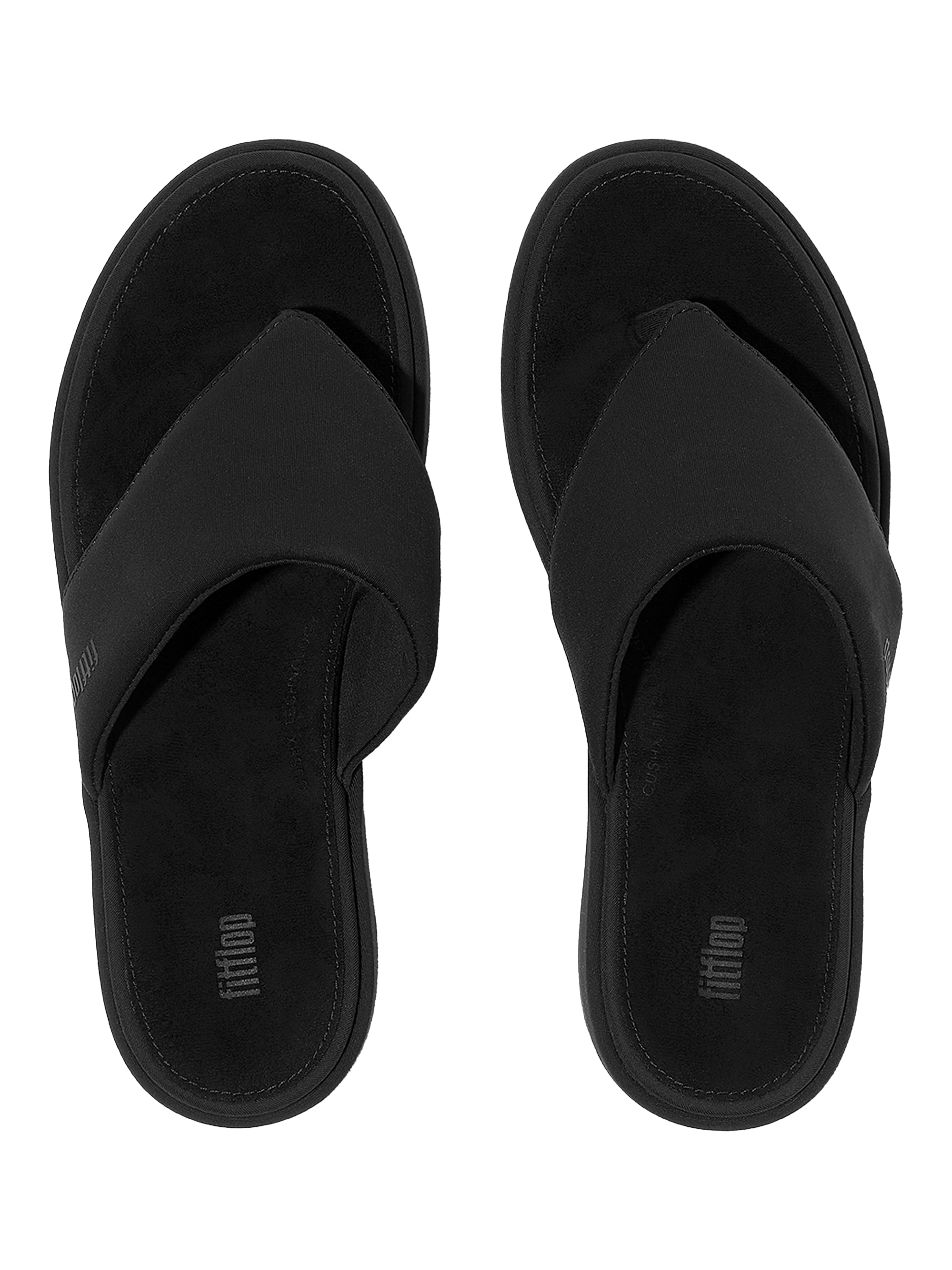 A favourite in warmer months, this pair of sandals from FitFlop is rendered in a long-lasting fabric for longevity of wear. Set on a platform wedge heel, they are round-toed in design with a toe post.