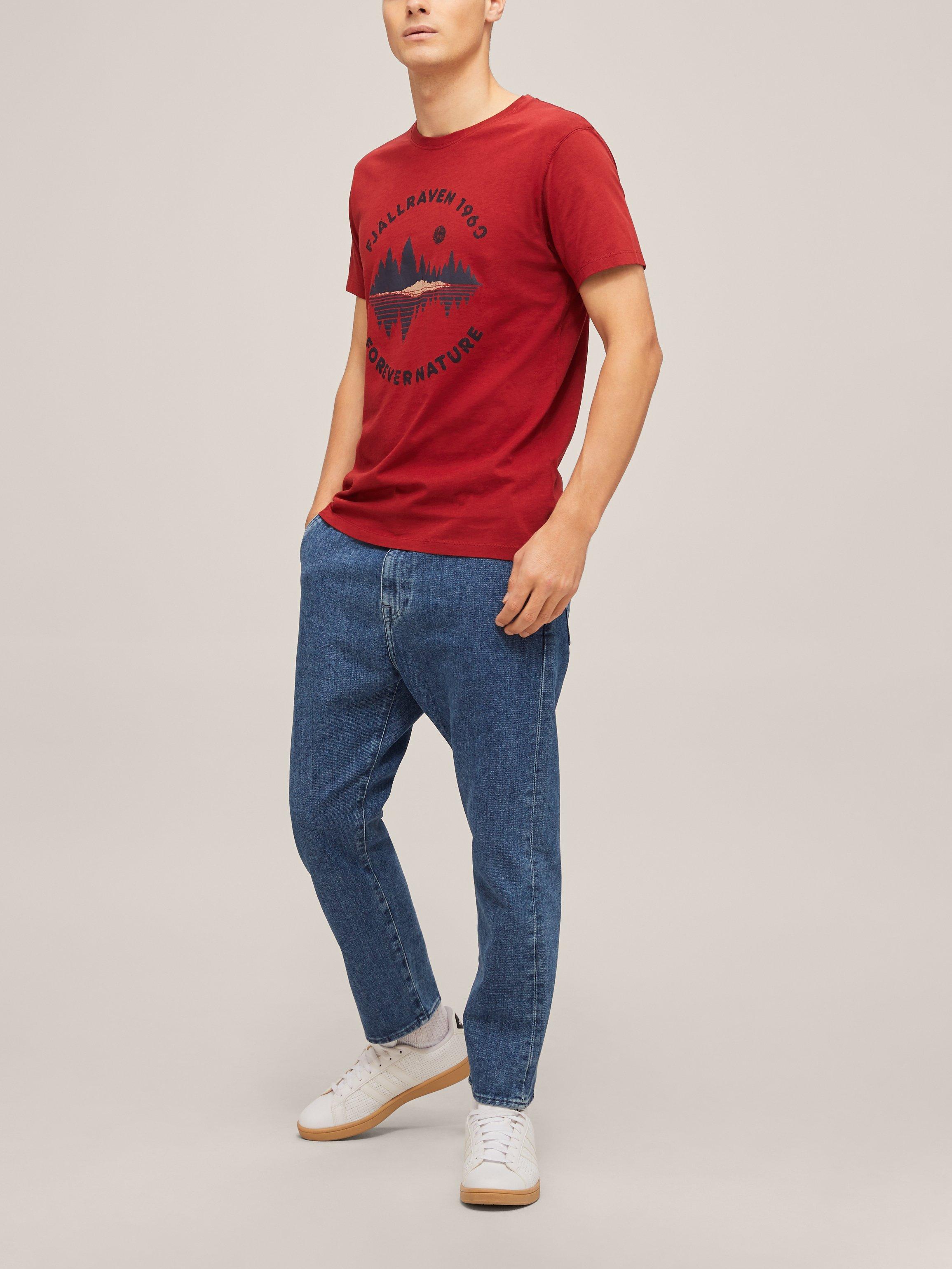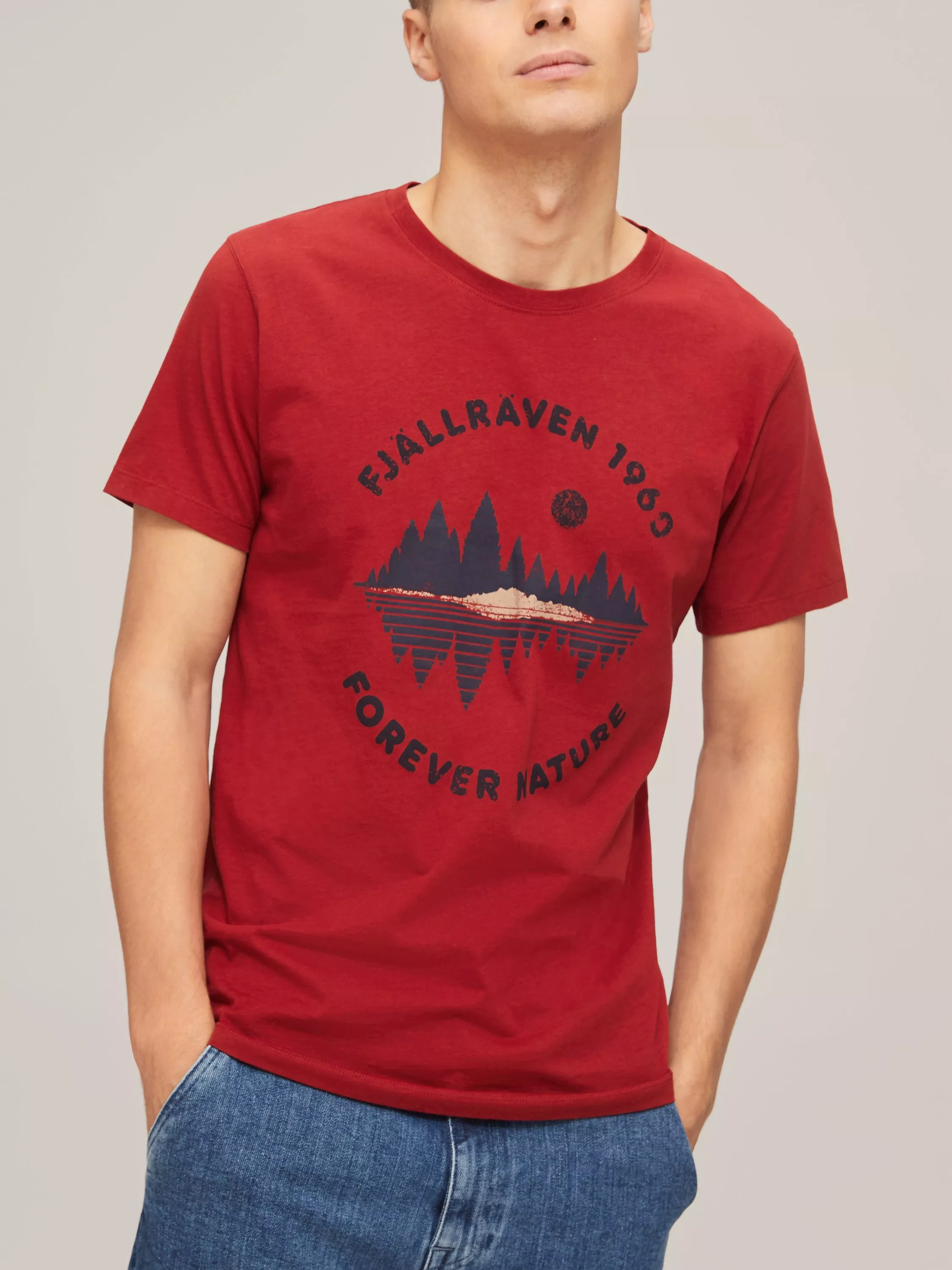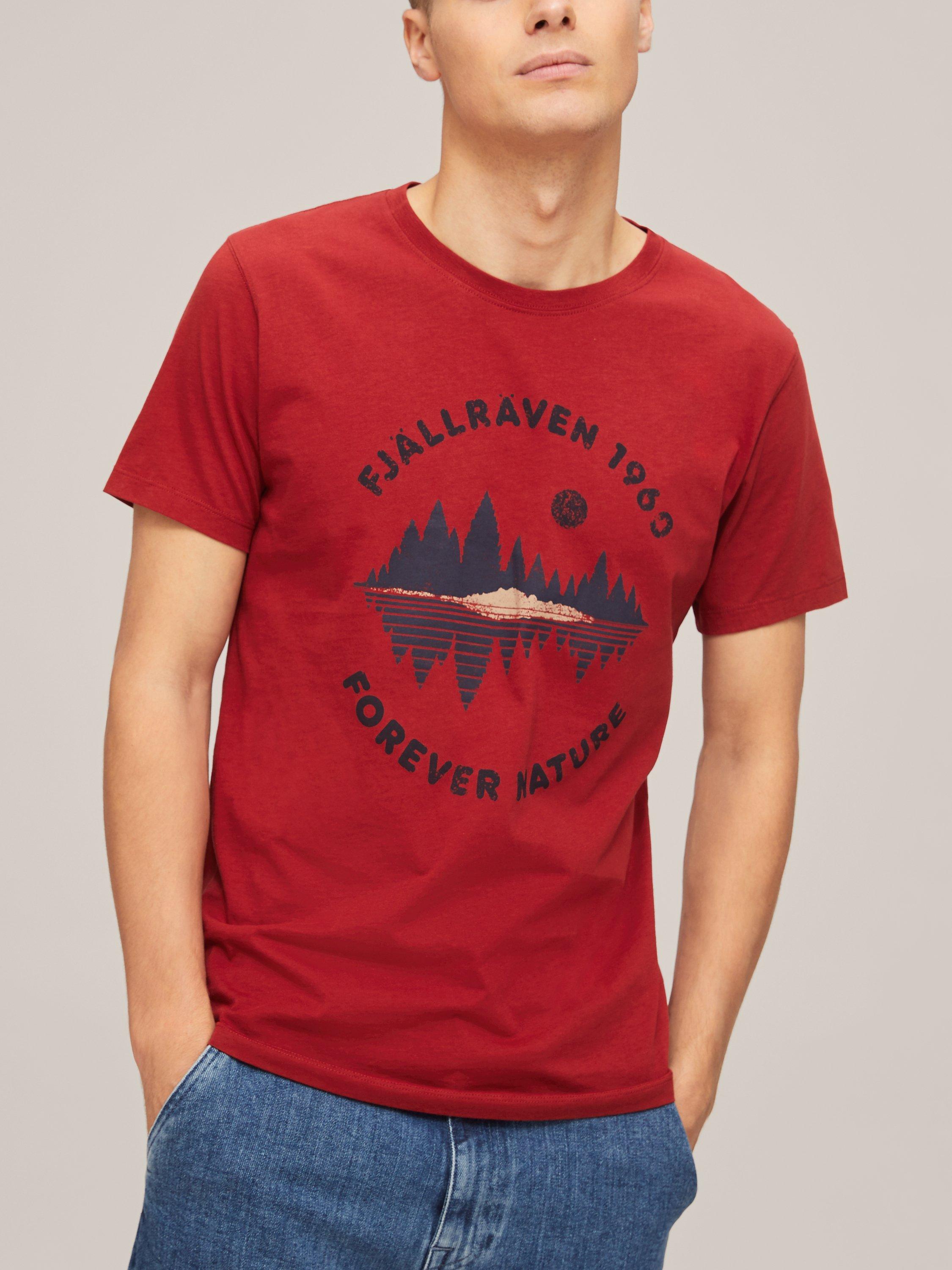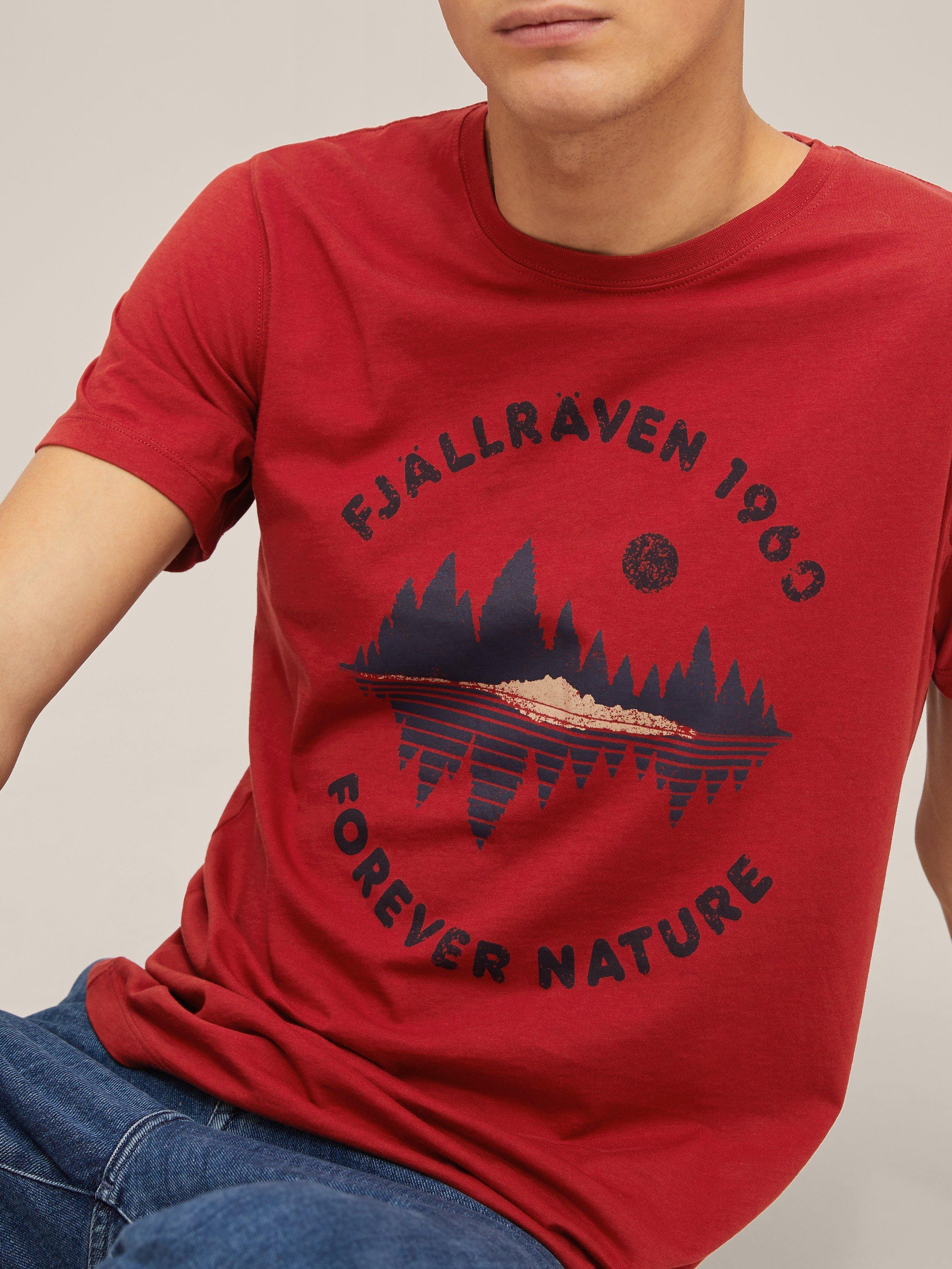 Comfortable t-shirt in organic cotton jersey. Round neckline. Landscape print on the front.