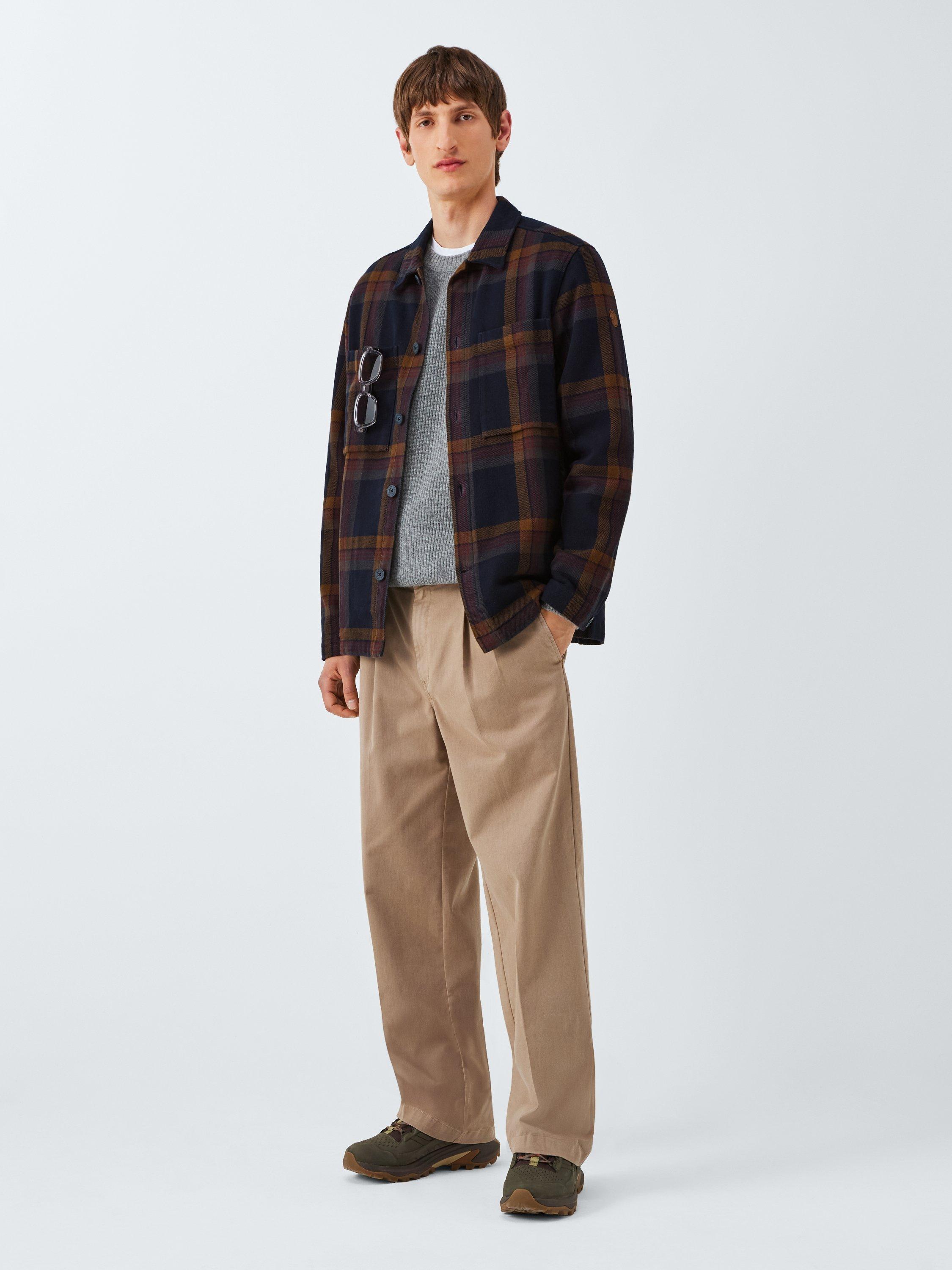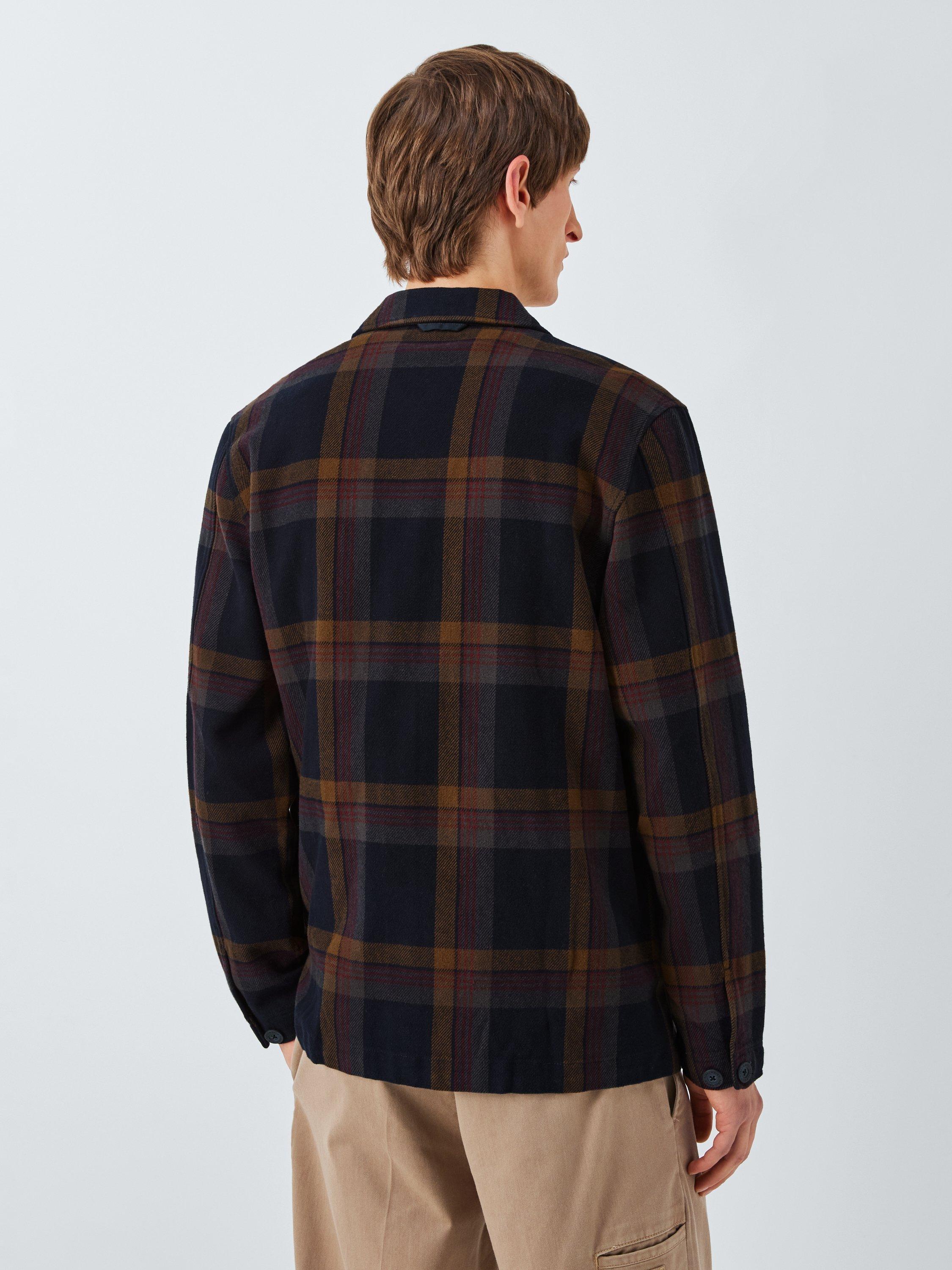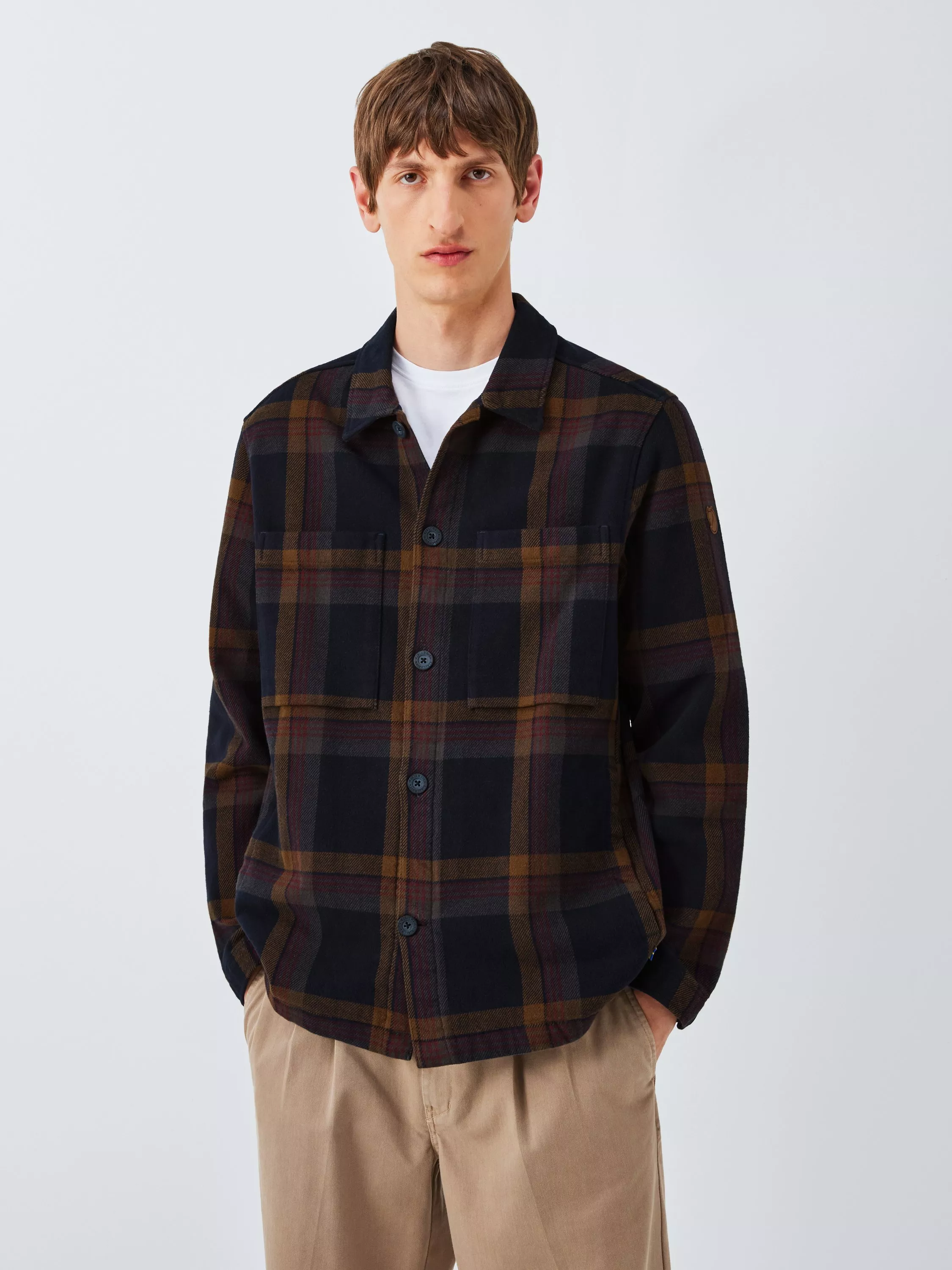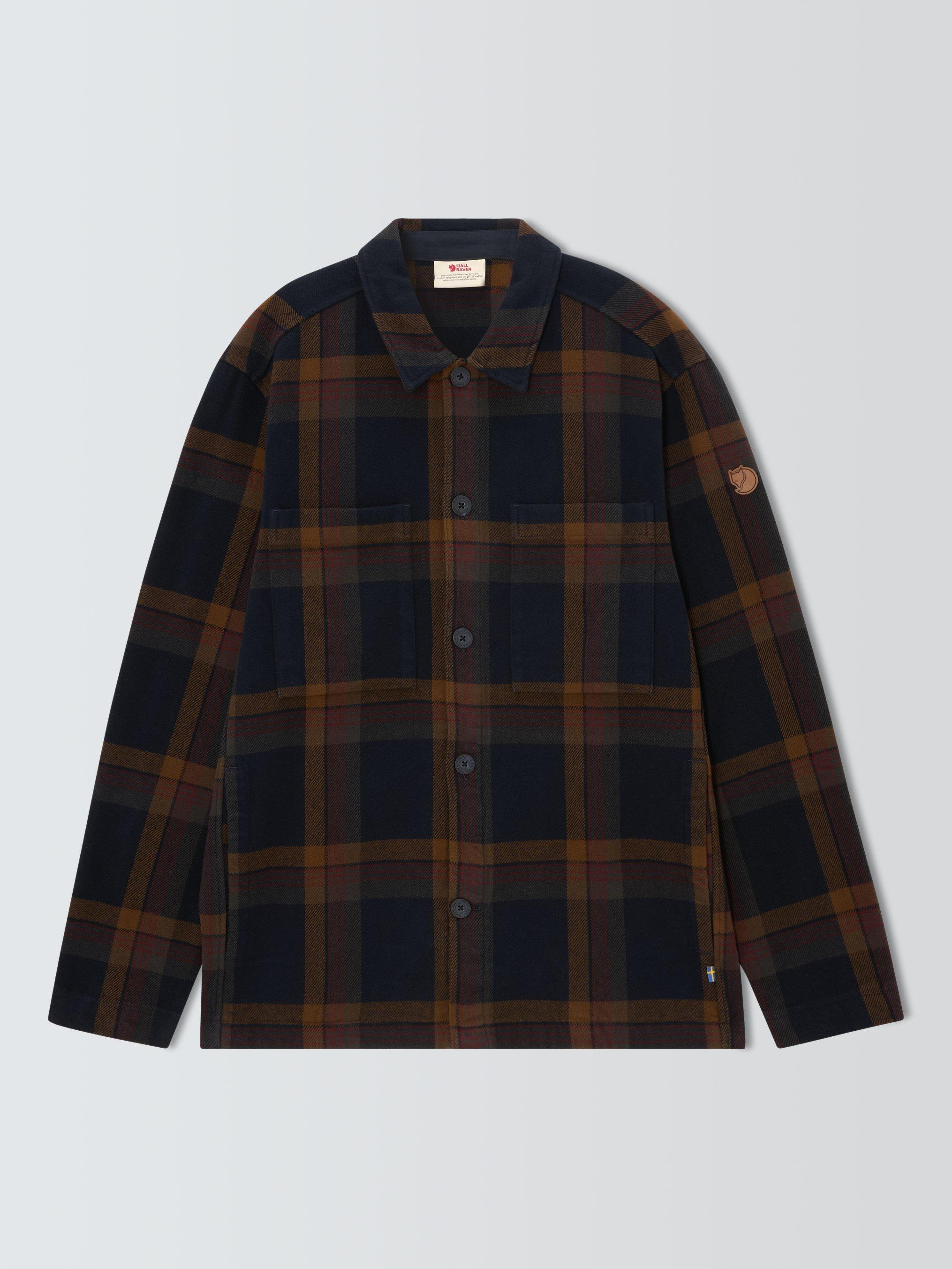 A relaxed long-sleeved checked shirt that can also be worn as a light jacket. Made from a heavy organic cotton twill. Two large practical patch chest pockets with bellows. Open hand pockets in the side seams. Front opening with recycled polyester buttons. Cuffs with button adjustments.