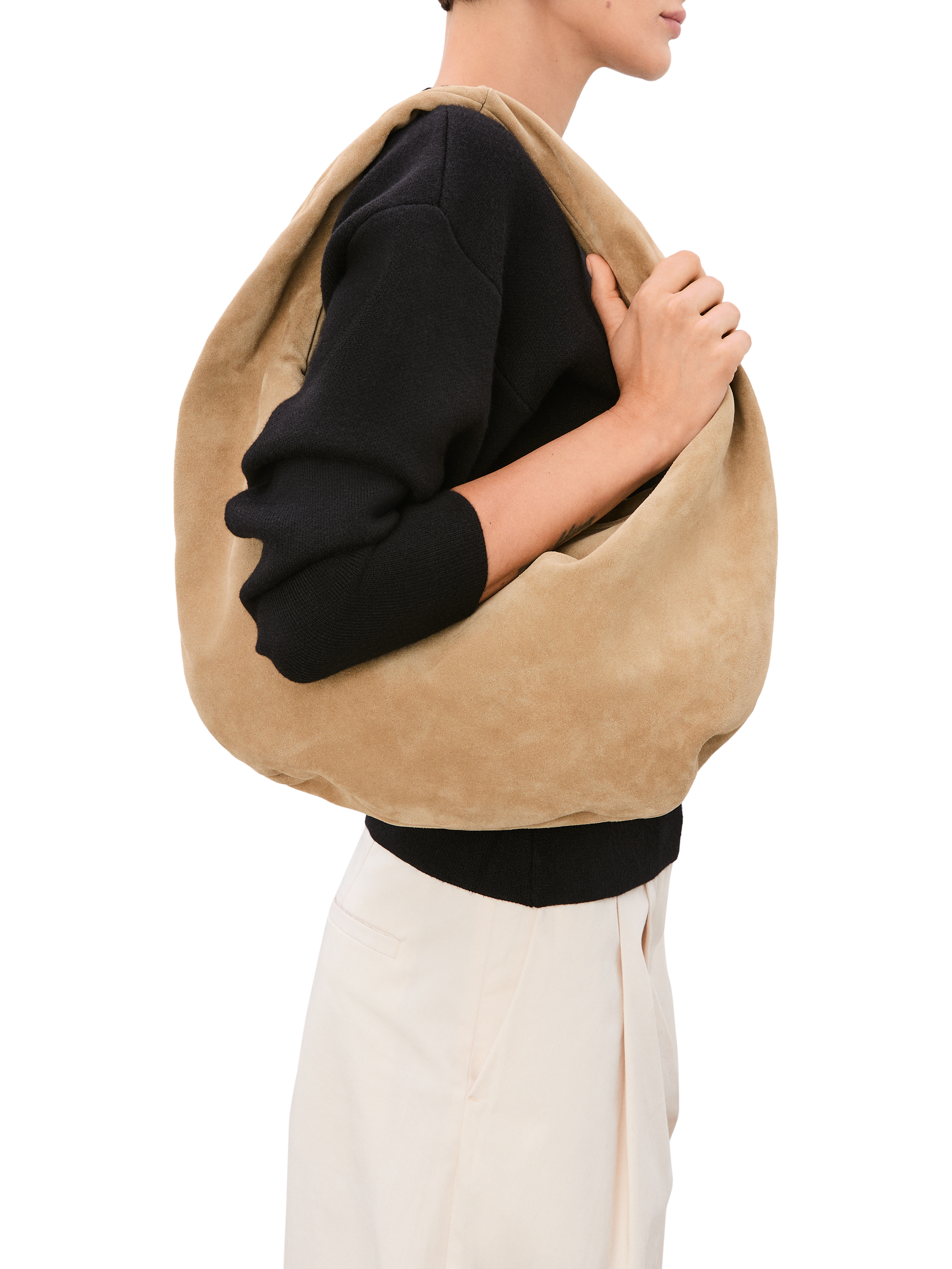 Designed in calf leather, this slouchy, zip-top silhouette is finished with an integrated strap to wear over the shoulder. Complete with zip fastening and a useful interior pocket.