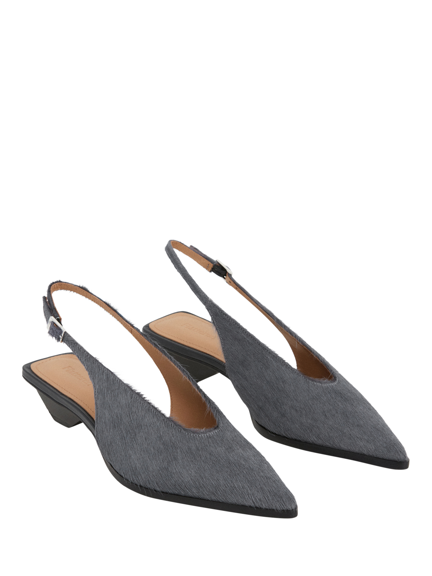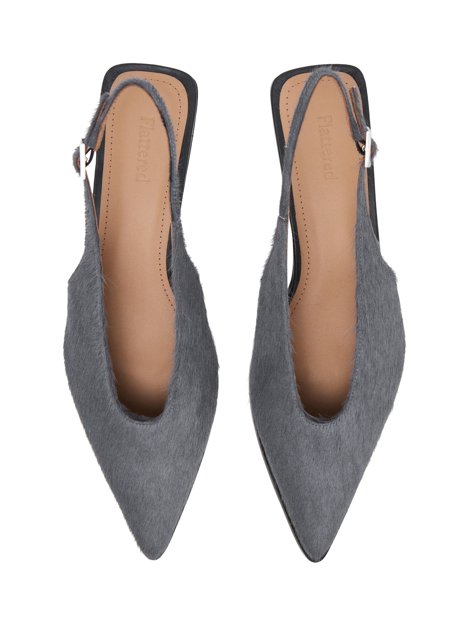 The Avalon slingback pumps from Flattered are made from a soft leather upper, and designed with a sleek pointy toe and a uniquely-shaped 25mm heel.
