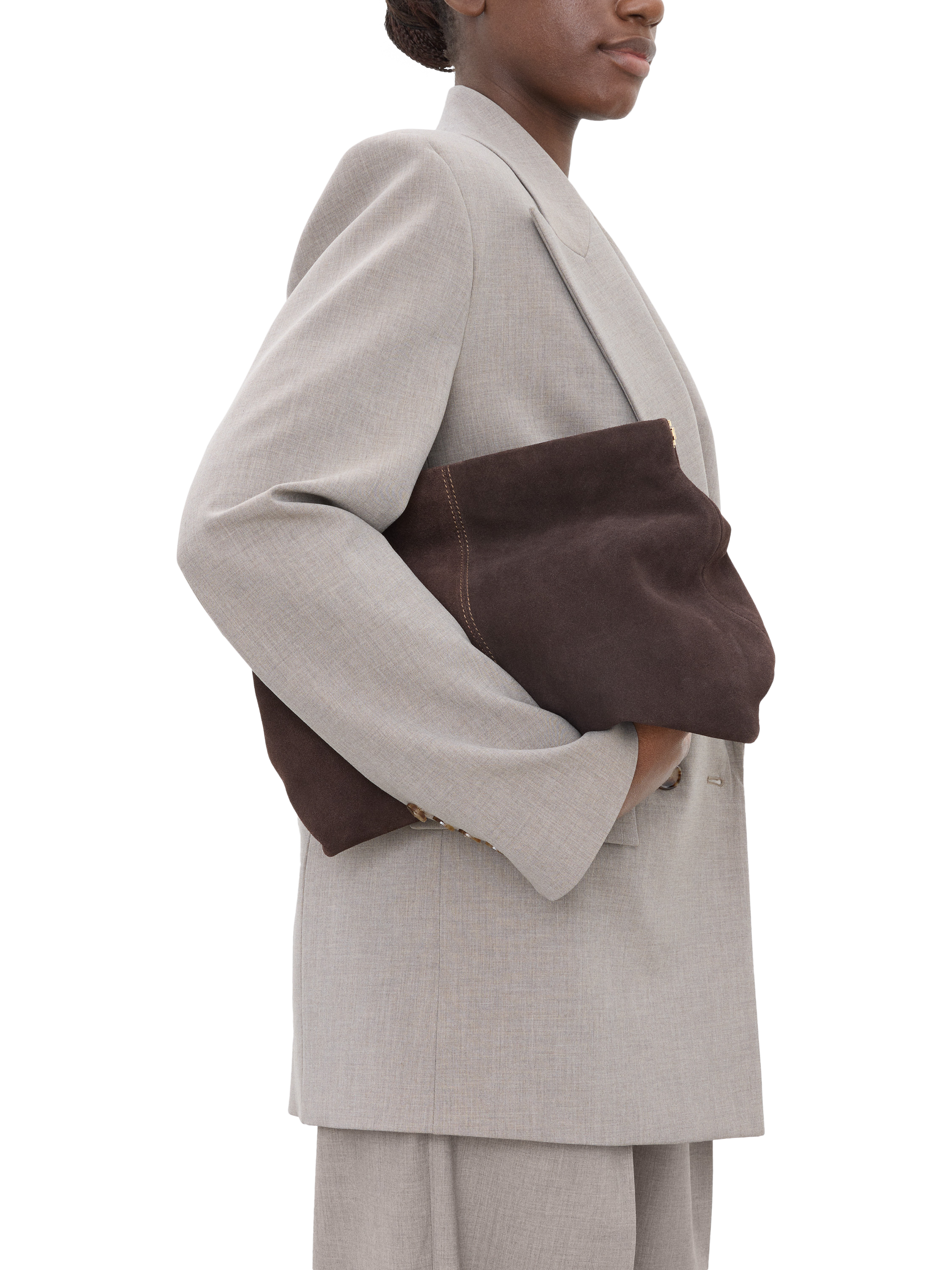 FlatteredClay Oversized Suede Clutch Bag, Chocolate