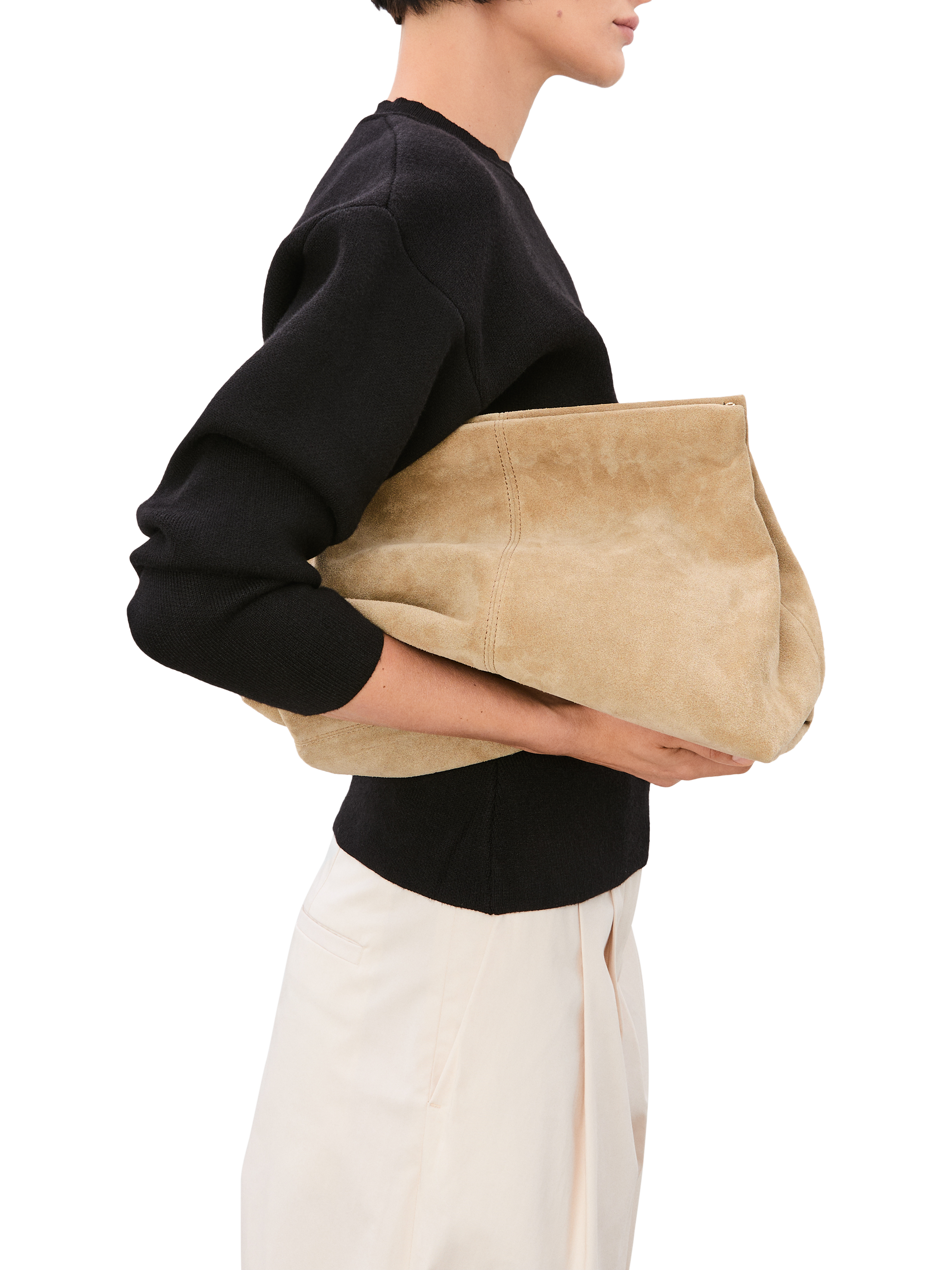 FlatteredClay Oversized Suede Clutch Bag, Sand