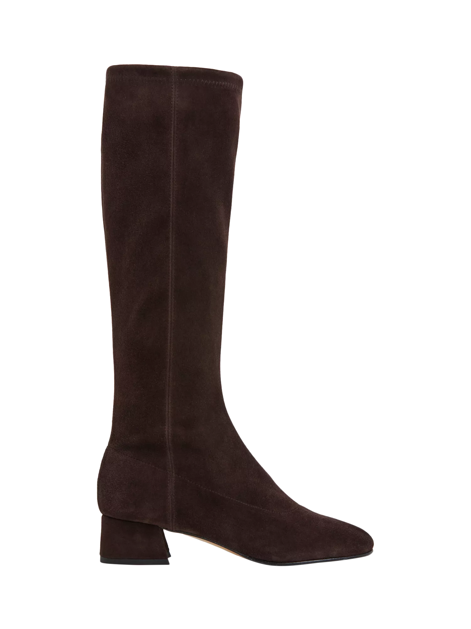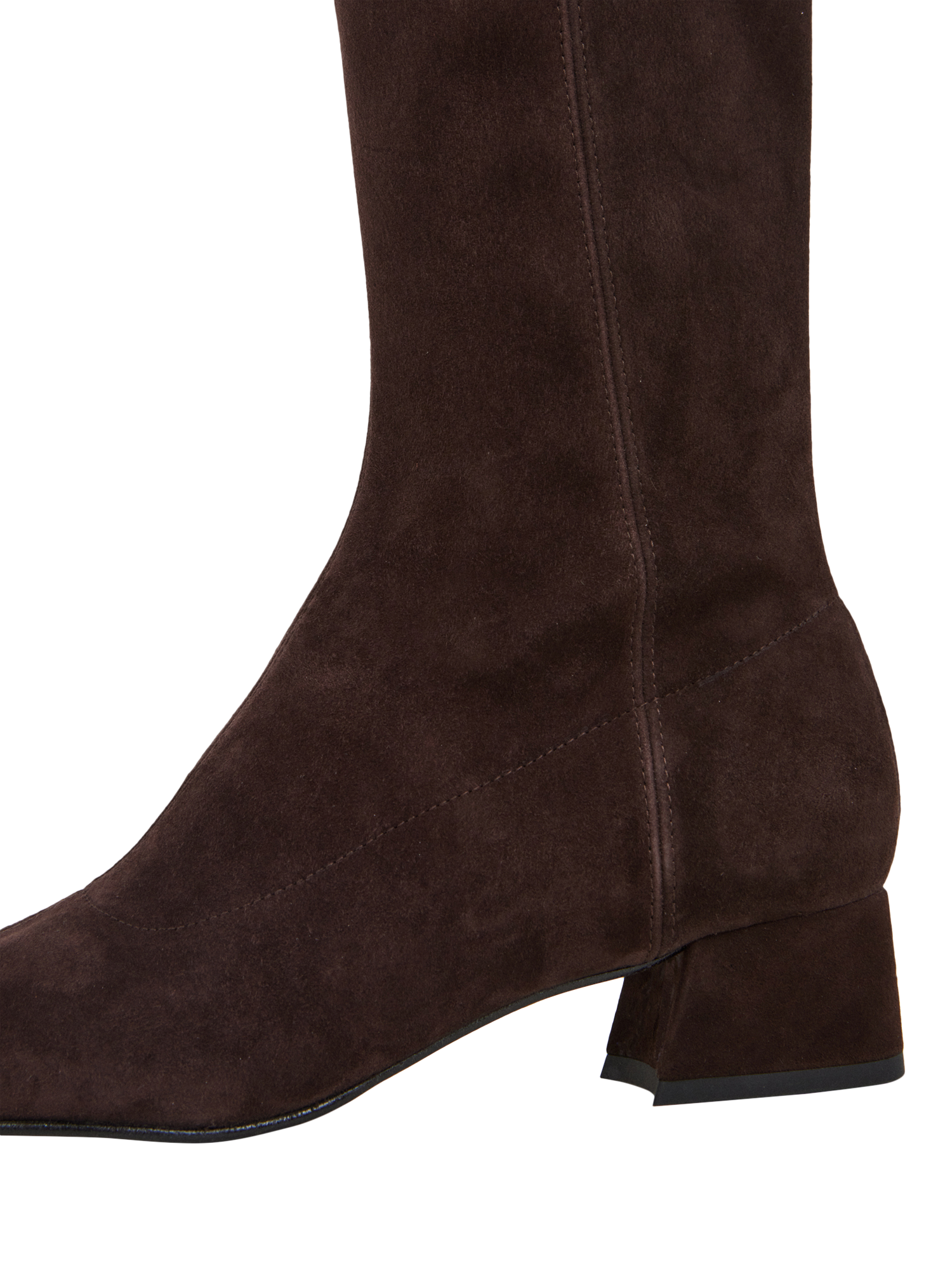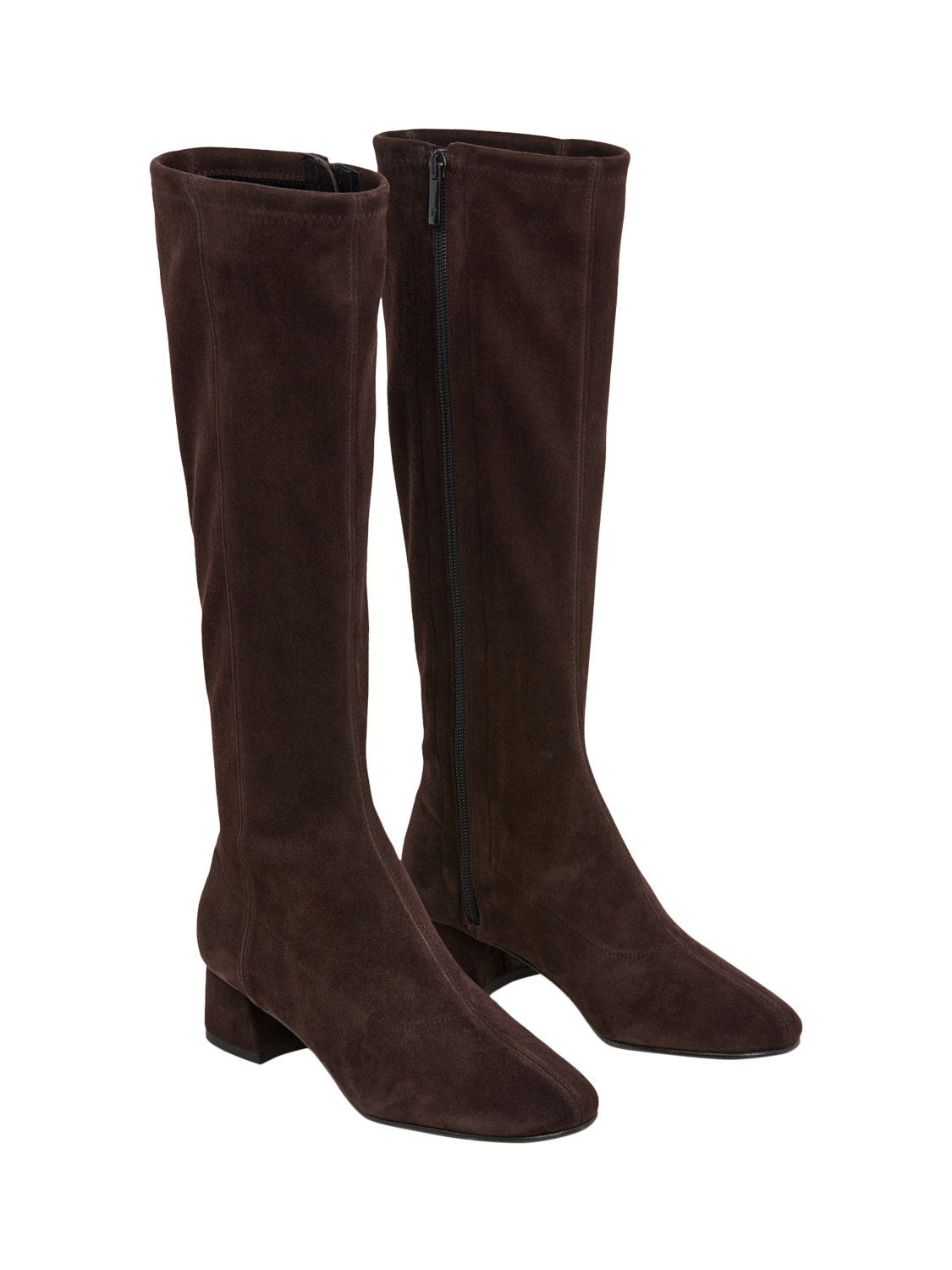 Eden is a high shaft heel boot crafted from luxuriously soft and stretchy suede. It features a round toe shape with a softly constructed toe box for added comfort.