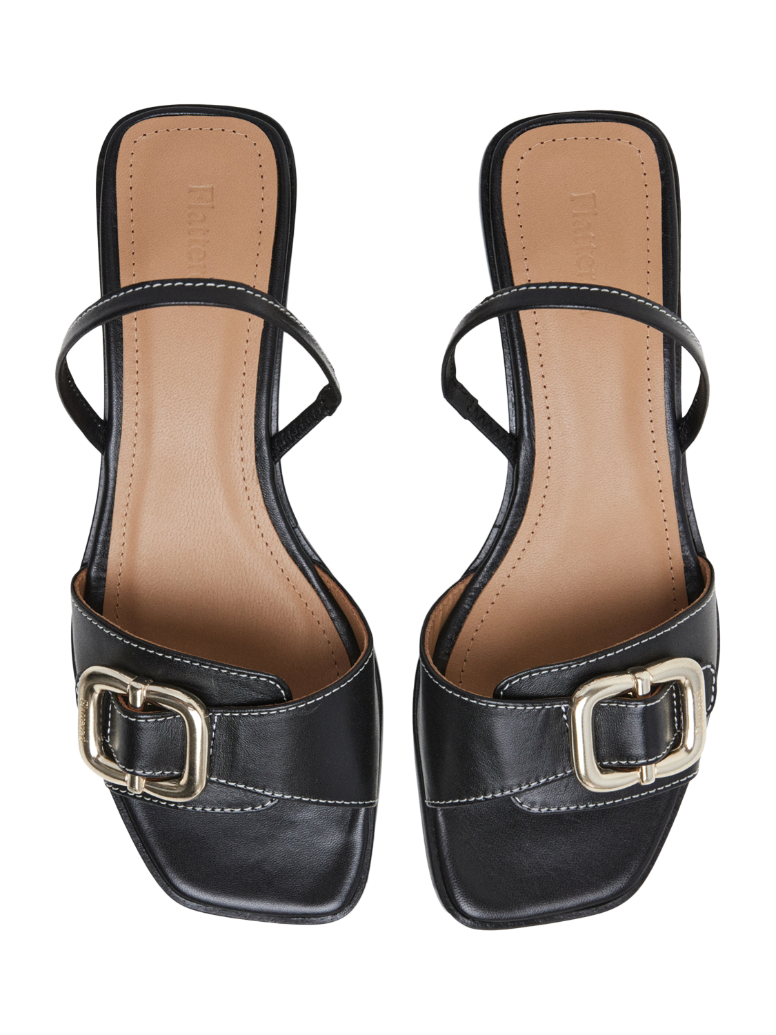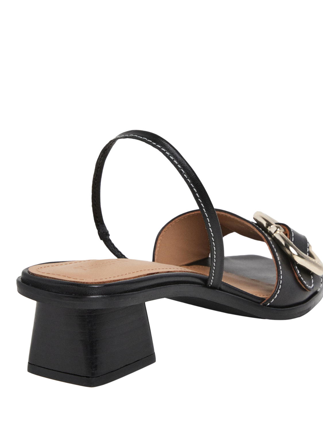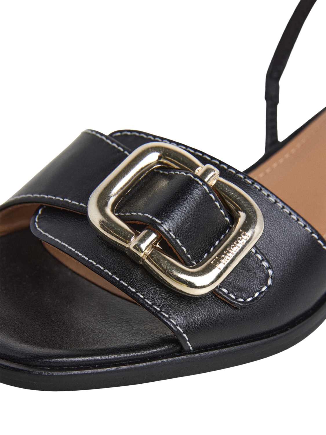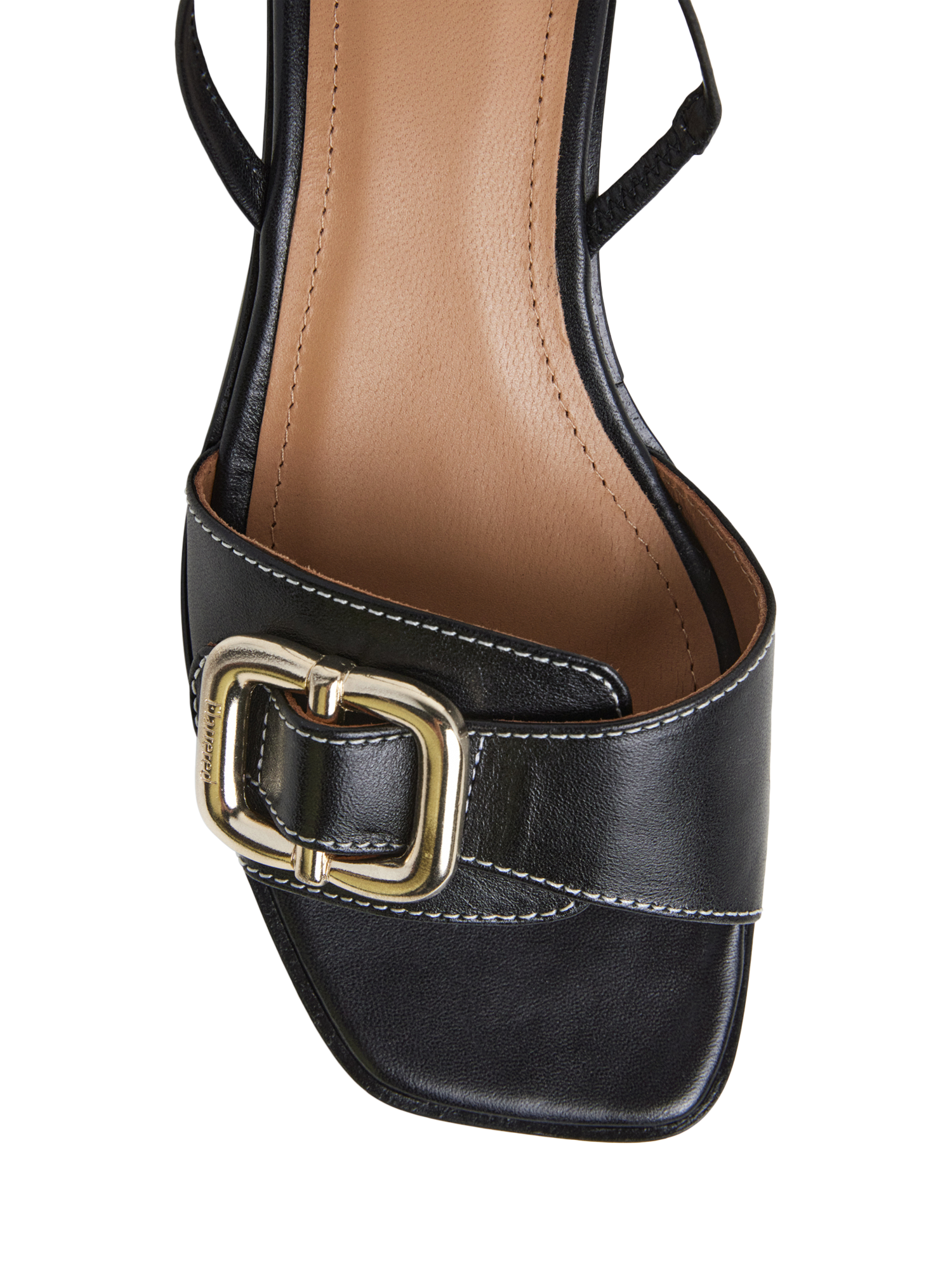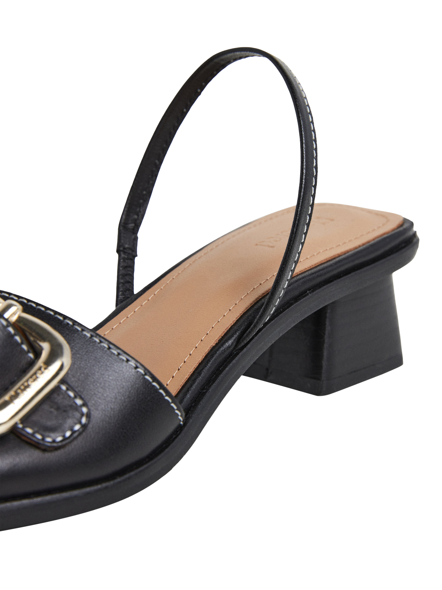 Leather block-heeled slingback sandals. The open toe, elastic strap, and supportive build give you comfort and confidence from day to night.
