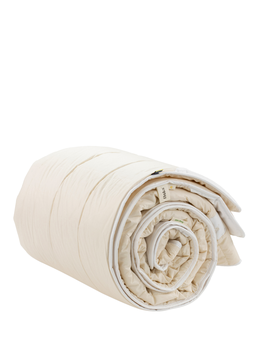 The crème de la crème of bedding, this luxury summer duvet is expertly handcrafted in Yorkshire using 100% traceable British Cheviot wool and certified organic cotton. Thermo-regulating and breathable, it allows moisture and air to flow through it, making it ideal for people with conditions such as asthma and eczema. Wool is completely biodegradable. The tog guide for this summer duvet is 4-5 tog, making it a good all year round choice for a well insulated home. This luxury duvet comes in a 100% recycled cotton duffle bag perfect for storage (or dirty laundry).