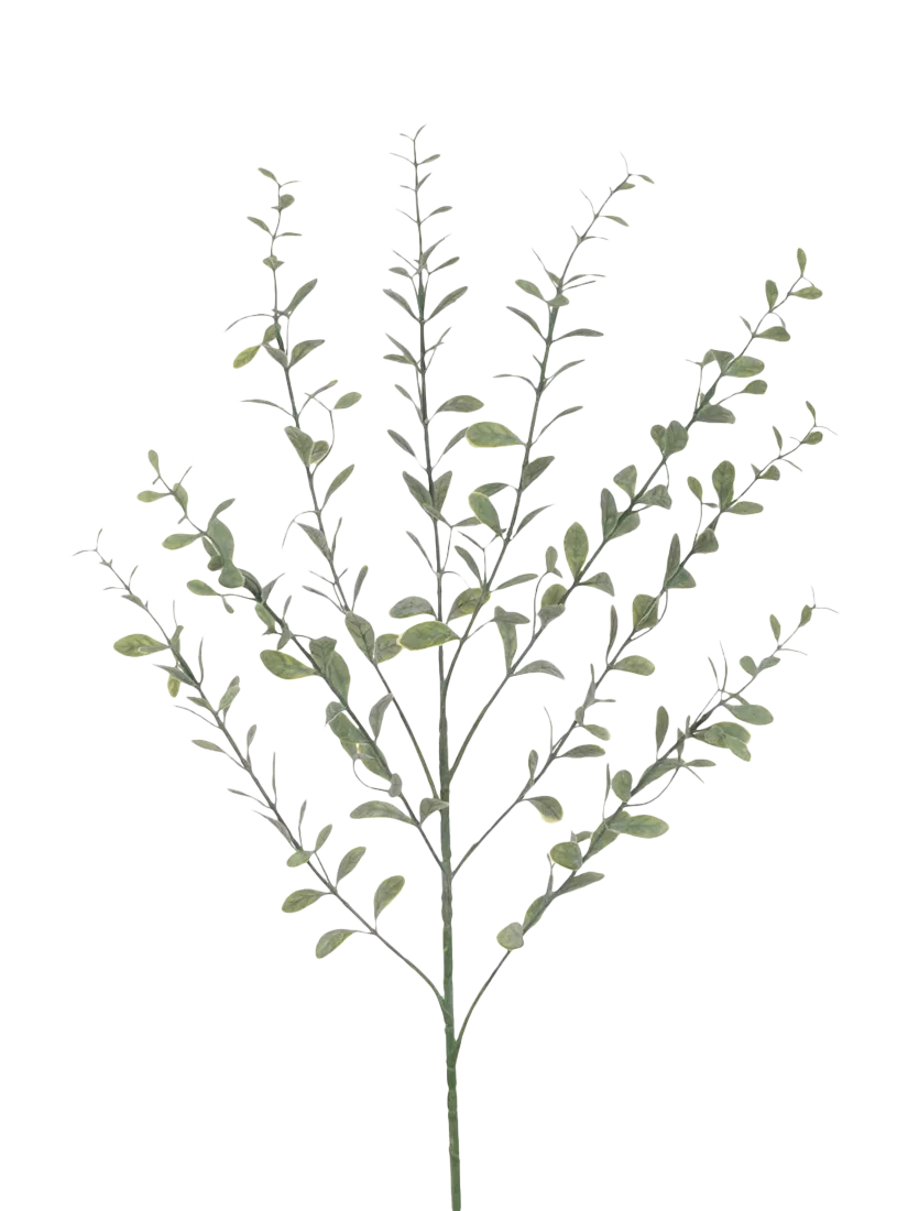 Delicate, lush green, oval-shaped leaves sprout aplenty from this artificial Bay Leaf Spray. With multiple split stems, each uniquely shaped and bearing numerous leaves, this tender artificial foliage offers a glorious amount of greenery. The wired stem can be cut or bent to achieve the desired length.
