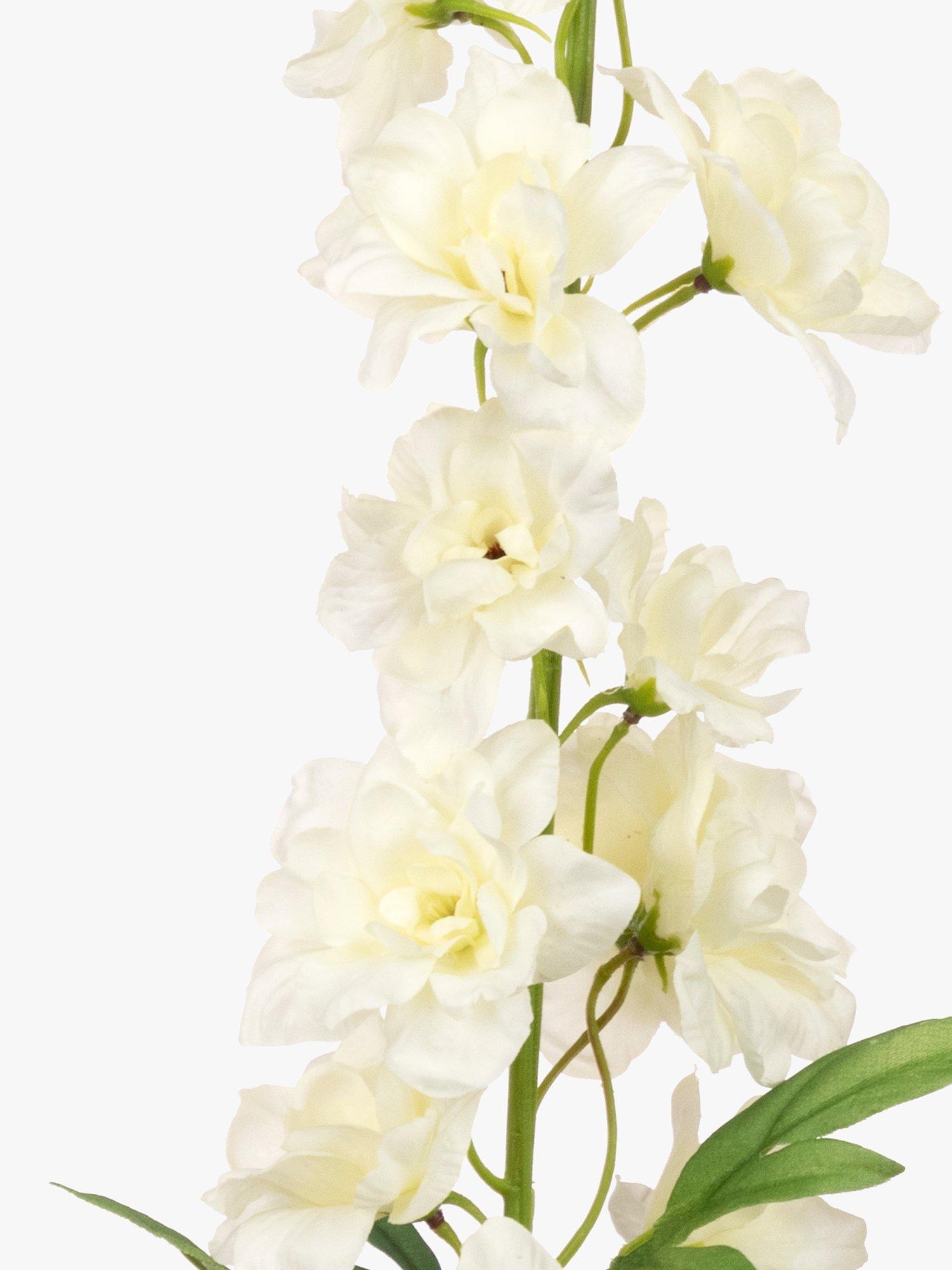 Artificial delphinium spray. Place multiple stems in a vase to create a standalone display or combine with other floral stems to create your own bespoke arrangement. The wired stem can be cut or bent to achieve the desired length.