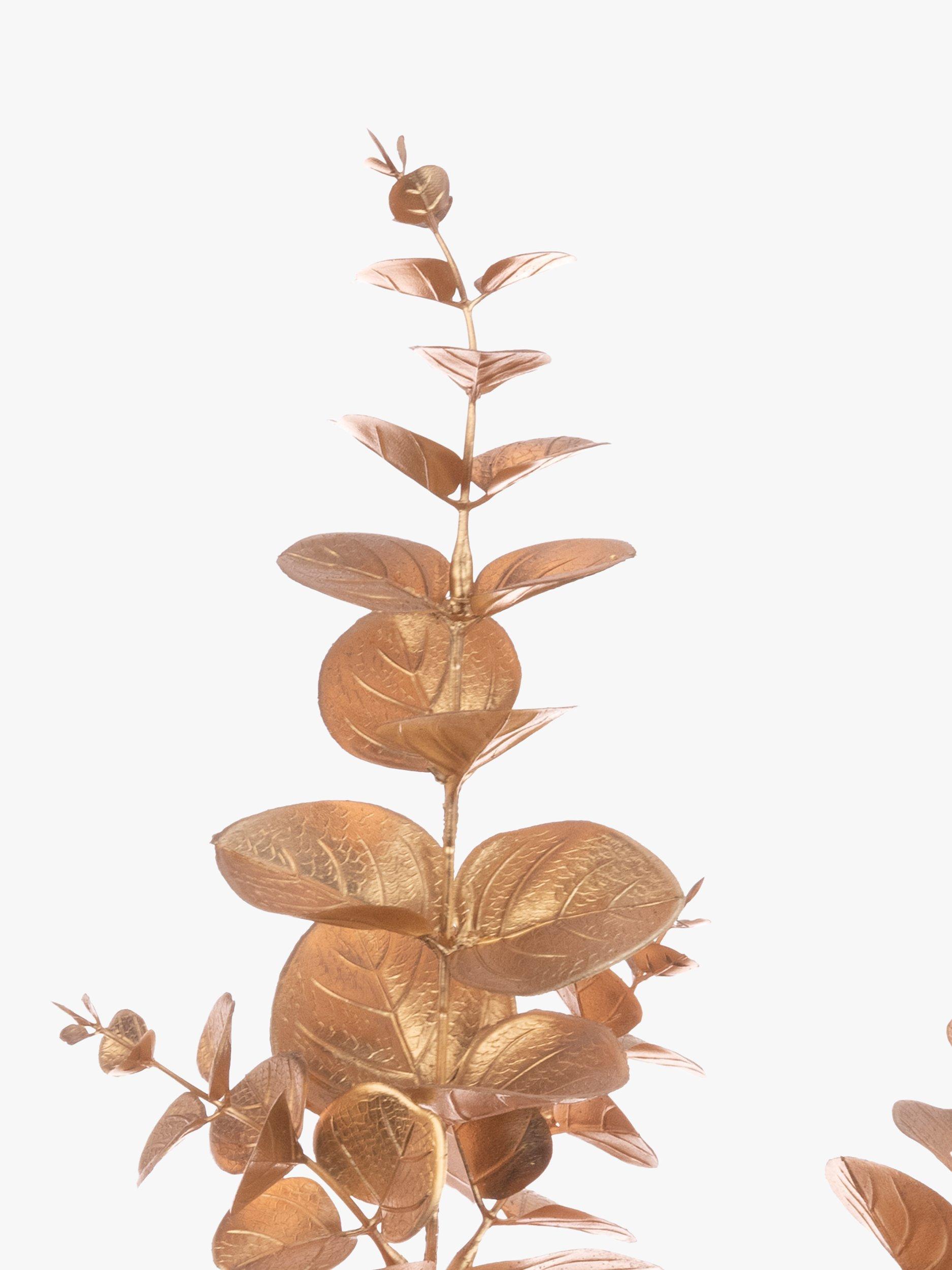 Artificial eucalyptus spray in a metallic finish from Floralsilk. Place multiple stems in a vase to create a standalone display or combine with other artificial stems to create your own bespoke arrangement. The wired stem can be cut or bent to achieve the desired length.