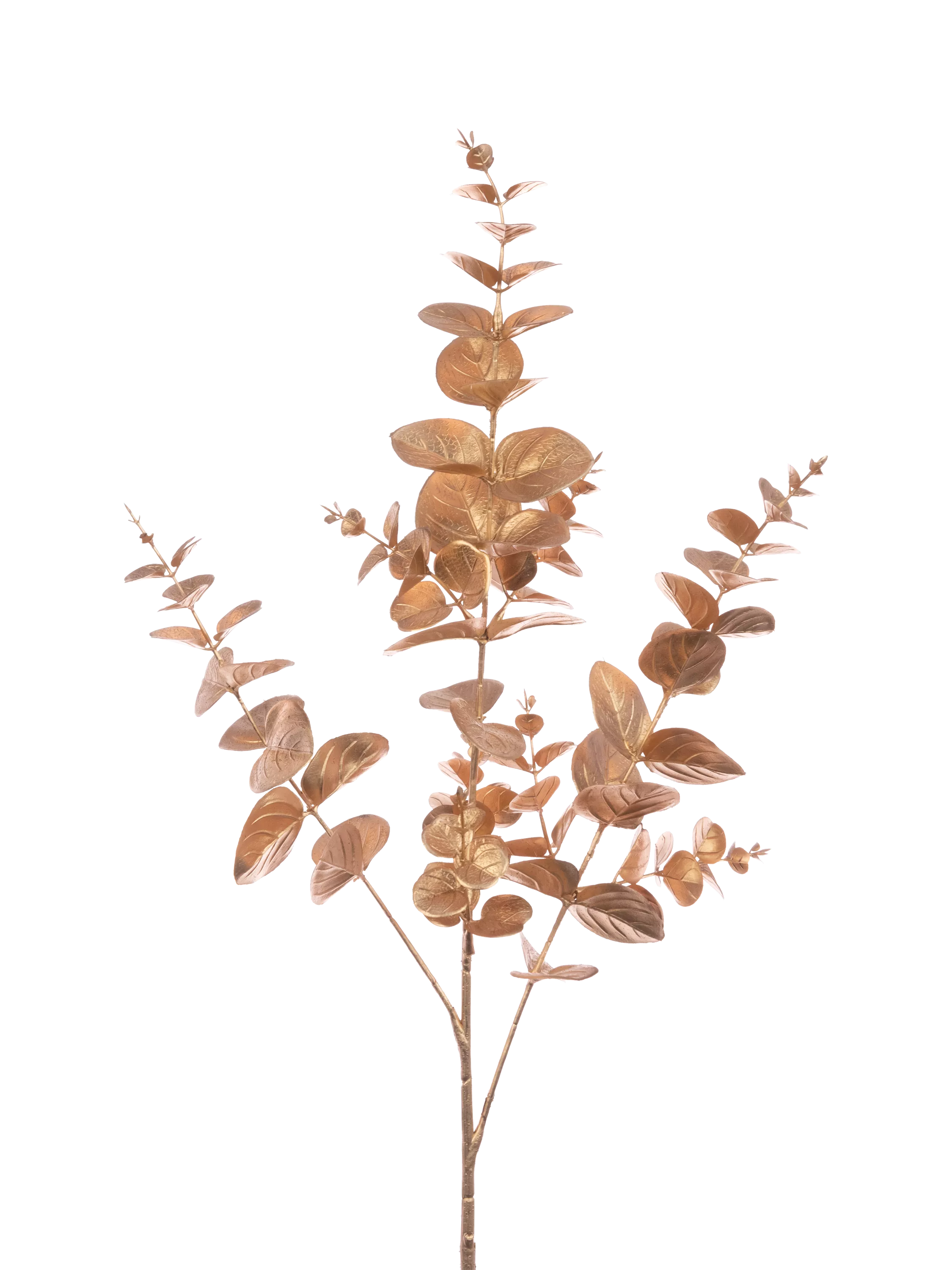 This artificial eucalyptus spray is ideal for seasonal decoration with its warm-toned metallic finish.