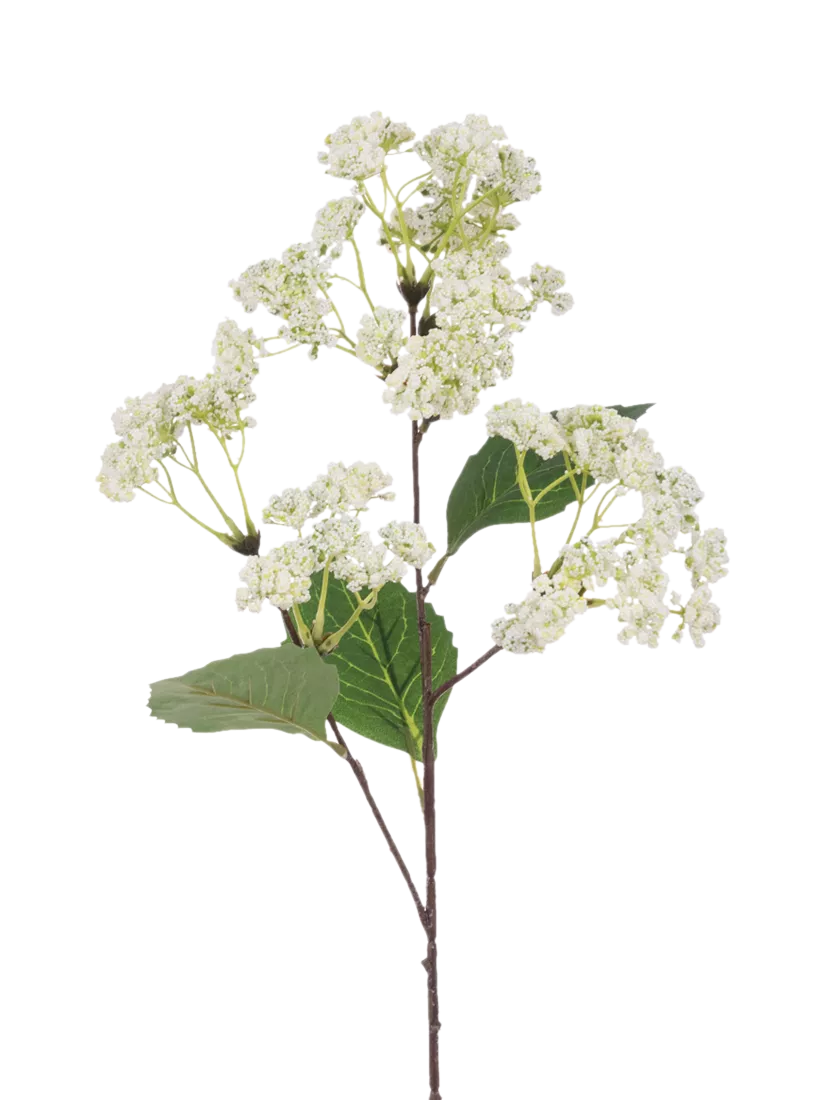 Sophisticated and subtle, this artificial Rice Flower Spray is full of charm. Lush green foliage perfectly offsets the delicate clusters of petite, intricate flower heads, making them a beautiful accompaniment to an arrangement of large statement flowers such peonies, roses and dahlias. The wired stem can be cut or bent to achieve the desired length.