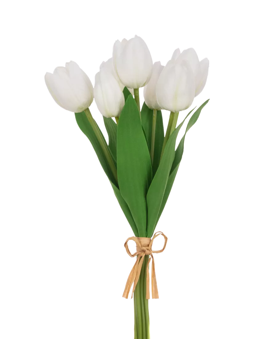 Springtime favourites in calming white tones. Place multiple stems of these artificial tulips in a vase to create a standalone display or combine with other artificial stems to create your own bespoke arrangement. The wired stem can be cut or bent to achieve the desired length.