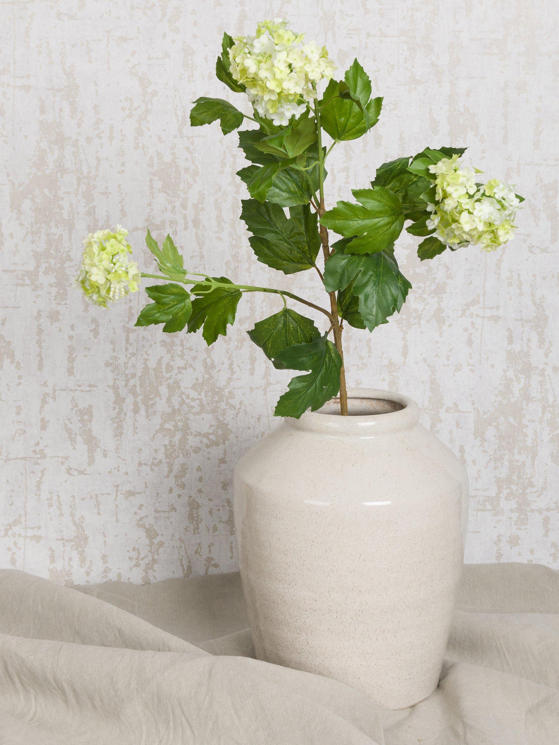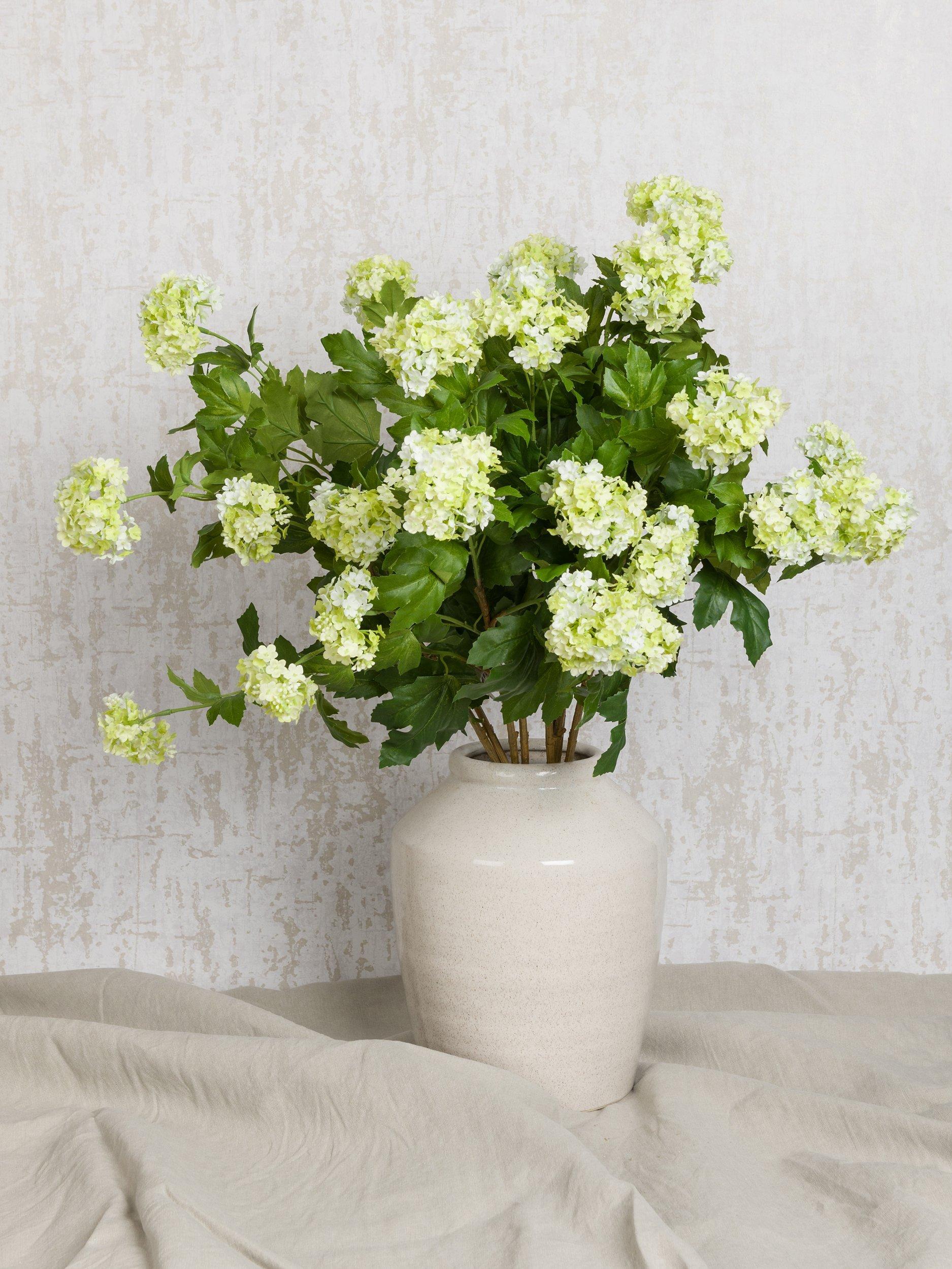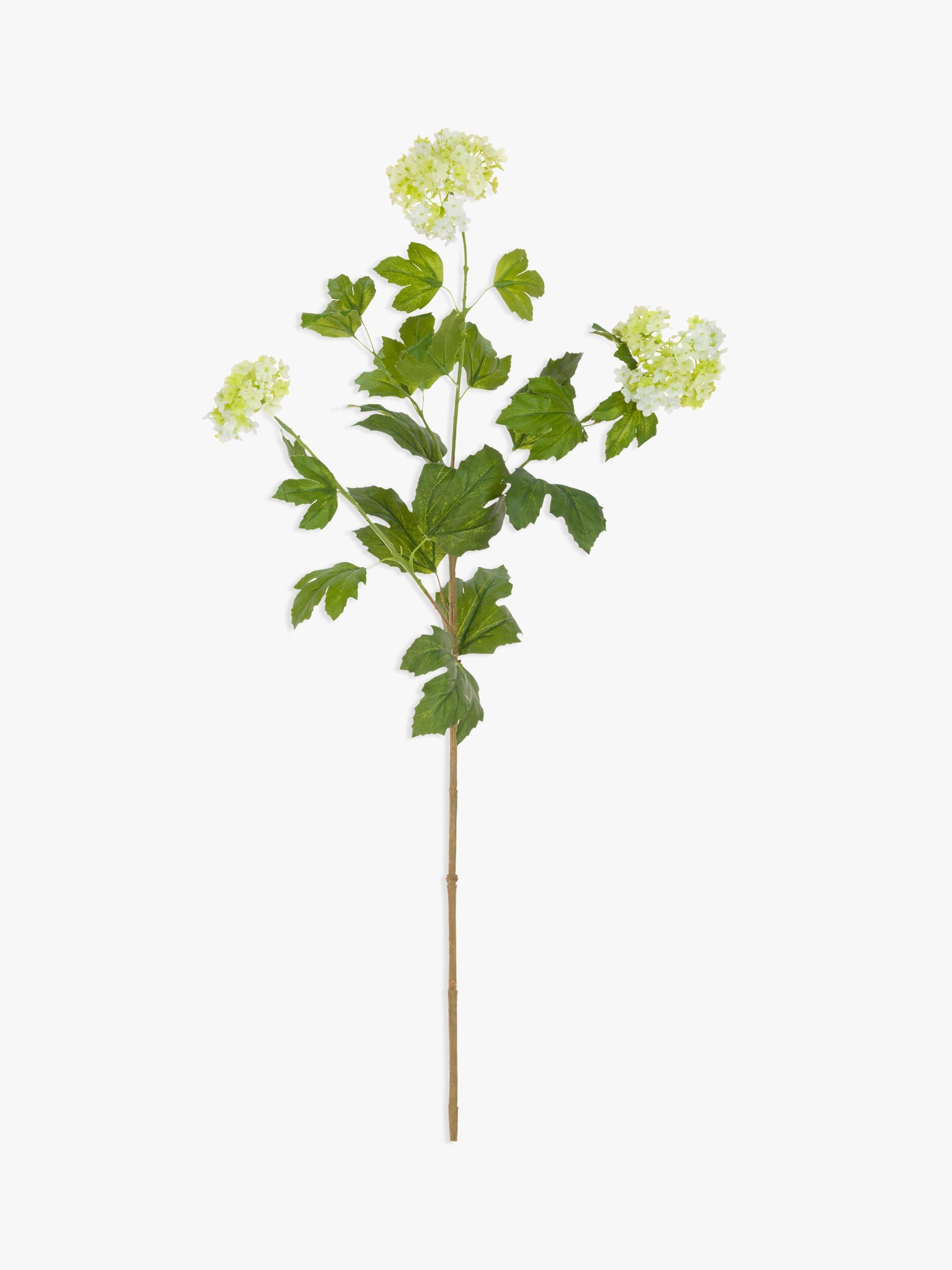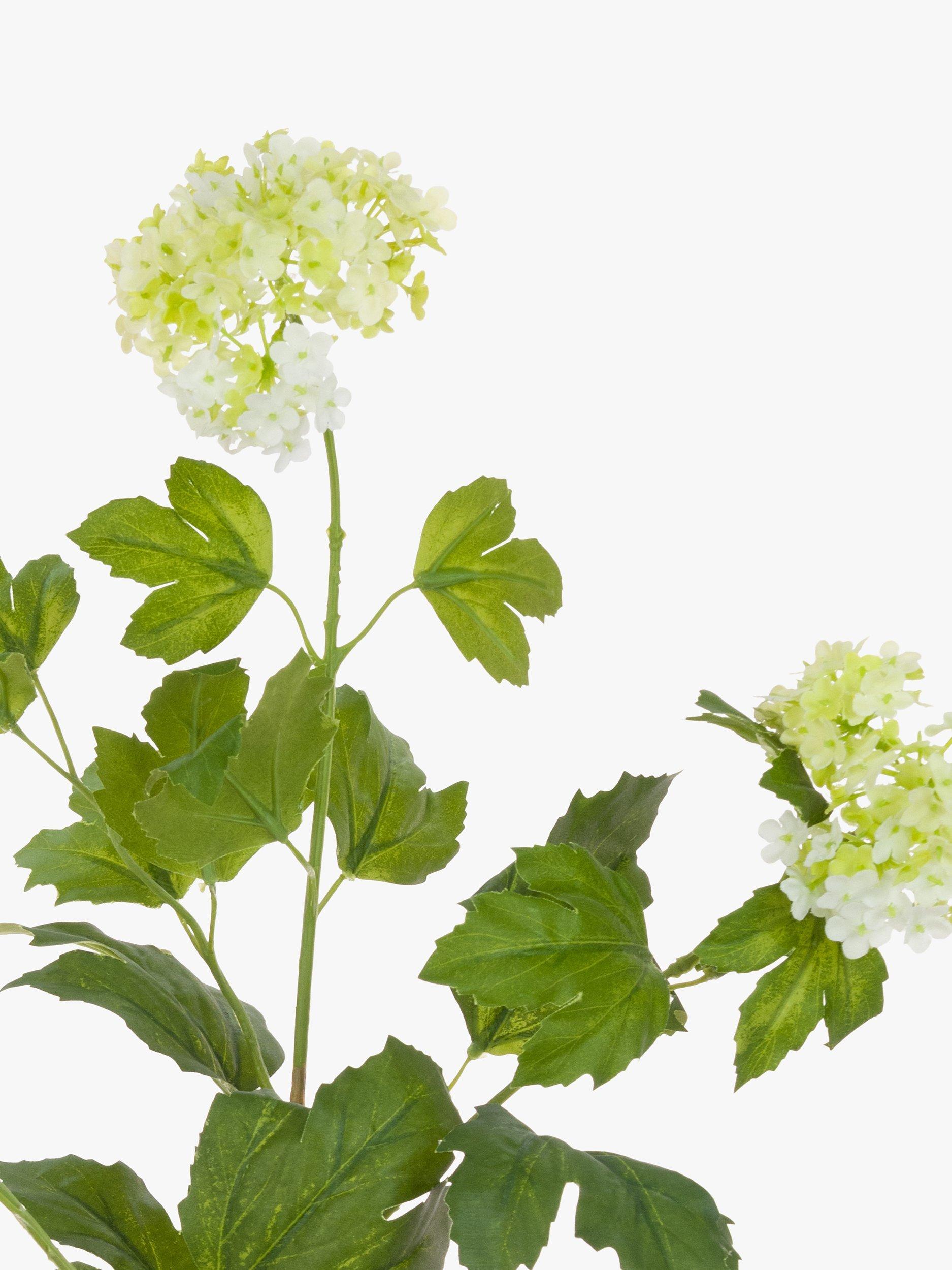 This delightful viburnum stem features globe-shaped flower clusters in tonal green shades and verdant green leaves with toothed edges. A truly lifelike stem and a perfect choice for bringing the outside into your home.