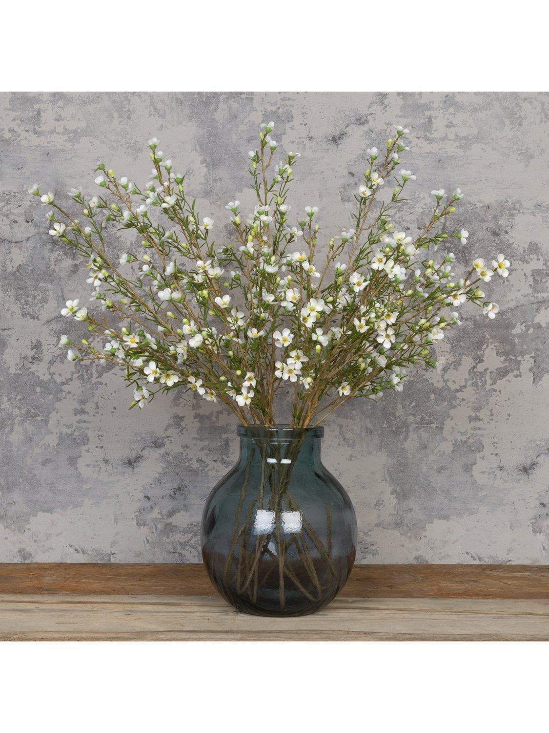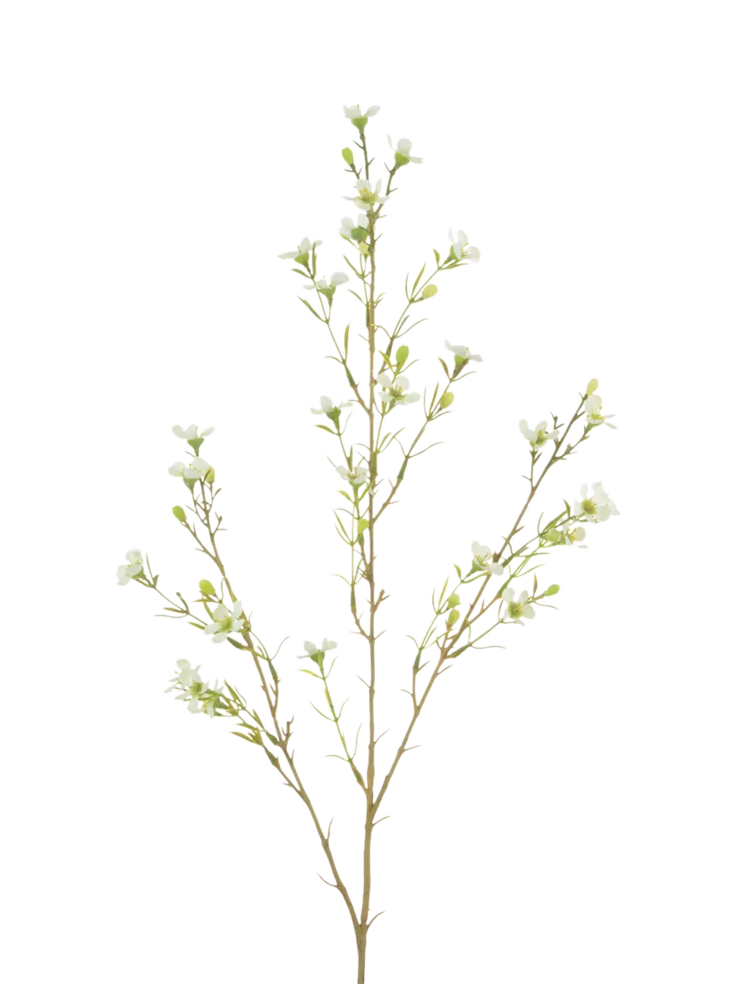 Pretty and delicate, this Faux Wax Flower adds a little touch of springtime to your vase. Its spray of fine stems is adorned with bijou pale green leaves and topped with individual buds and flowerheads. Evoking the hope and happiness of blossoming trees, these versatile artificial stems are bound to become a firm favourite. The wired stem can be cut or bent to achieve the desired length.