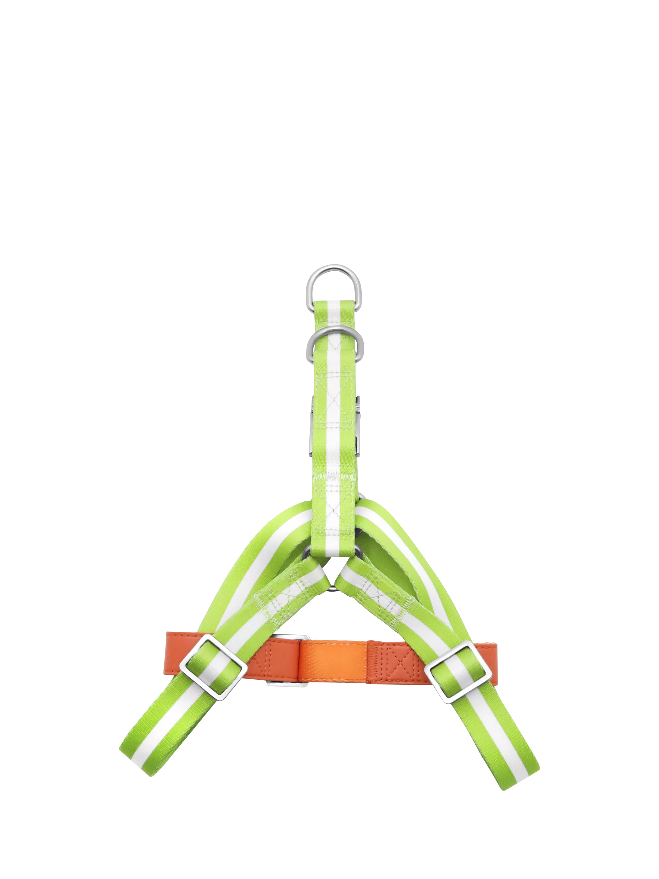- Made with striped polyester tape and apple-derived leather. The striped polyester tape combo harness ensures maximum strength and performance