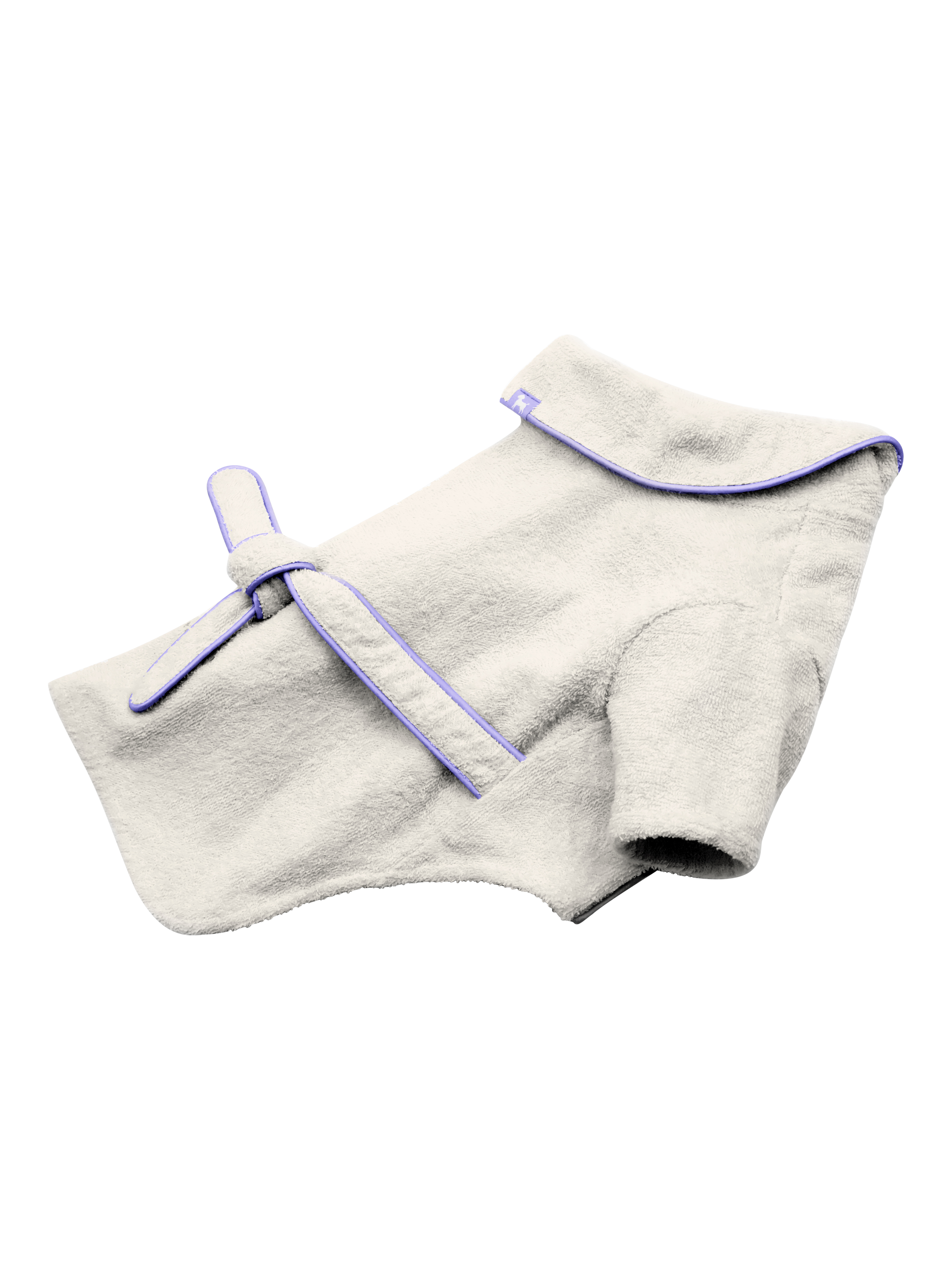 This premium dog bathrobe is made from 100% recycled cotton terry fabric, ensuring your furry friend stays cosy and comfortable. The solid color with contrast color binding creates a sleek and stylish look, while the ""winnie"" logo tab adds a touch of playfulness. The snap button closure and tied waist make it easy to put on and take off, and the logo embroidered at the bottom adds a touch of sophistication.