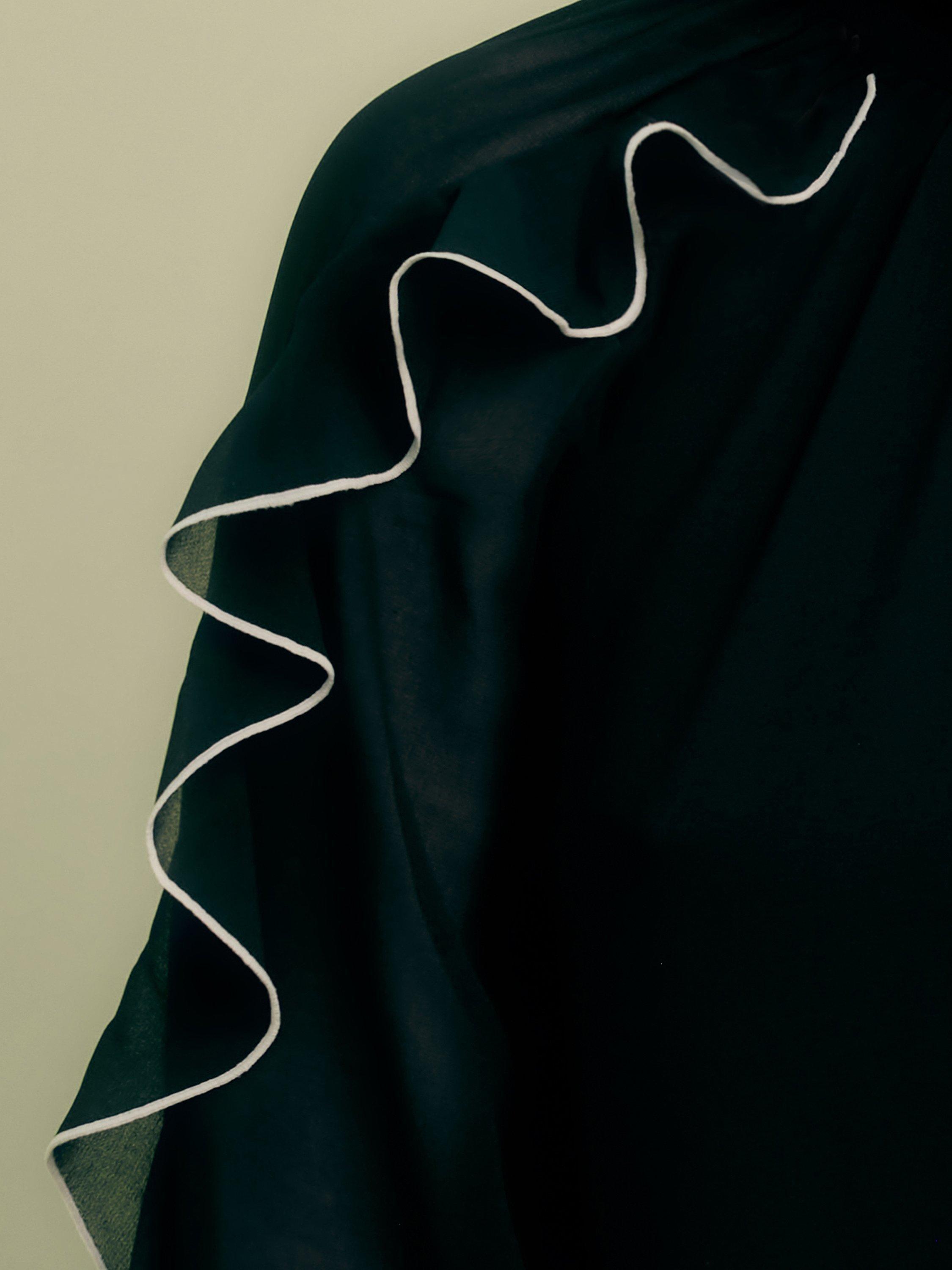 Eye catching ruffles with contrast tipping give this mini dress a modern twist - versatile for all occasions.