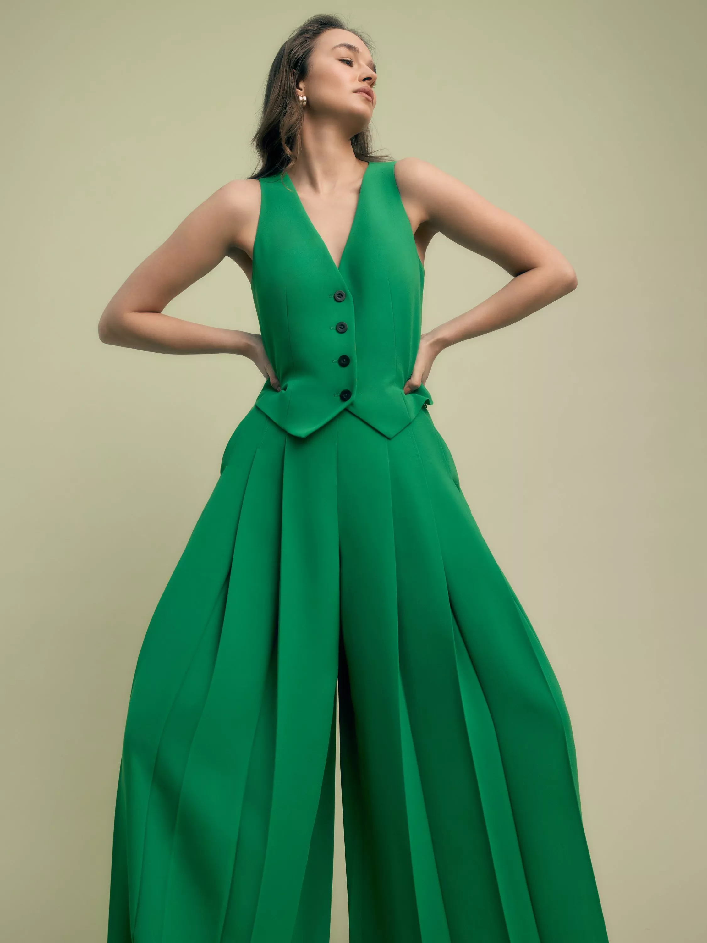 Deep pleats define FLORERE's hero wide-leg trousers. Team with the brand's matching waistcoat. Fully lined, these full-length trousers fasten with a zip at the side.