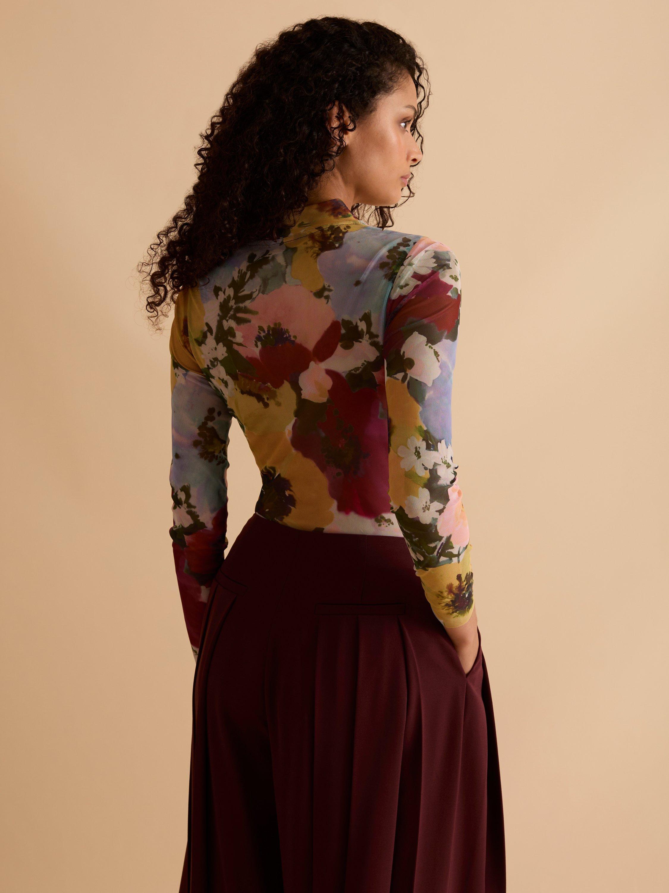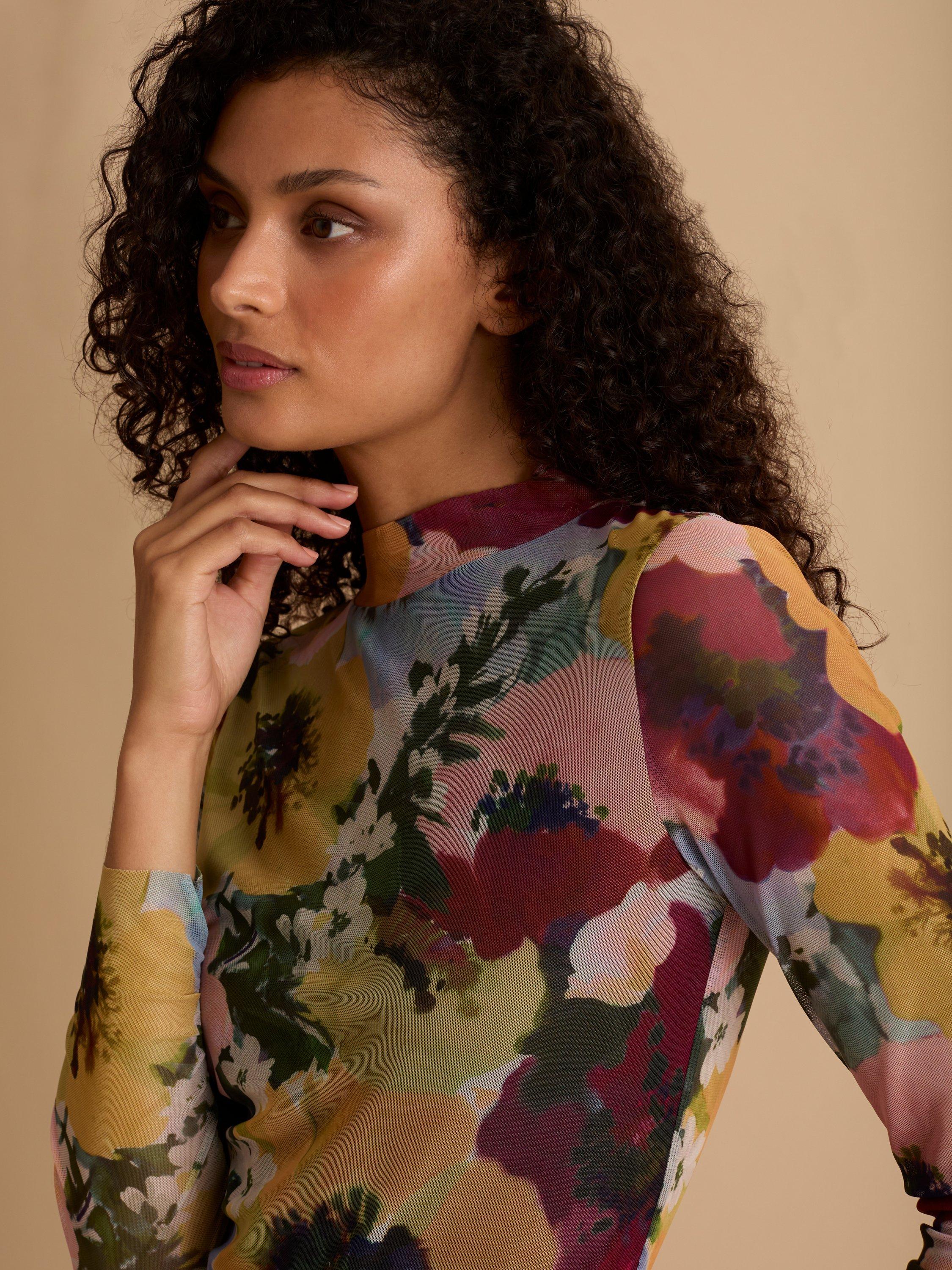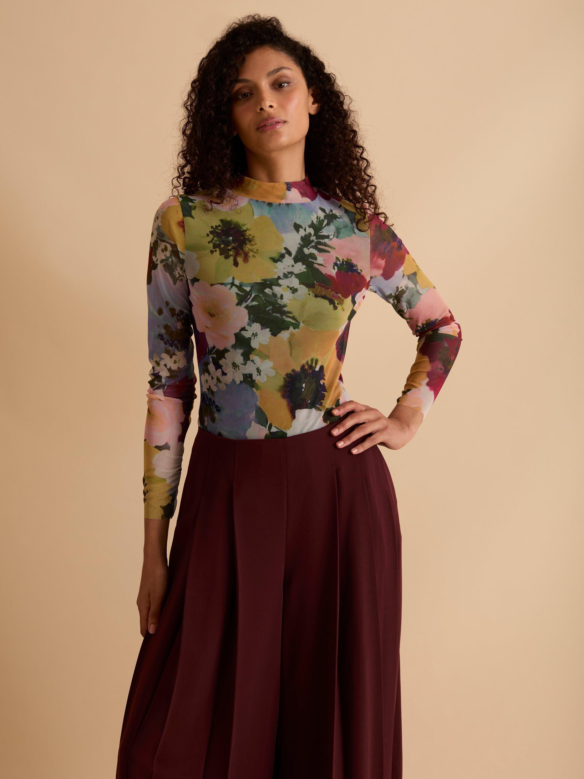 This floral print mesh top is the perfect pairing piece for your wardrobe. A season staple for any occasion.
