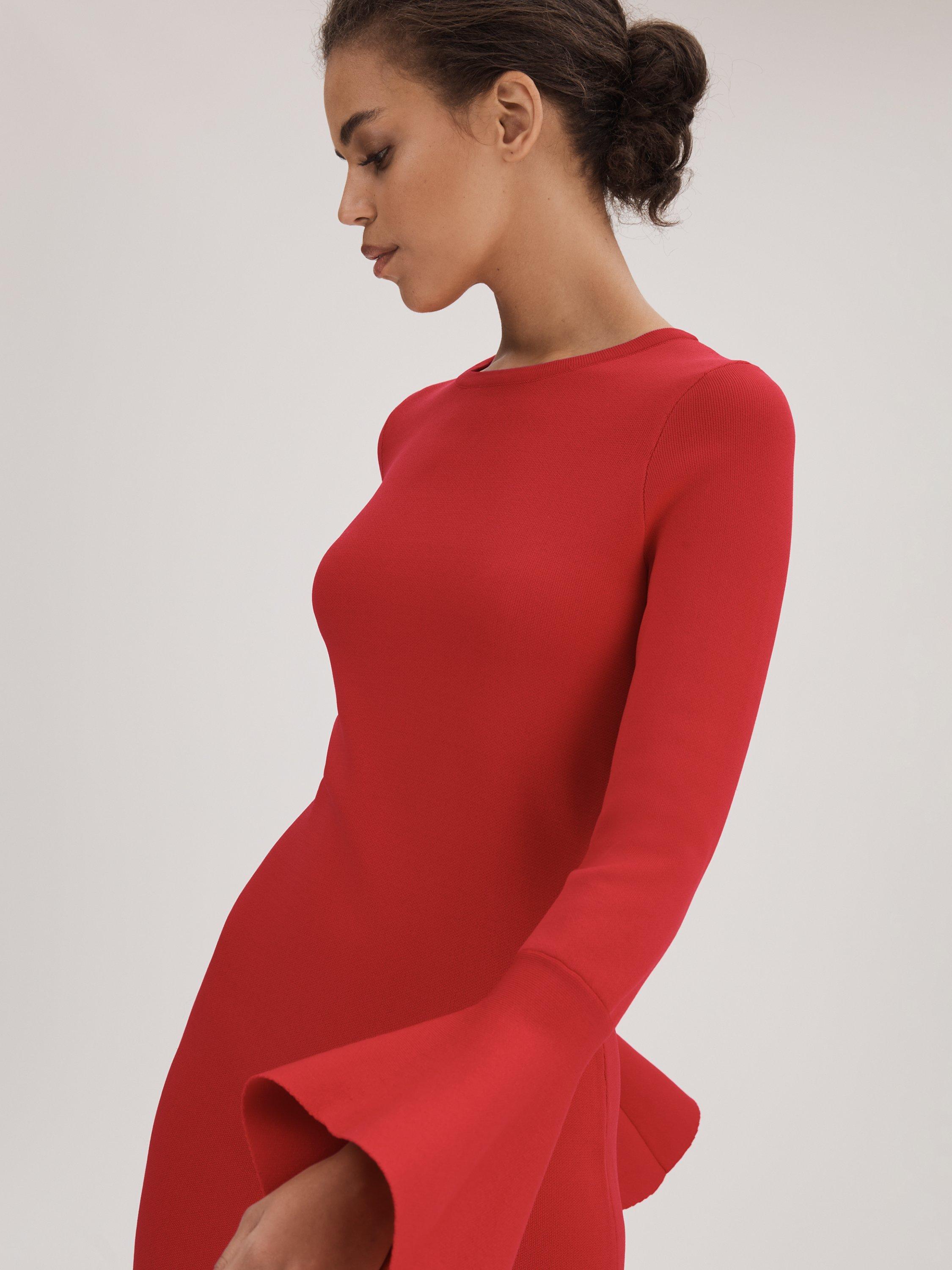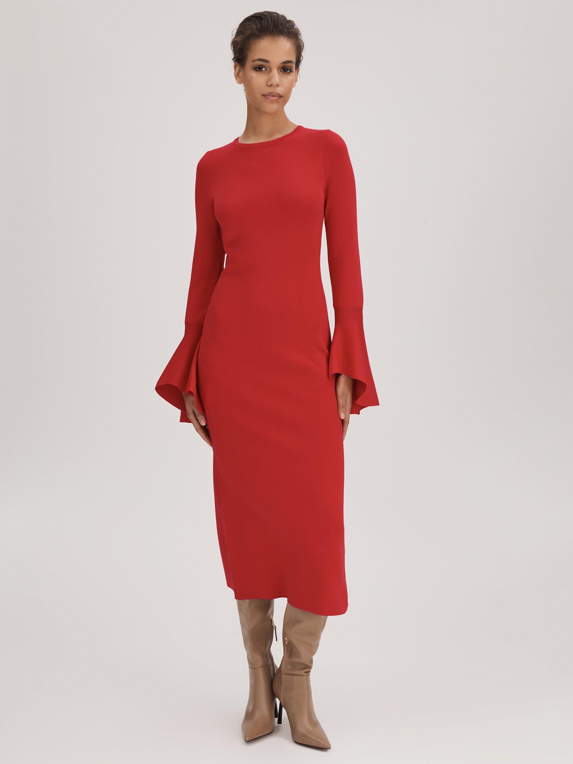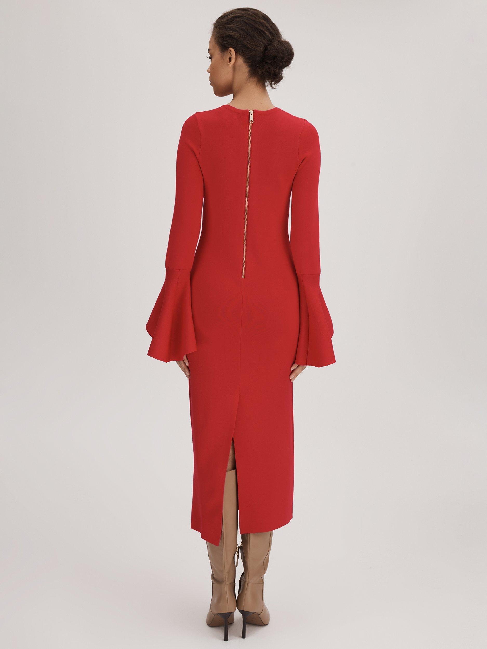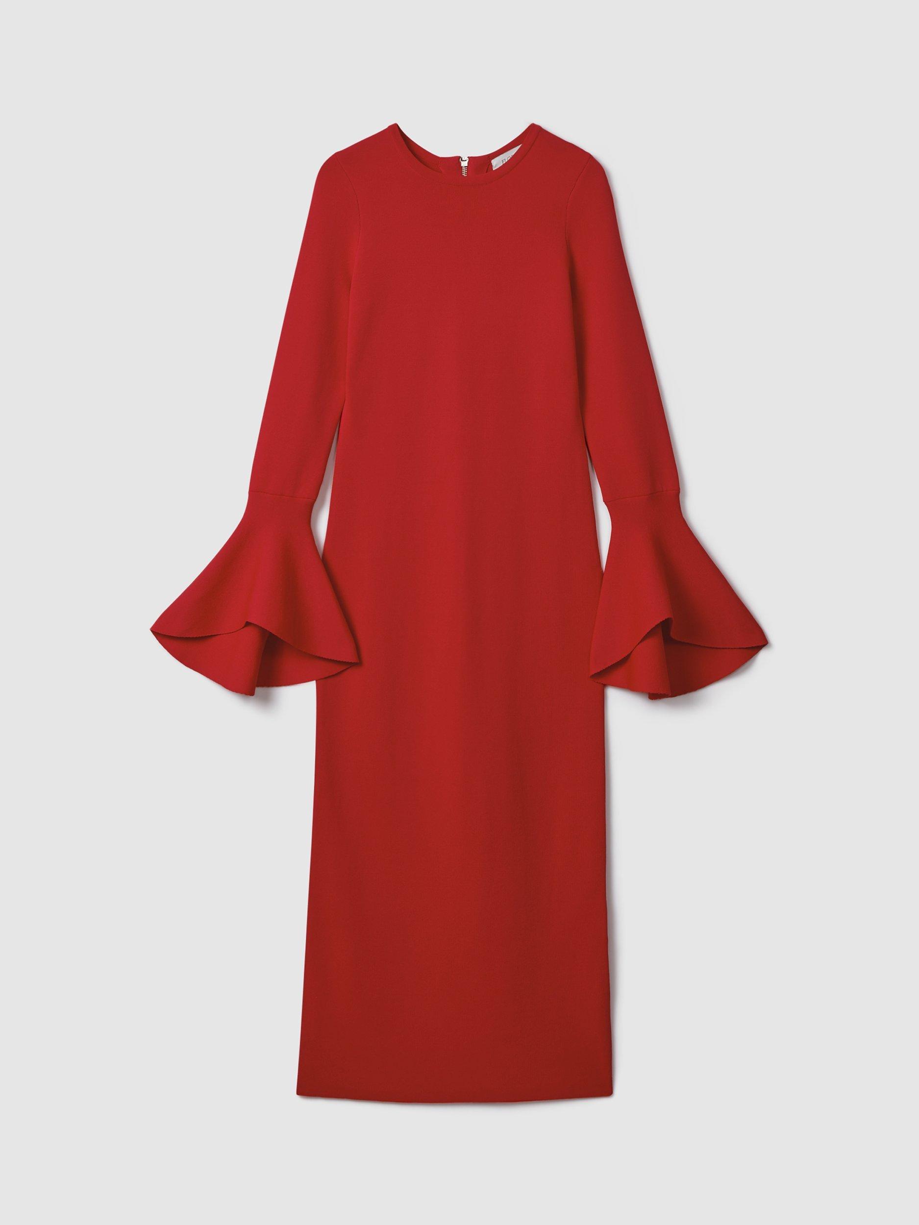 Straight up and down, this midi dress from FLORERE is made from a liquid-like viscose blend. Rounded up with a hassle-free neck and extra long sleeves with fluted cuffs, it redefines your collection with the minimum of fuss.