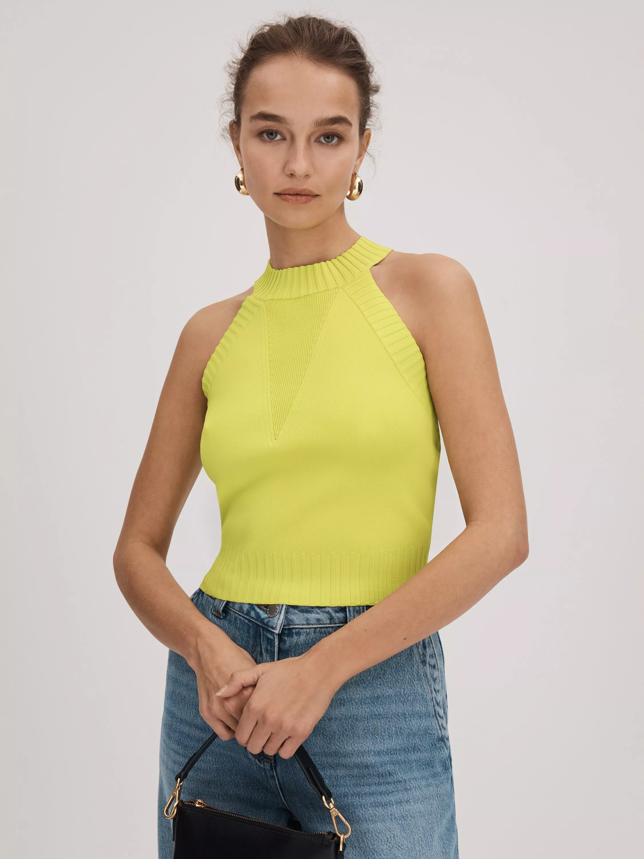 A summer staple, this knitted tank top from FLORERE features a high ribbed neck and comes in a number of colourways that you can mix and match with your existing wardrobe.