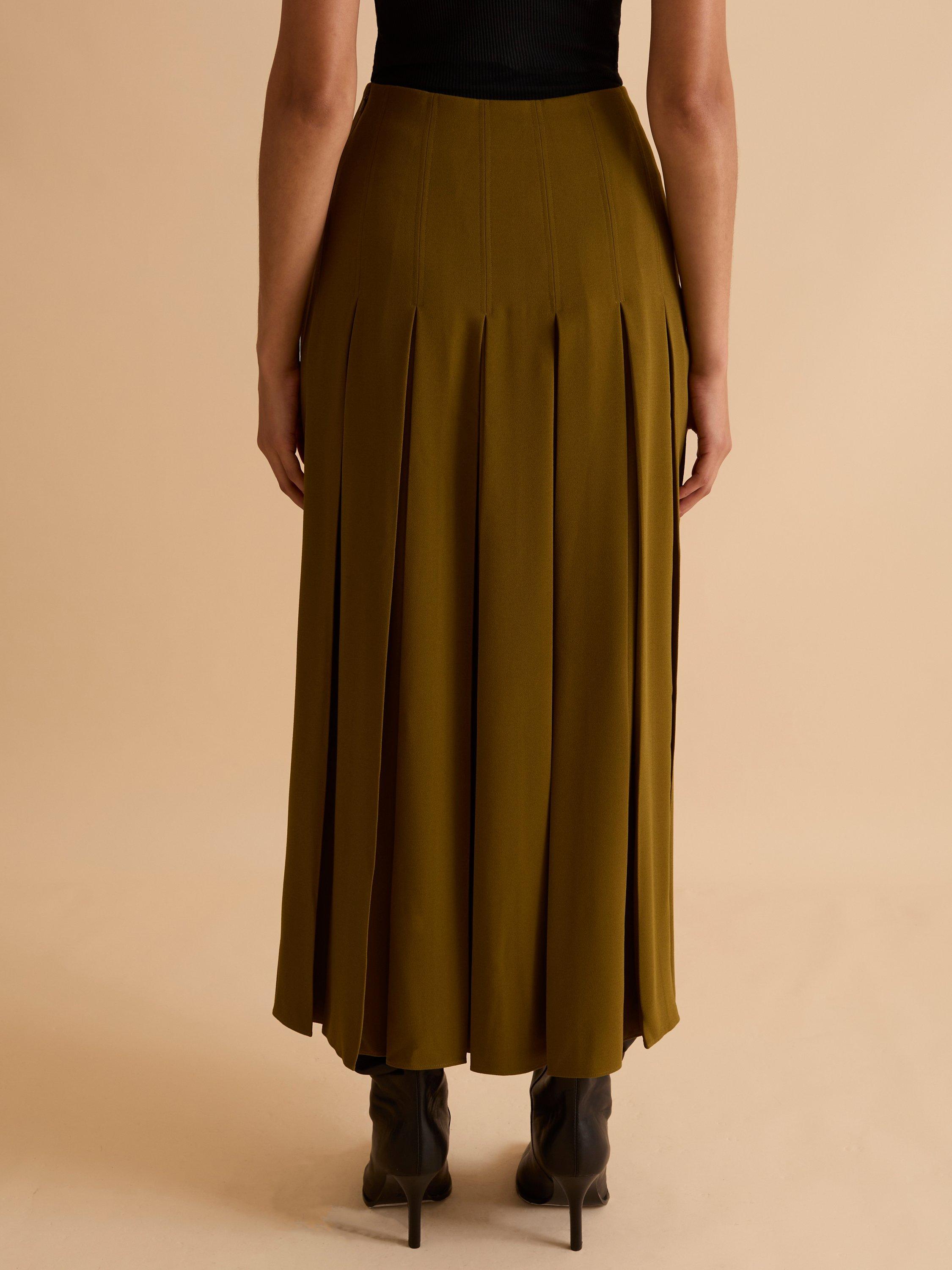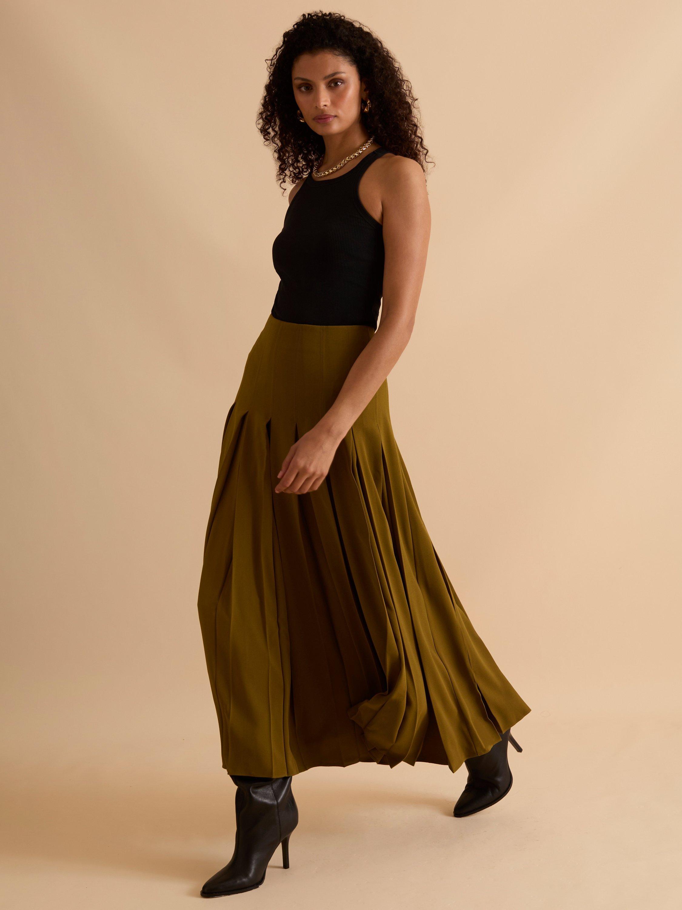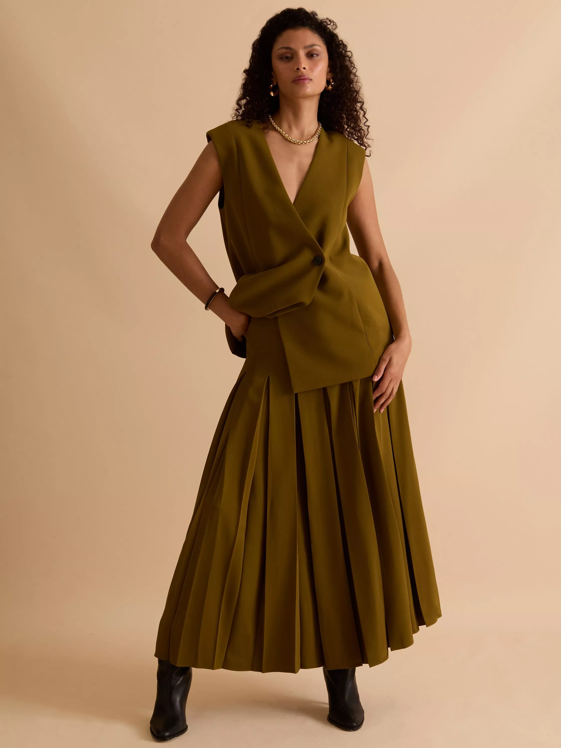 A modern tailoring staple, this deep pleated maxi skirt is the perfect pairing with a longline waistcoat.