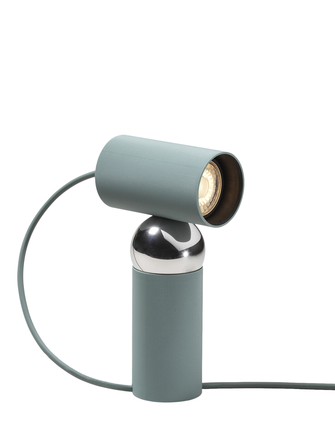Table lamp with an adjustable head, designed by Philippe Malouin. The integrated LED bulb and cut-off provide direct lighting where you need it. The two-metre cable can be adjusted and locked in place through a special slit in the base of the lamp.