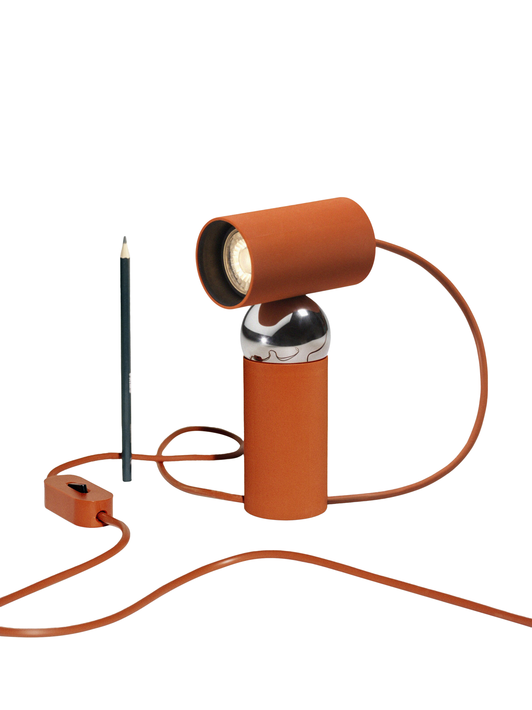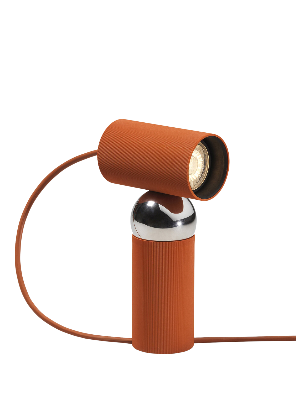 Table lamp with an adjustable head, designed by Philippe Malouin. The integrated LED bulb and cut-off provide direct lighting where you need it. The two-metre cable can be adjusted and locked in place through a special slit in the base of the lamp.