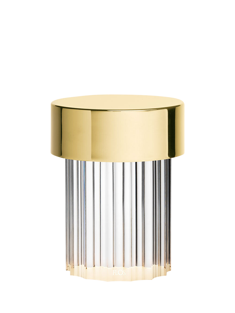 The Flos Last Order table lamp, designed by M. Anastassiades in 2020, is a rechargeable design. It diffuses light through a transparent solid crystal base with a shape inspired by the architectural typology of ancient columns. The top cover comes in a combination of different metal and colour finishes.