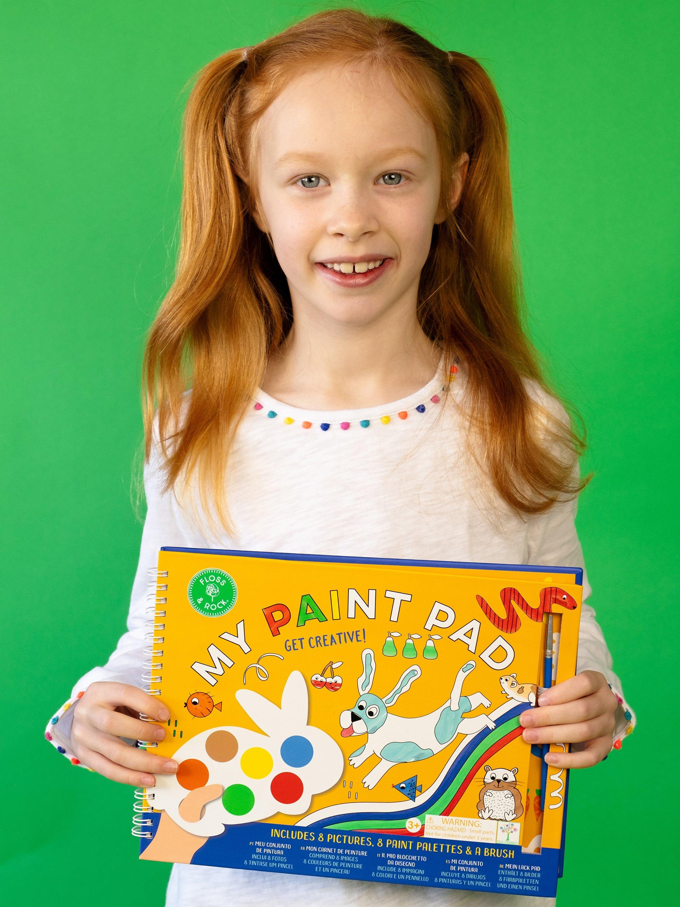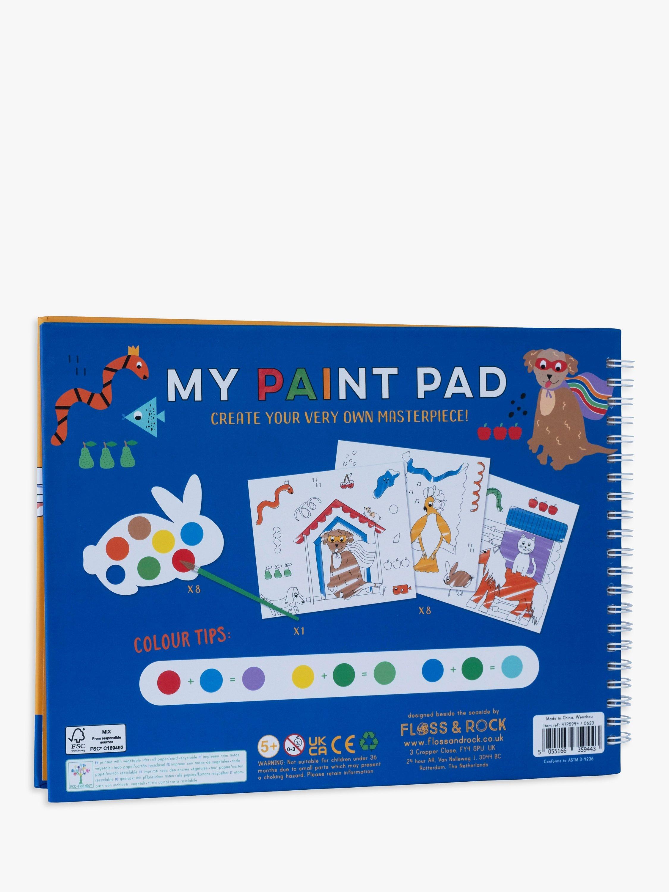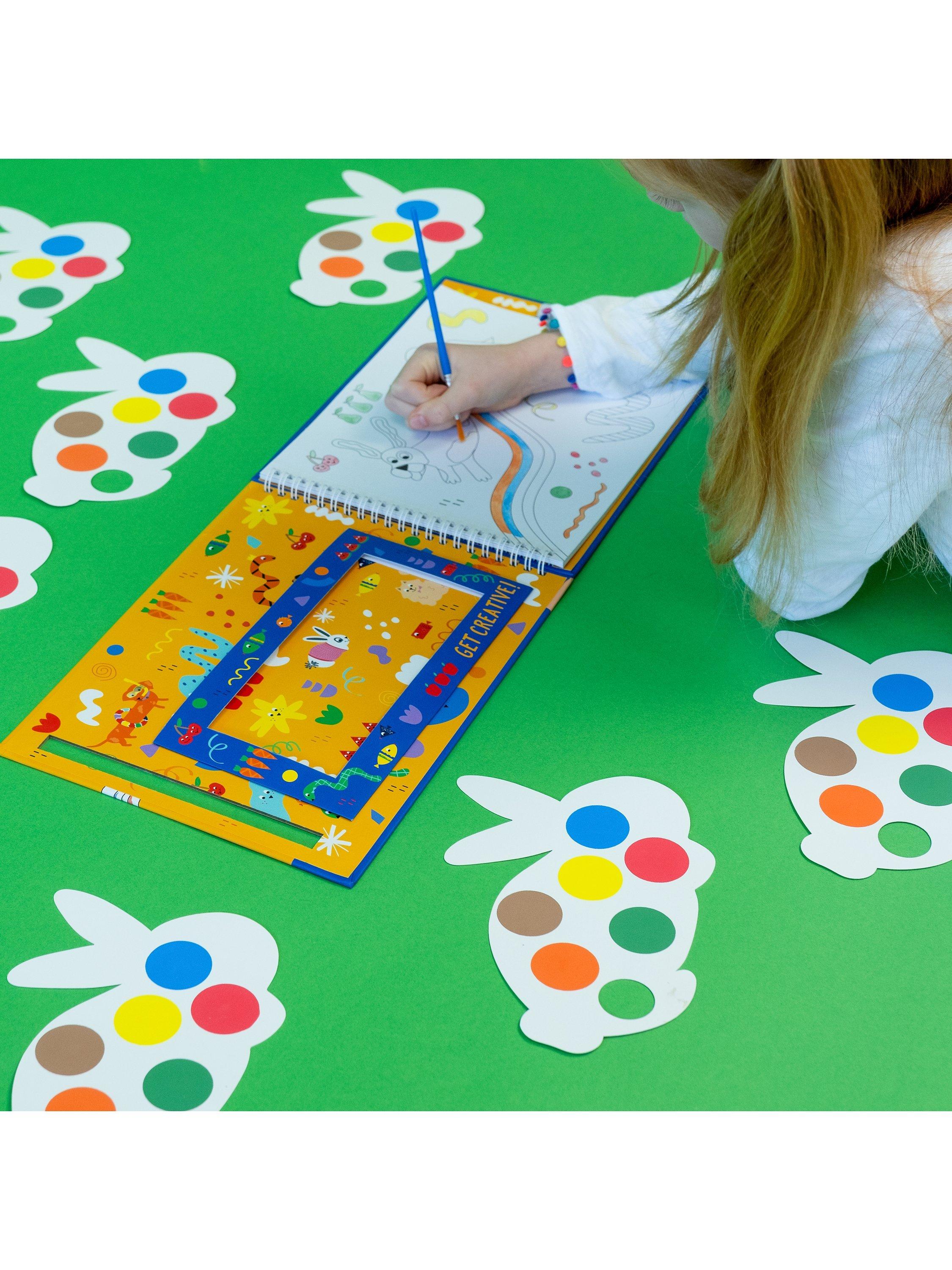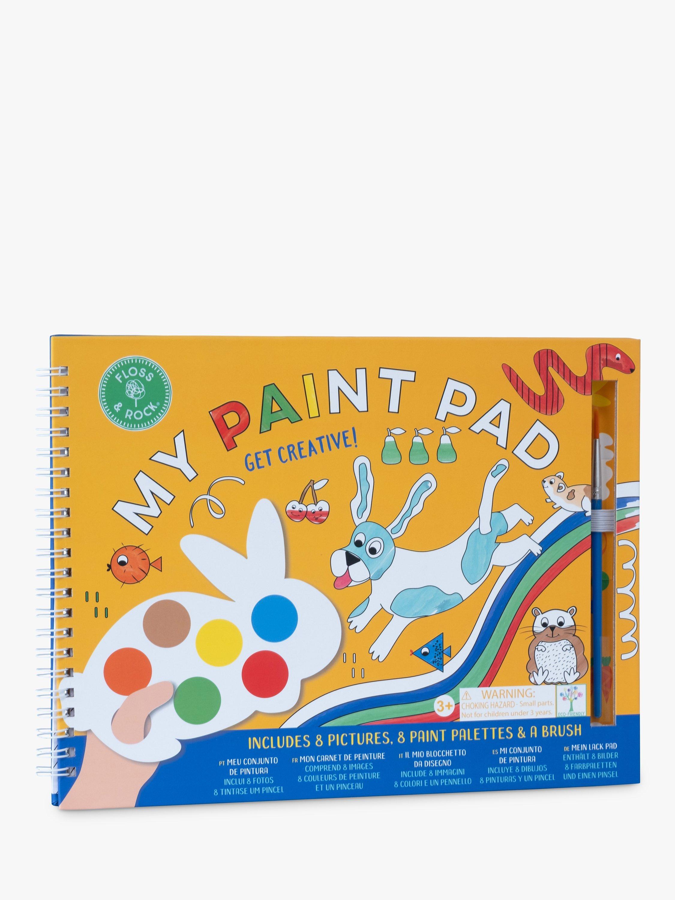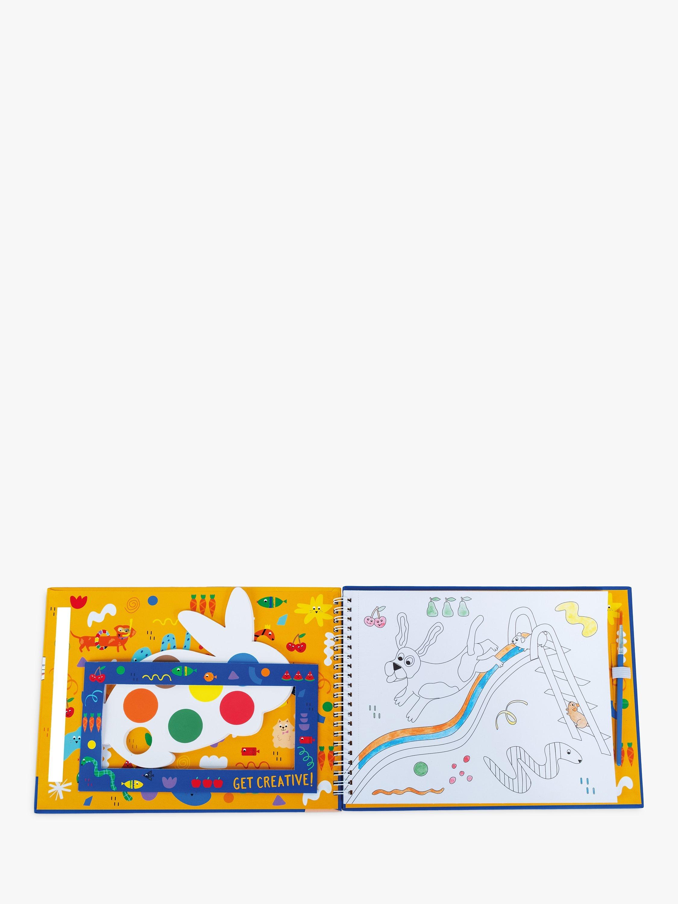 Spiral bound paint pad which includes 8 individual rabbit-shaped paint palettes, 8 gorgeous tear-out pictures and a paint brush. Simply add a small amount of water onto your brush, swipe across the paint colour on the palette and then paint your masterpiece! The paint palettes and brush are securely stored within the pad when not in use making it perfect for painting on the go!