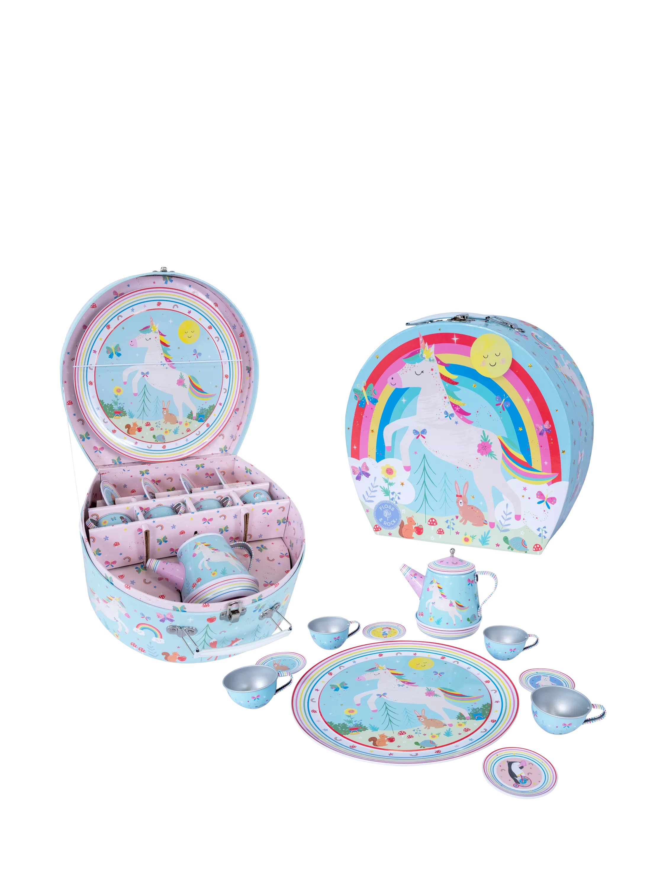 This super cute Rainbow Fairy 11 Piece Musical Tea Set is the perfect excuse for an afternoon tea party. The carry case features illustrations of unicorns, rabbits, fairies and more. Once open, you'll see it's just as pretty inside! There you'll find a tall teapot which plays 'You are my Sunshine' when tipped up, four cups and saucers and a large tray (a great way to present your afternoon tea to guests!) This is a lovely gift for little ones which will encourage imaginative play or playing with friends. The tea set's pretty box comes with a carry handle makes it easy to take from place to place.