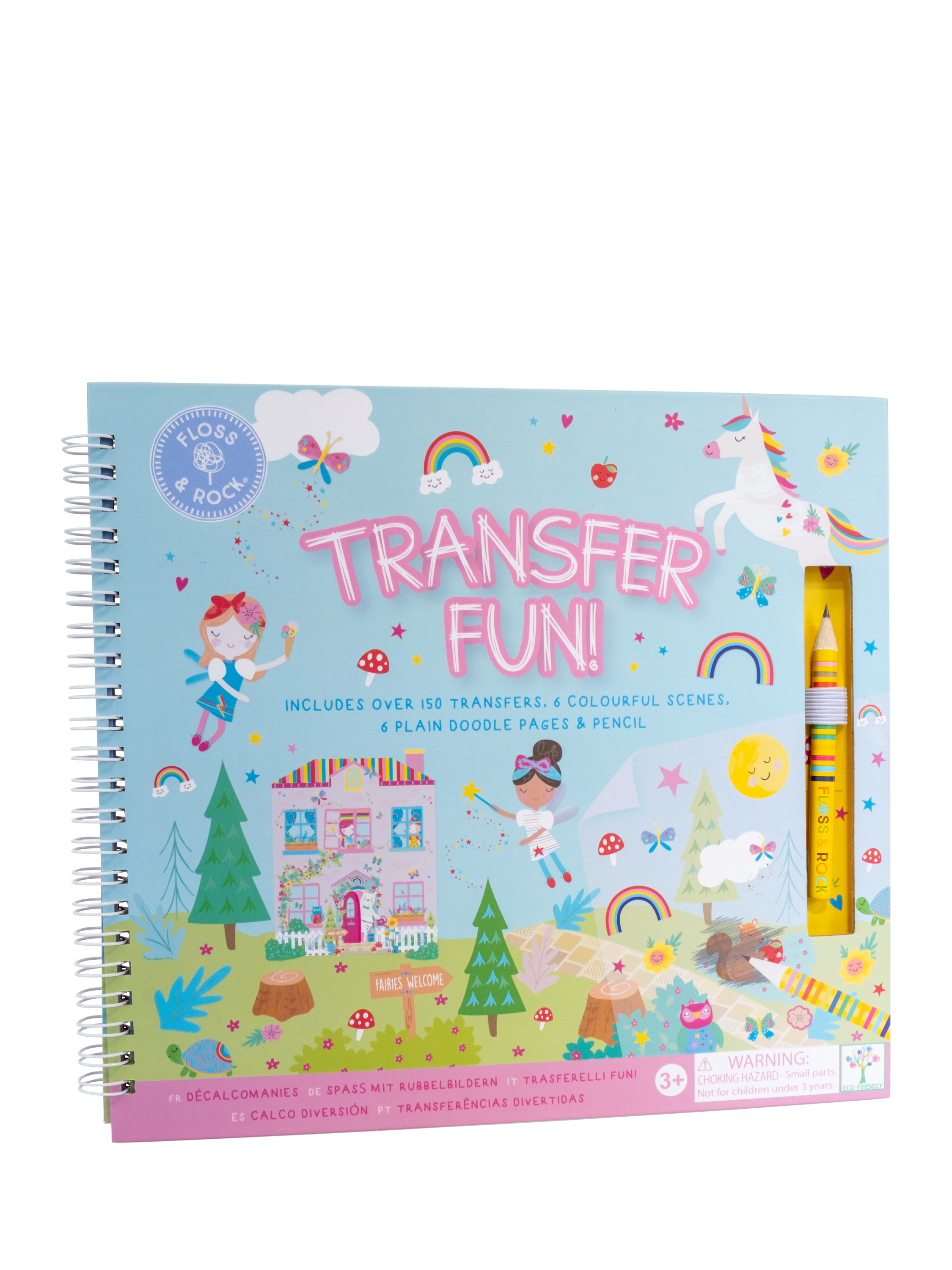 There's so much fun to be had with Transfers! This Rainbow Fairy Transfer Fun comes with over 150 brilliant Rainbow Fairy-themed transfers, 6 colourful scenes to place them onto, 6 plain pages for freestyle doodling and a Floss & Rock pencil.