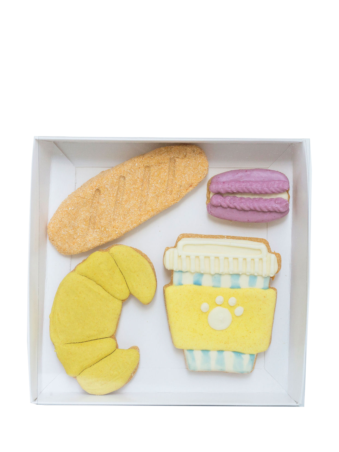 A charming little bakery in biscuit form. This hand-iced set brings together a croissant, macaron, baguette and takeaway coffee cup to give dogs a taste of Paris without leaving home. Every piece is made in small batches using a grain-free recipe and coloured with natural plant powders. A sweet gift for dogs who enjoy the finer things.