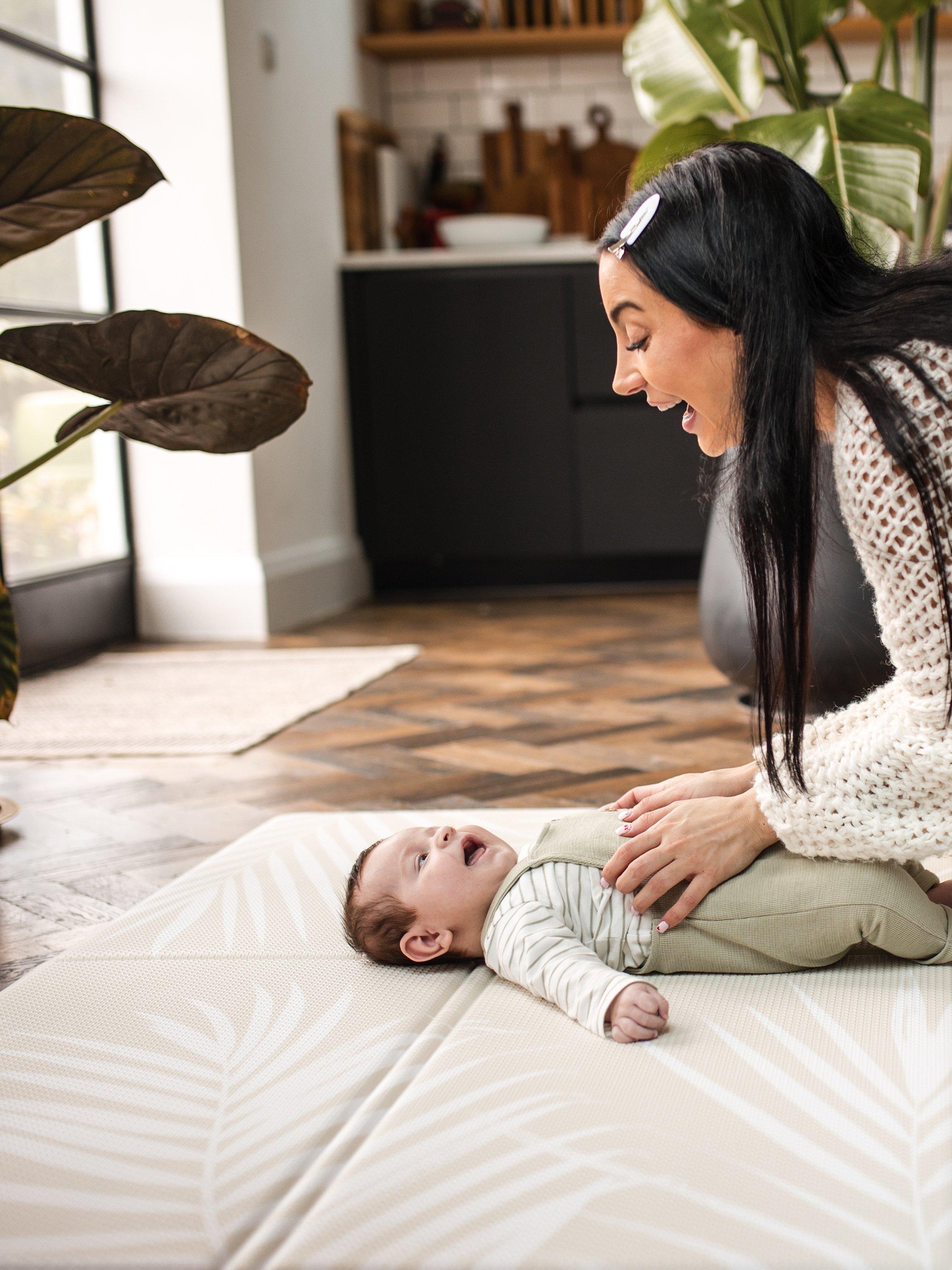Thoughtfully designed to combine quality, style and everyday practicality. The Palm Scandi playmat was created to complement modern interiors, with a reversible design featuring a calming palm print on one side and a Scandinavian-inspired pattern on the other.