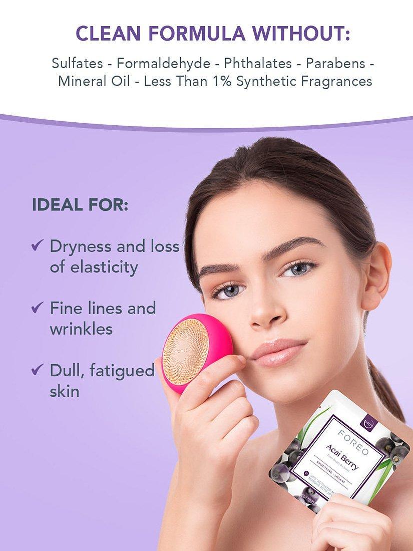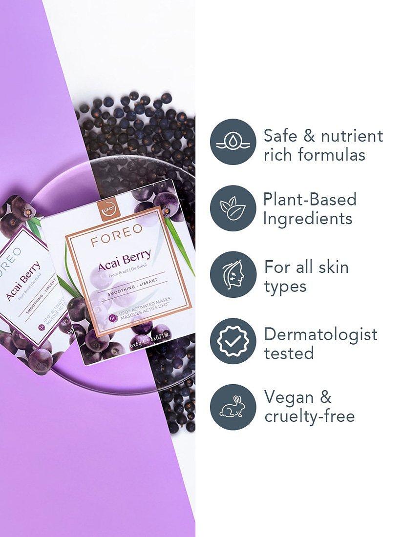 Nature’s very own fountain of youth, the acai berry is known for its antioxidant superpower that revives the skin and restores its youthful plumpness. Paired with UFO™ and UFO™ mini, Acai Berry face mask treatment hydrates and helps smooth fine lines and wrinkles.