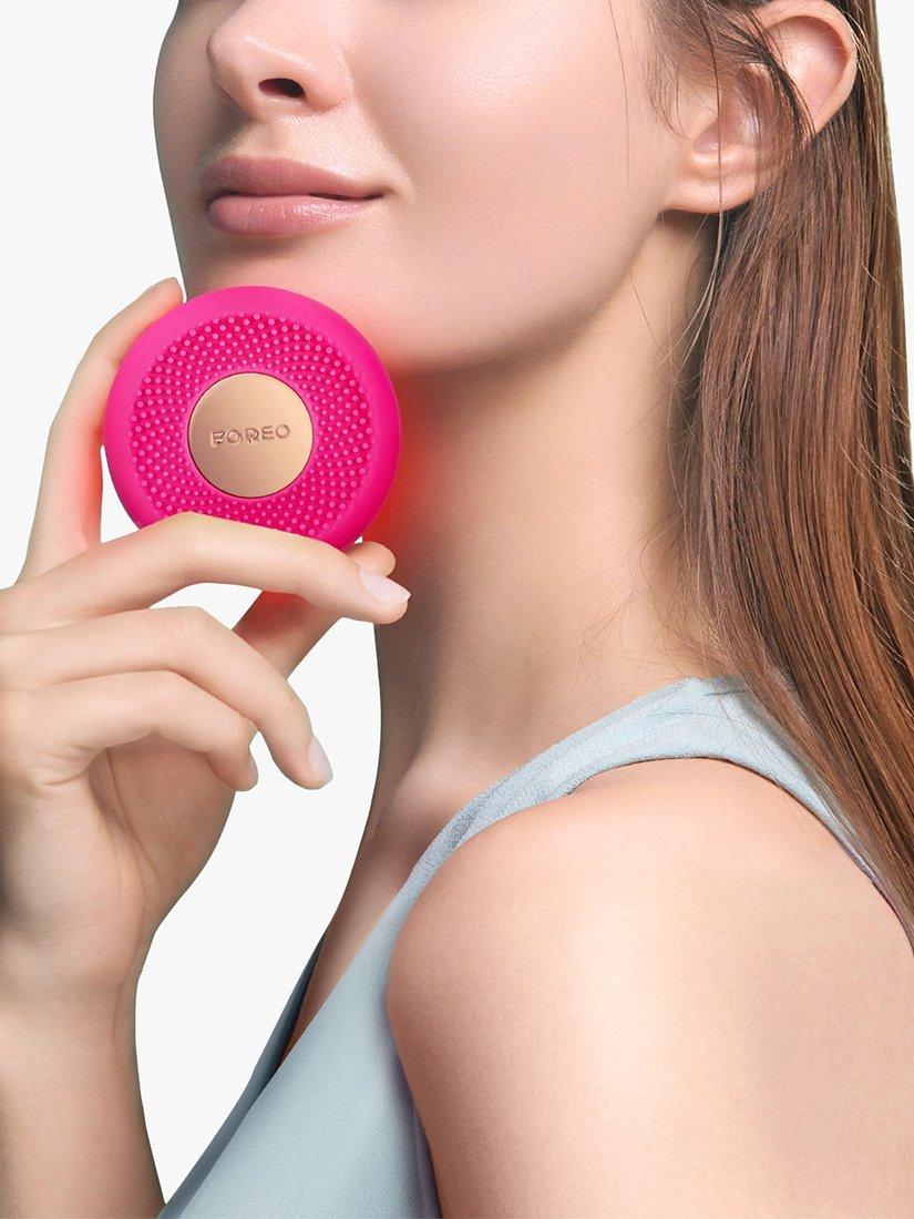 Sleek, compact and easy-to-use, UFO™ Mini 2 offers a full facial treatment at home or on-the-go. Designed to target dehydration, loss of elasticity, and uneven skin tone, this Swedish device combines warming (prepping the skin), T-Sonic pulsations (enhancing mask absorption) and LED light therapy (brightening, anti-ageing, etc.) with potent Korean-inspired masks.