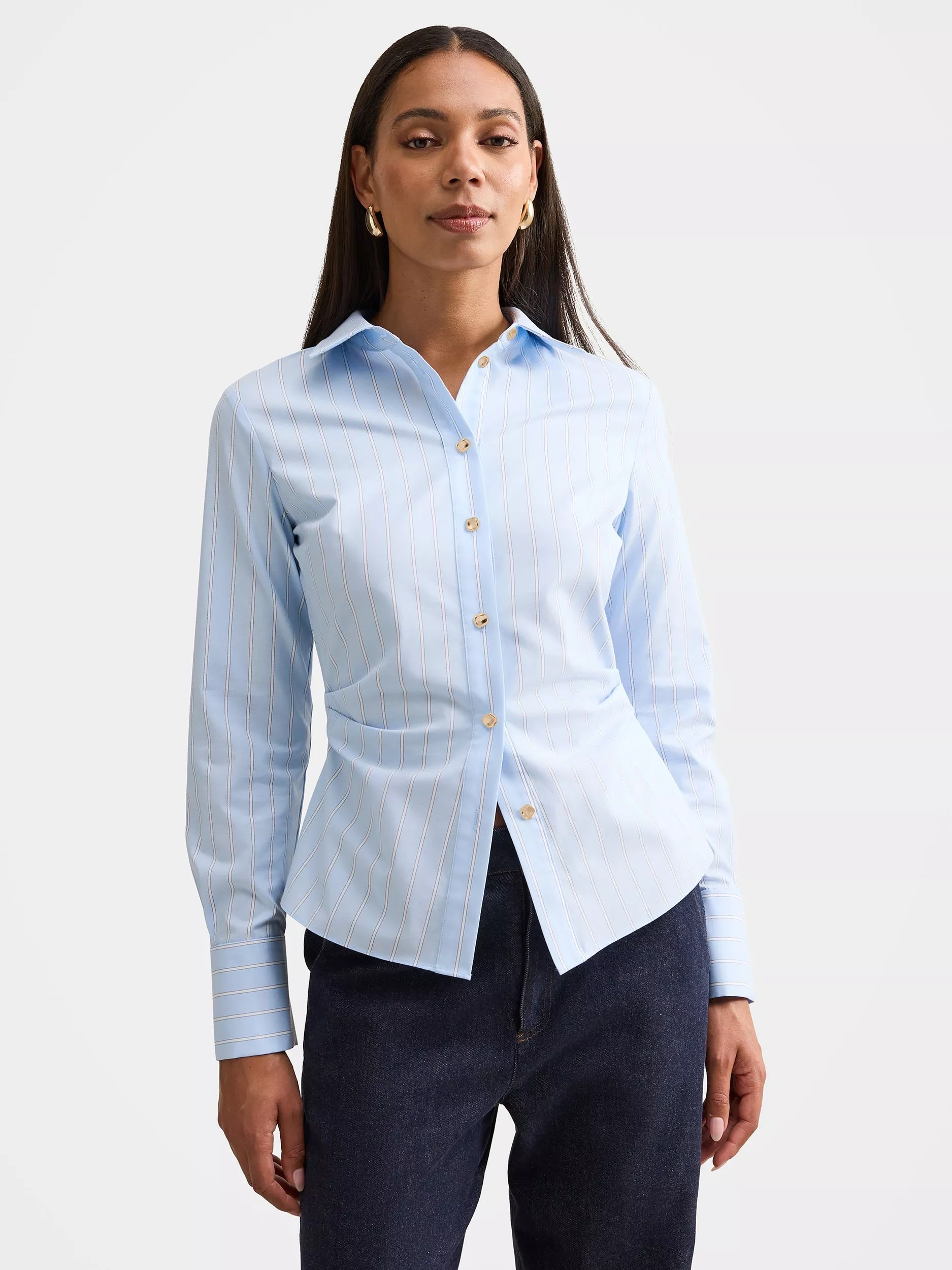 A shirt by Forever New, made from a comfortable cotton-rich fabric. With a collar neck and long sleeves, it's designed with neat stripes. Built for focus, made for comfort.