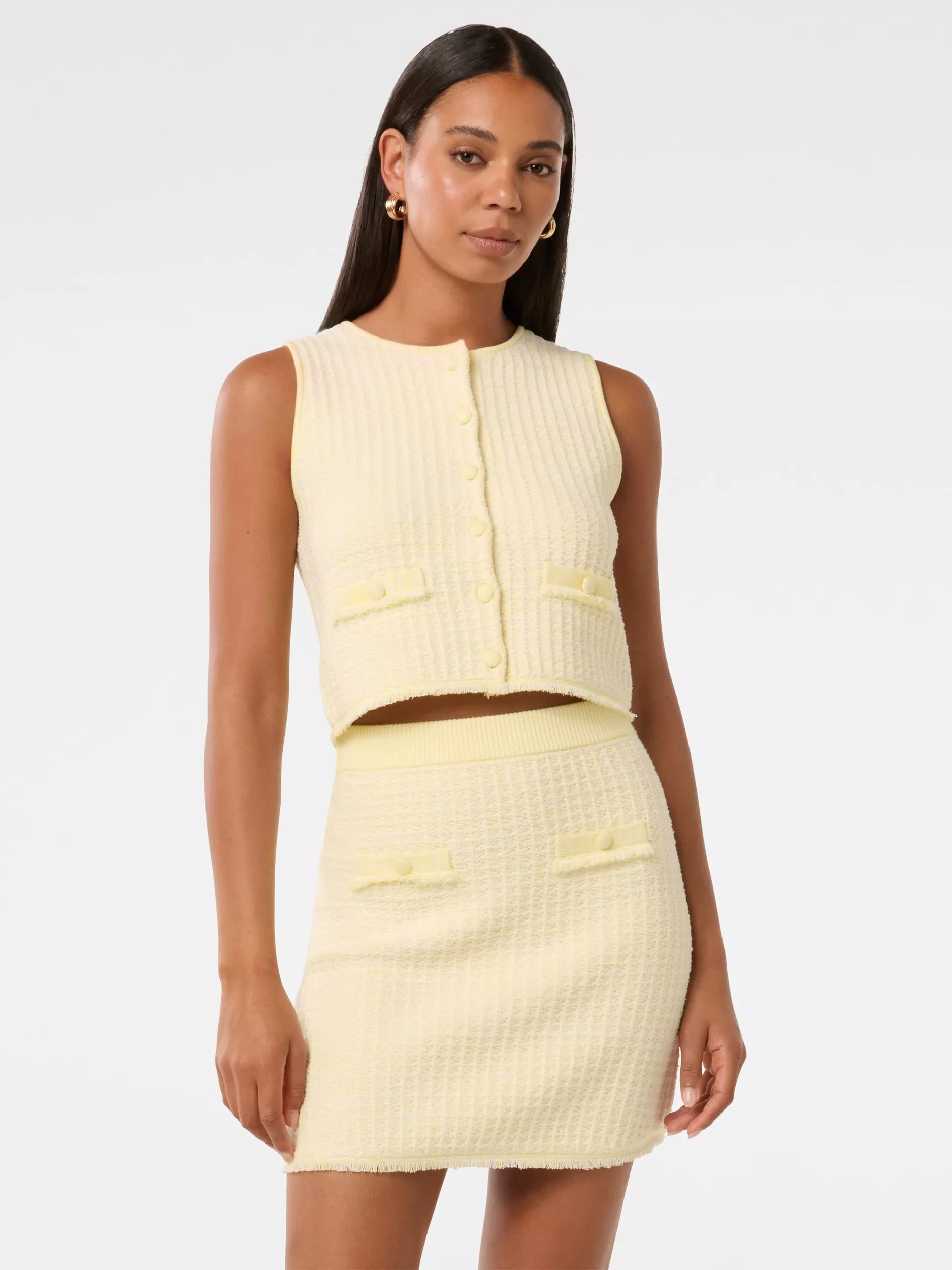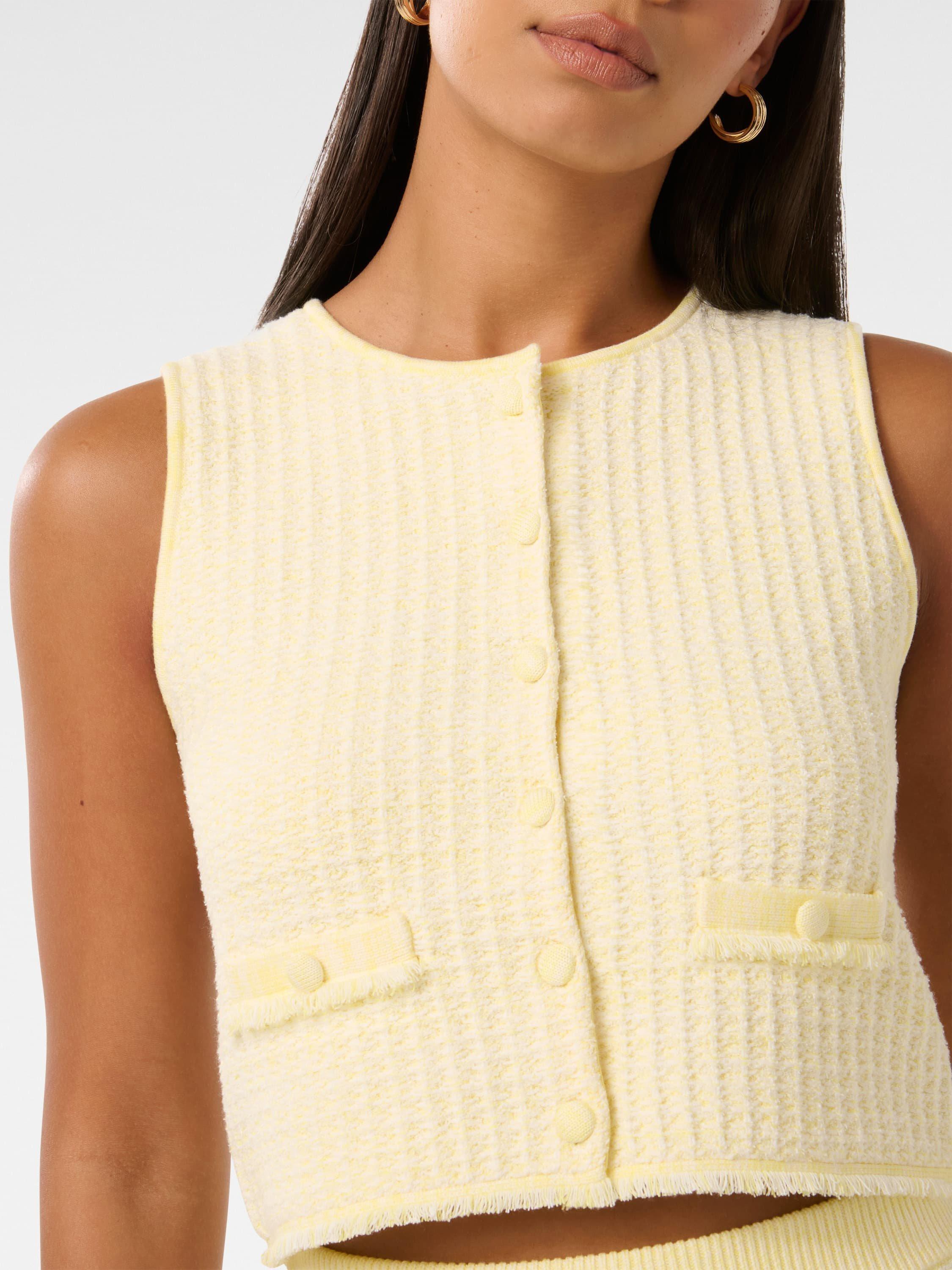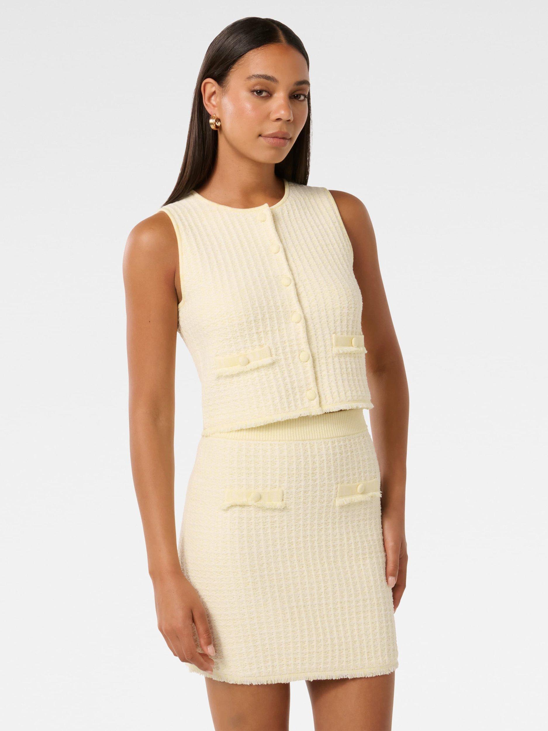 Simple and versatile in nature, this tank top by Forever New allows for endless styling opportunities. Carved with a crew neck and a sleeveless design, it is made from a light yet durable blended fabric with a boucle finish.