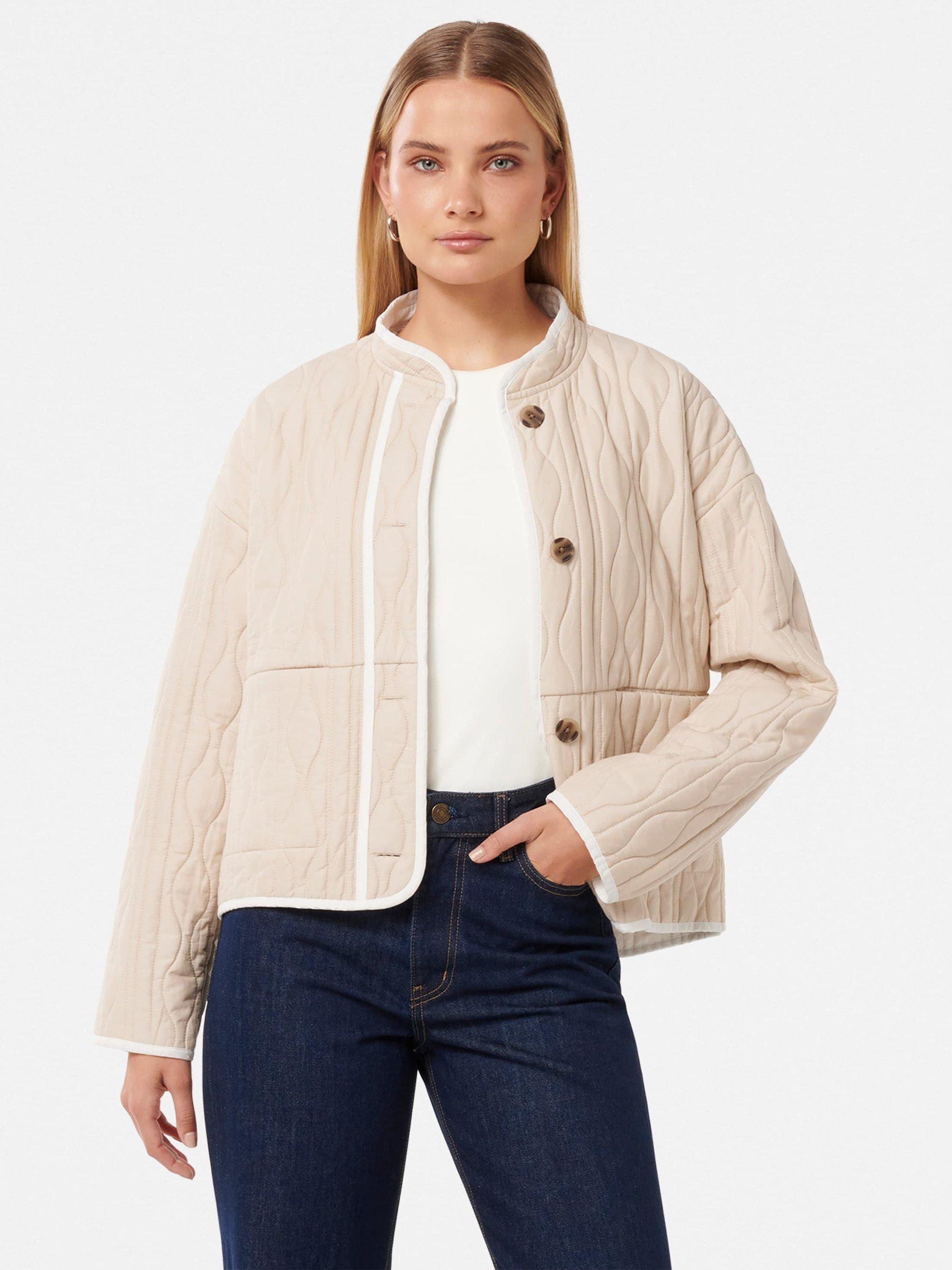 For a cosy layer that will keep the morning chill at bay, this quilted liner jacket from Forever New falls to a regular length. Fastening up with buttons, it is made using pure cotton for a soft yet breathable feel.