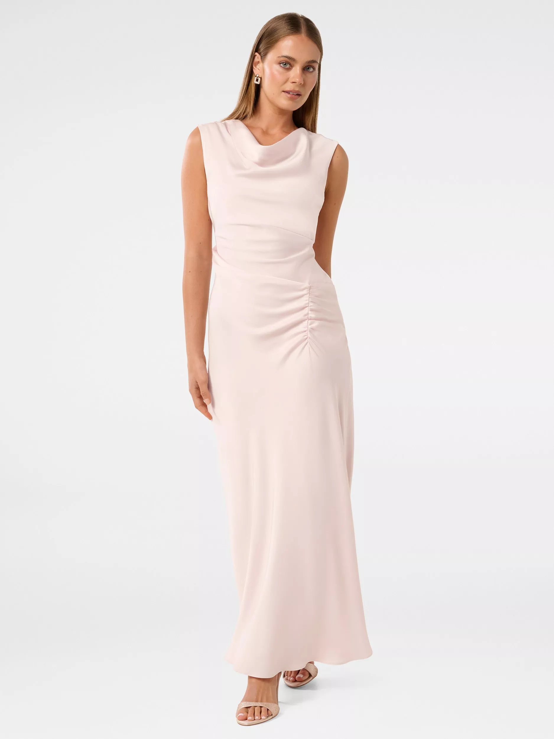 In a stunning A-line silhouette with soft ruched detailing, this sleeveless maxi dress from Forever New is made from soft satin. Topped with a cowl neckline, this style redefines your collection with the minimum of fuss.