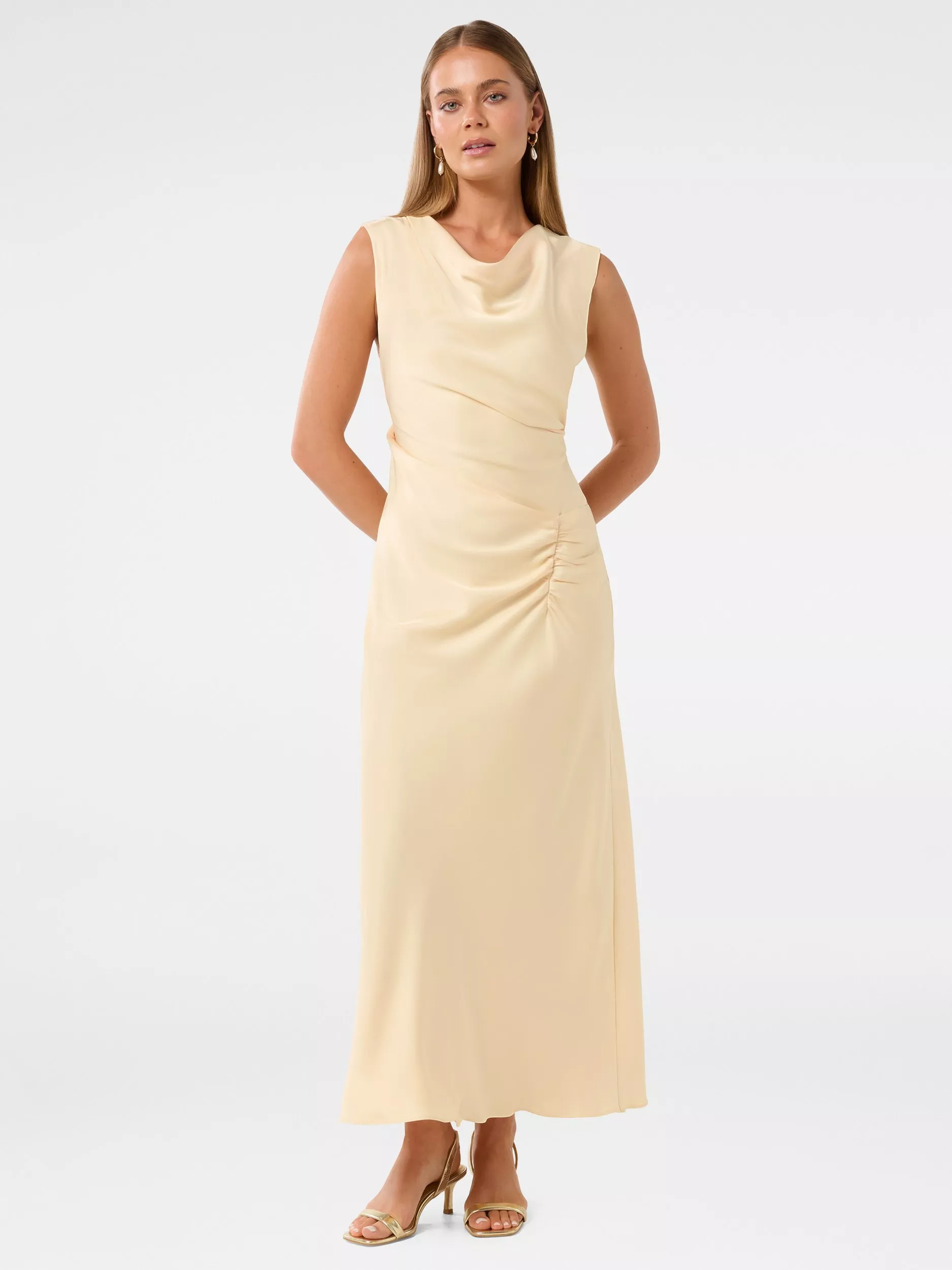 In a stunning A-line silhouette with soft ruched detailing, this sleeveless maxi dress from Forever New is made from soft satin. Topped with a cowl neckline, this style redefines your collection with the minimum of fuss.