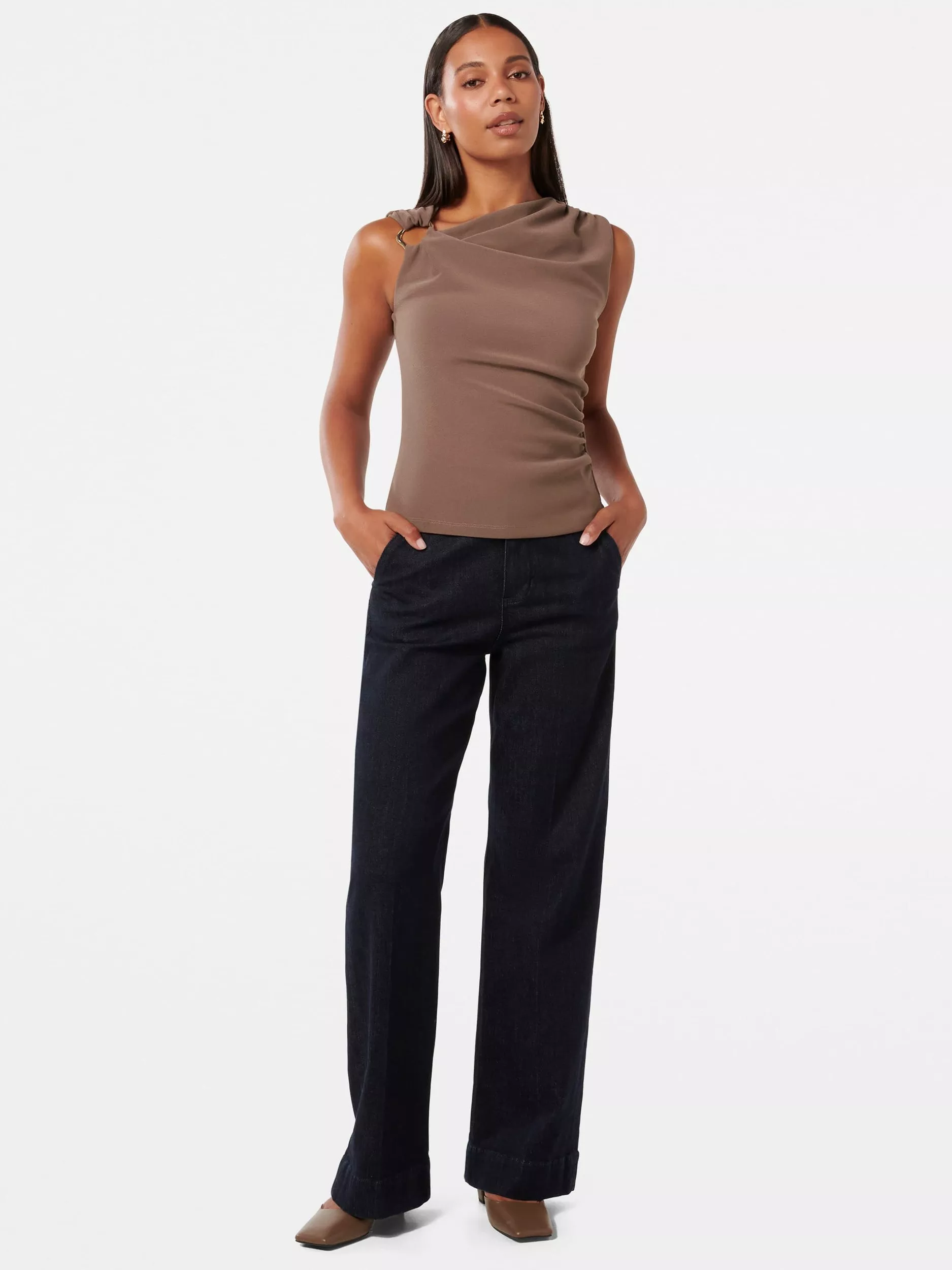 With hardware detailing, this jersey top from Forever New is cut with a drapey asymmetric neckline.