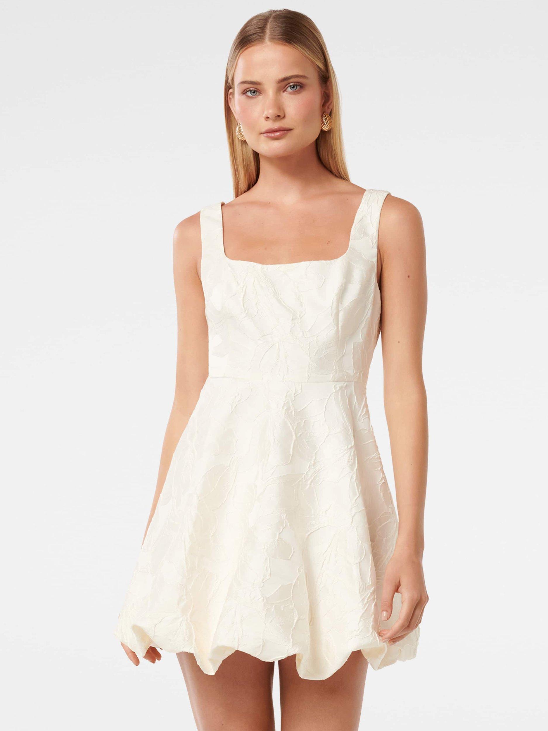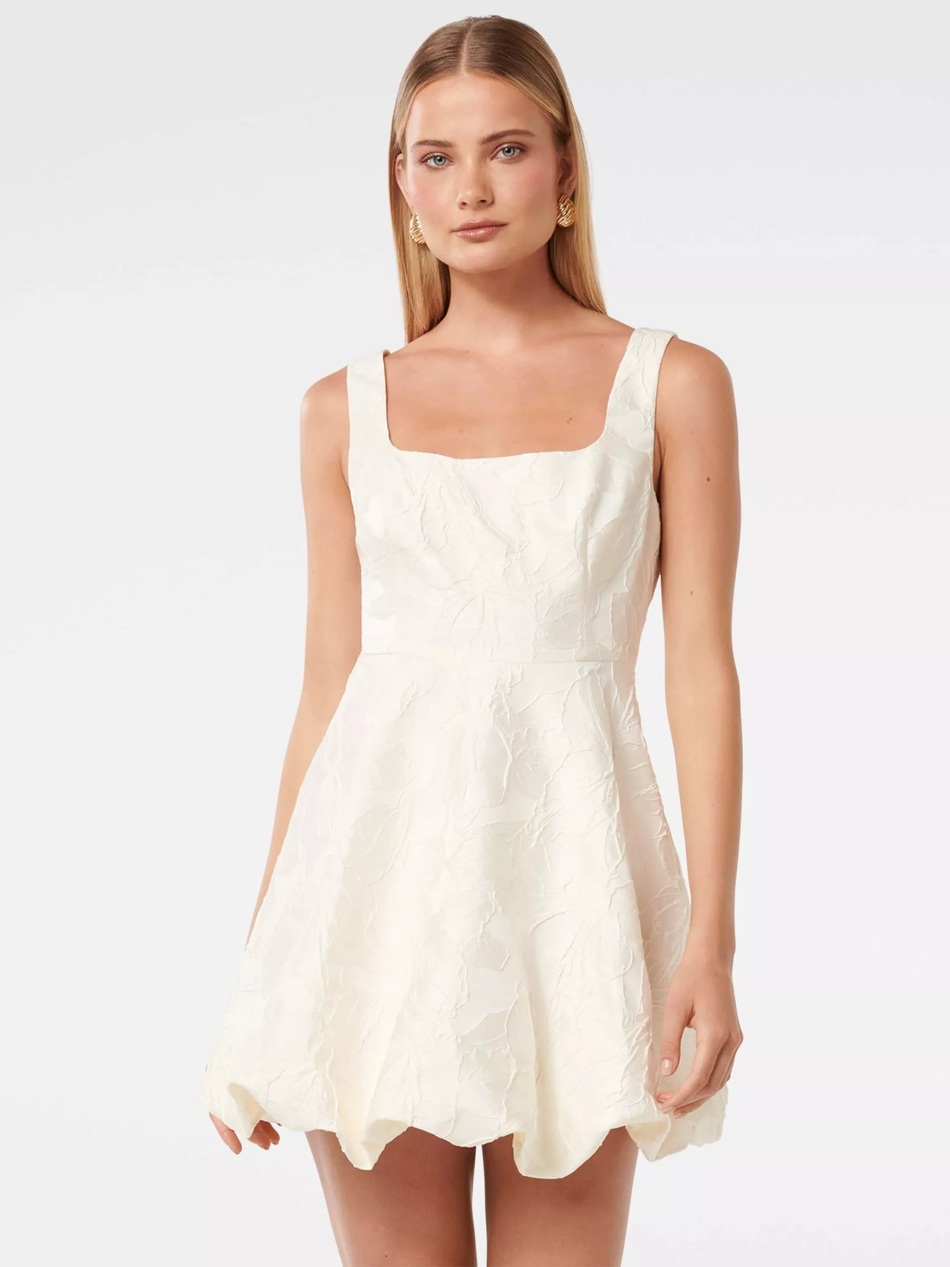 Structured with a bubble hem for that skater-shaped profile, this mini dress from Forever New is crafted from a soft blend of fabrics. Topped with a boxy square neckline and comfortable straps, this style is subtly textured for endless wearability.