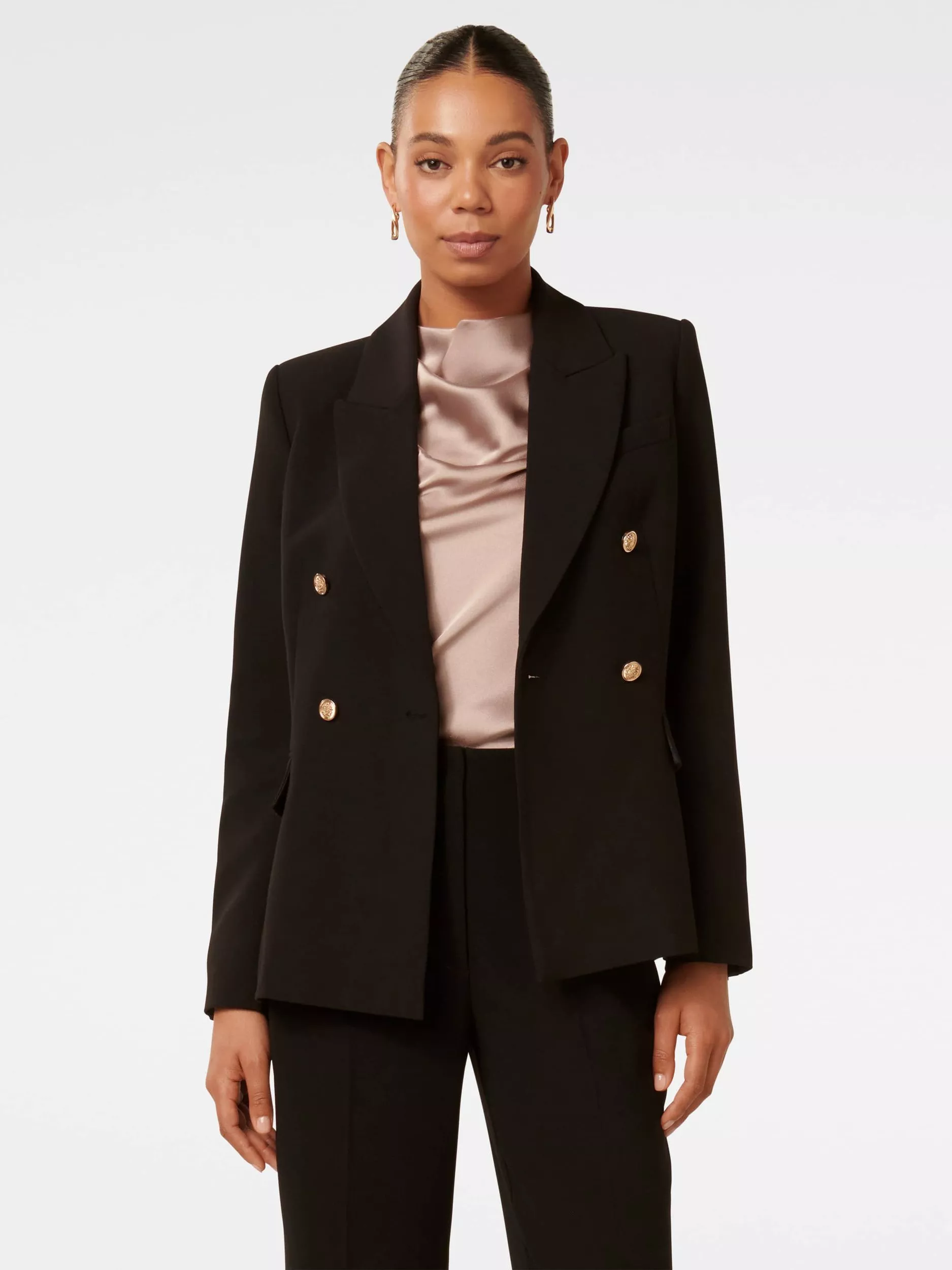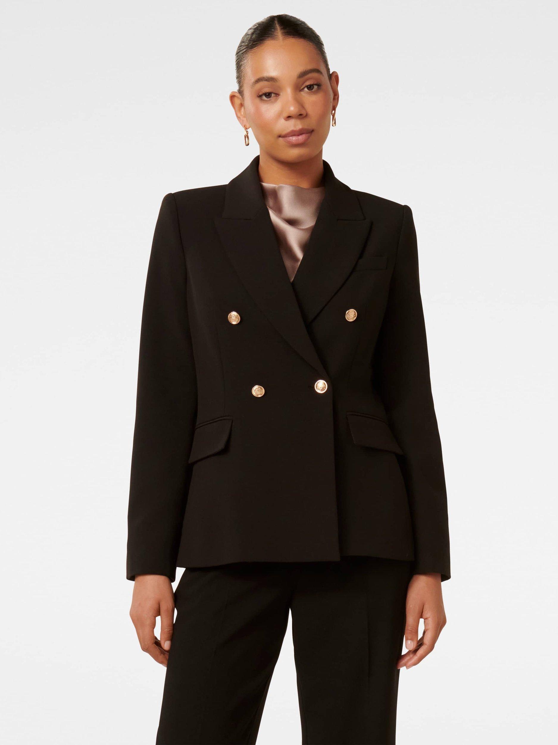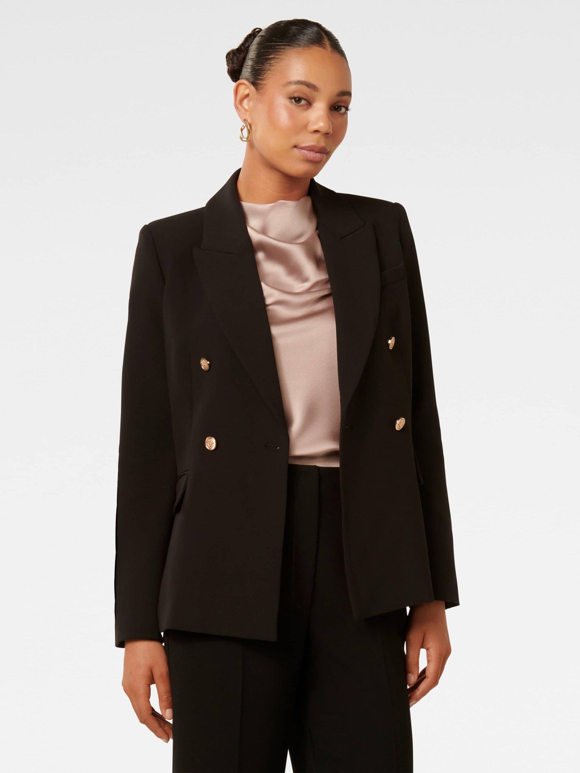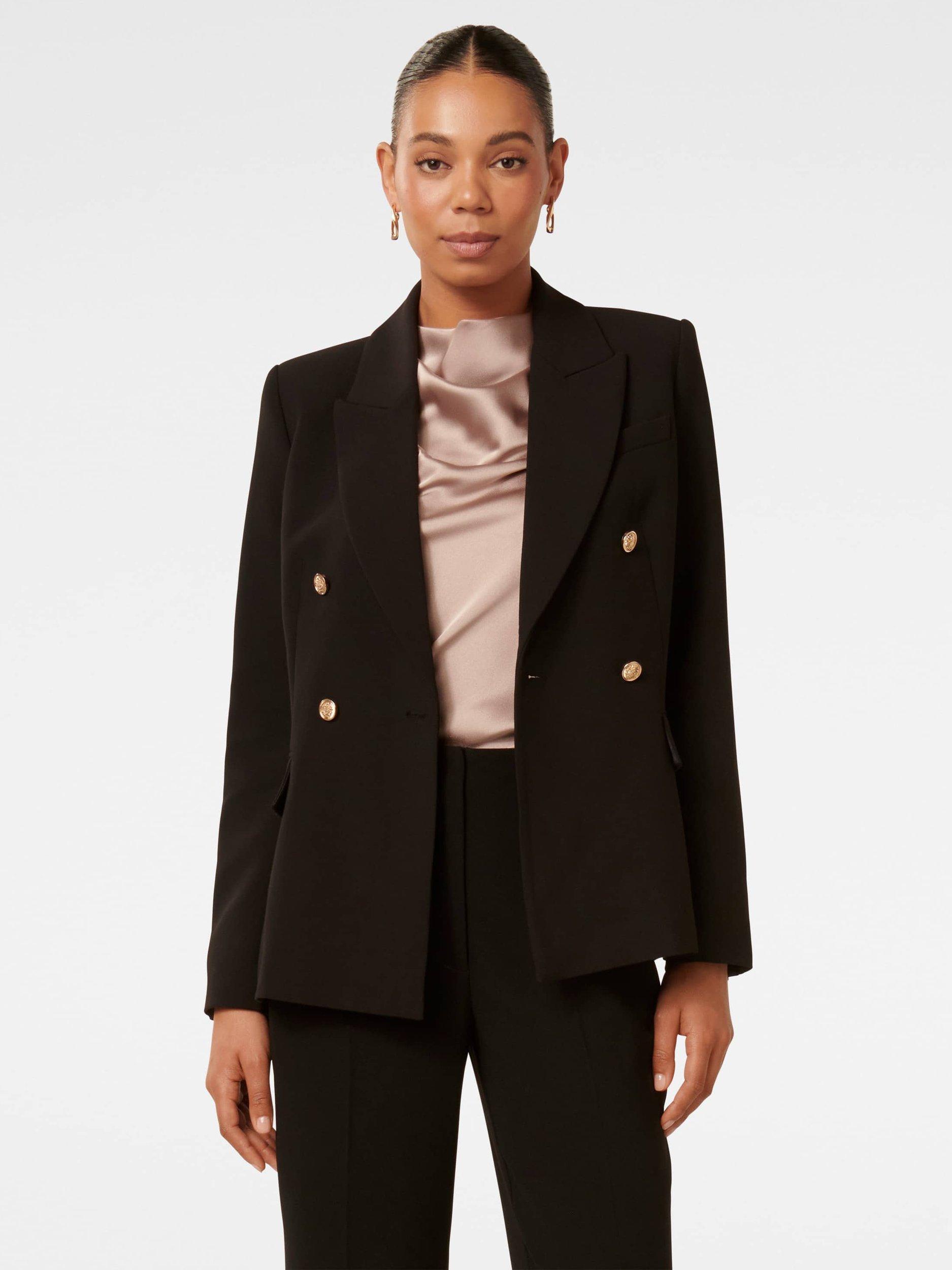For smarter settings that call for a tailored touch, this double-breasted blazer from Forever New falls to a regular length.