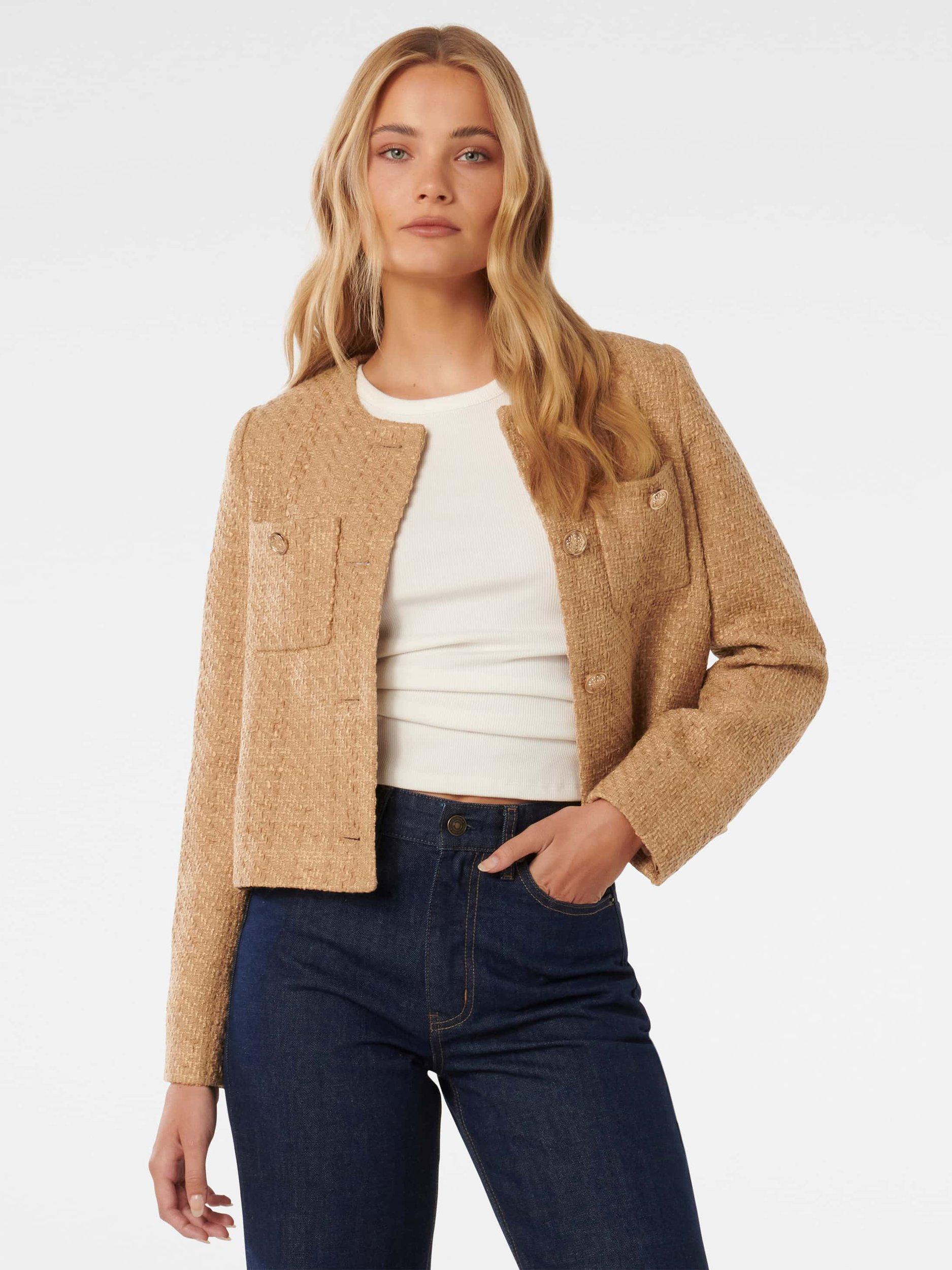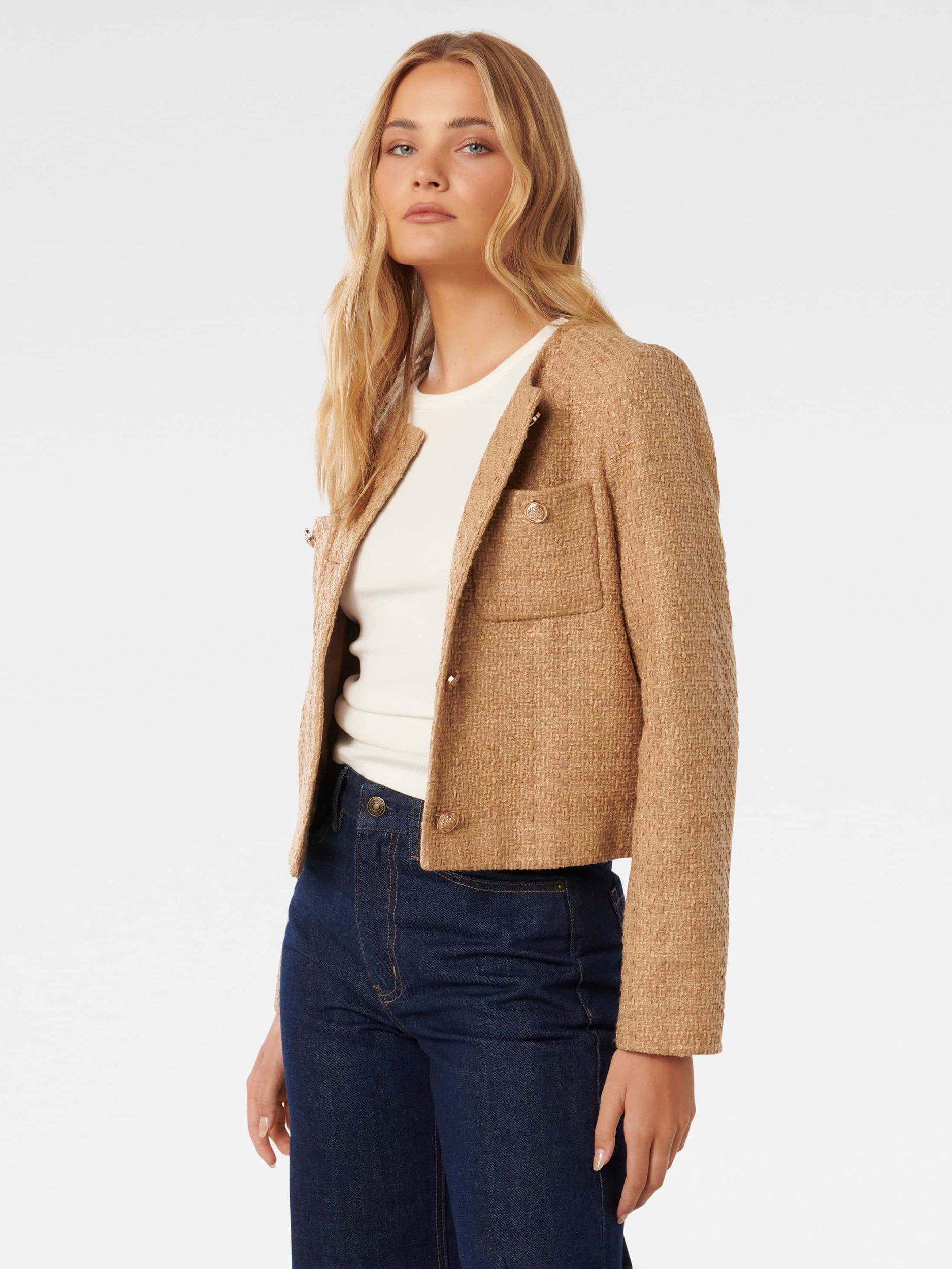 The Chrissy Crop Bouclé Jacket is the update your wardrobe has been waiting for.