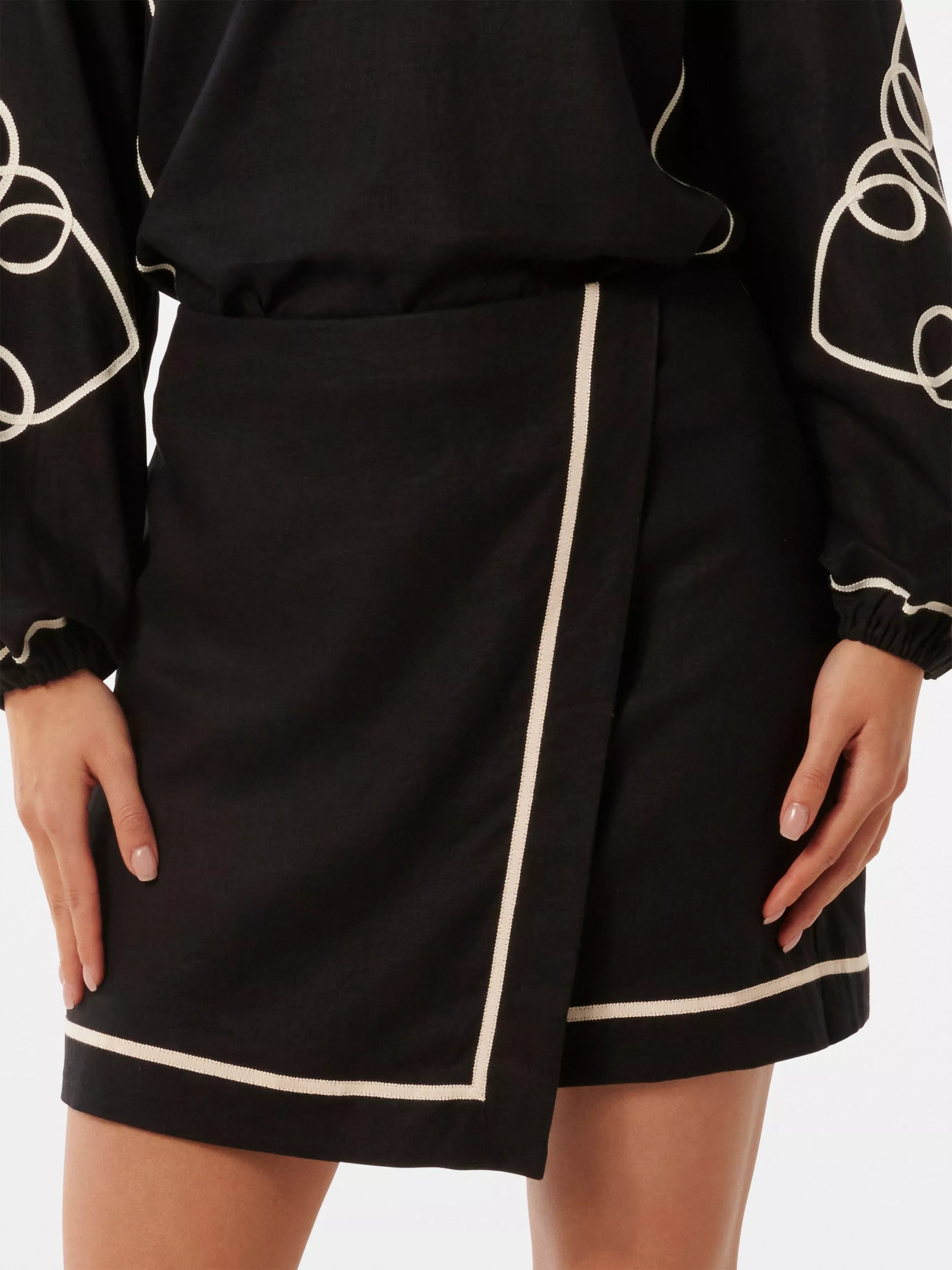 In an endlessly wearable A-line shape, this wrap mini skirt from Forever New is accented with a contrast applique border stripe.