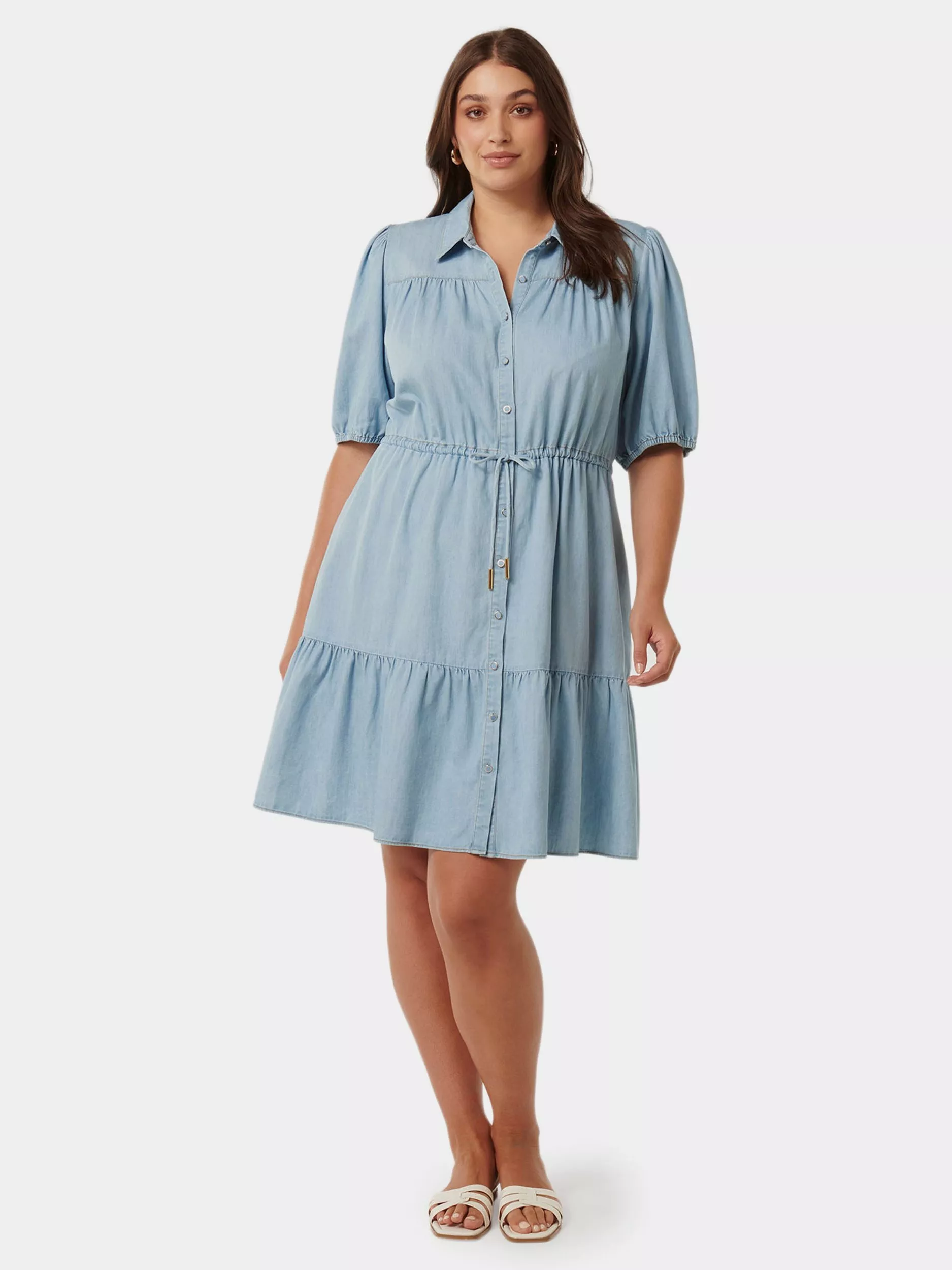 Forever NewCurve Freya Shirt Dress, Light Blue