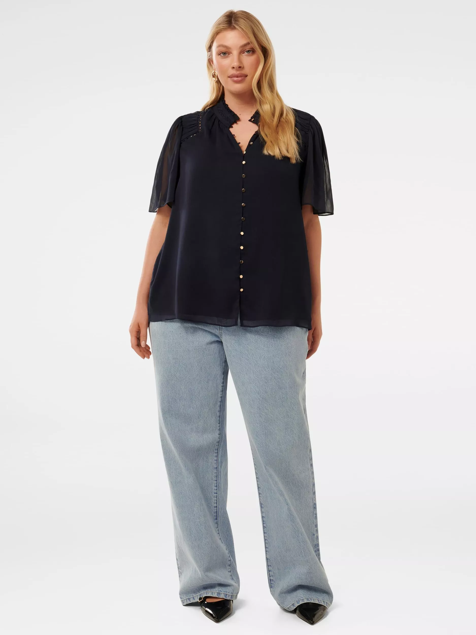 An essential addition to your wardrobe, this blouse from Forever New is designed with a neat collared neck and short floaty sleeves.